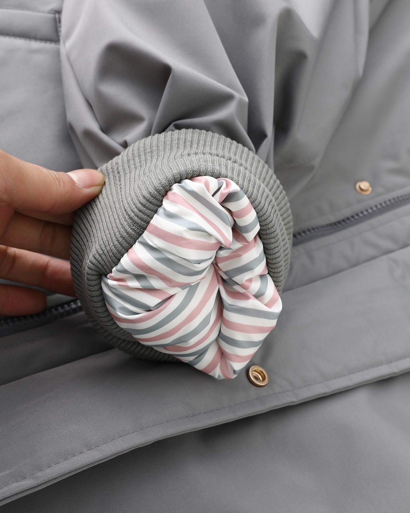 领口和下摆都有弹力抽绳扣,