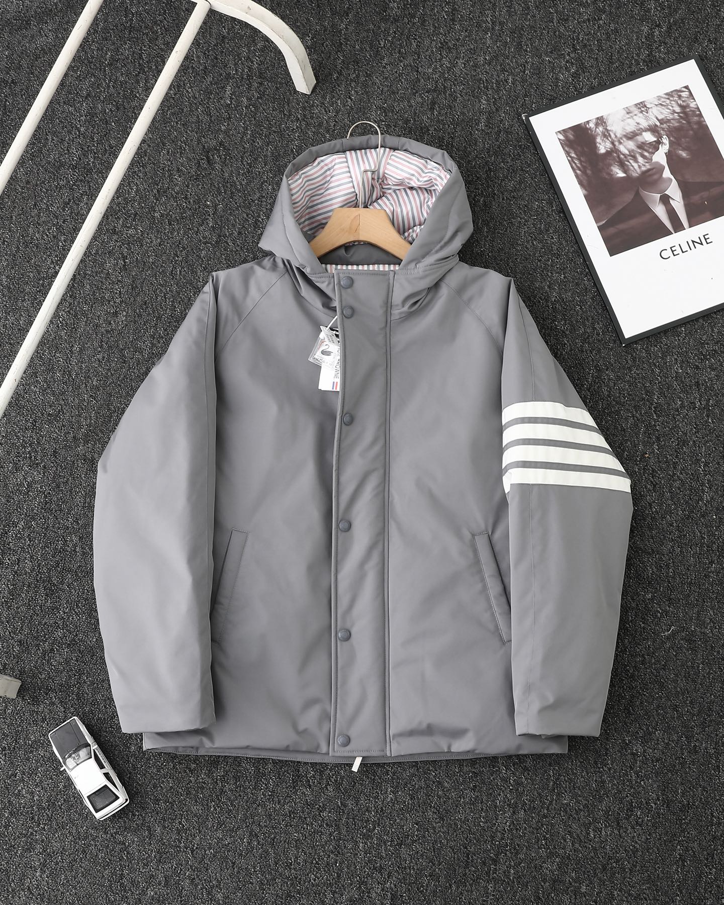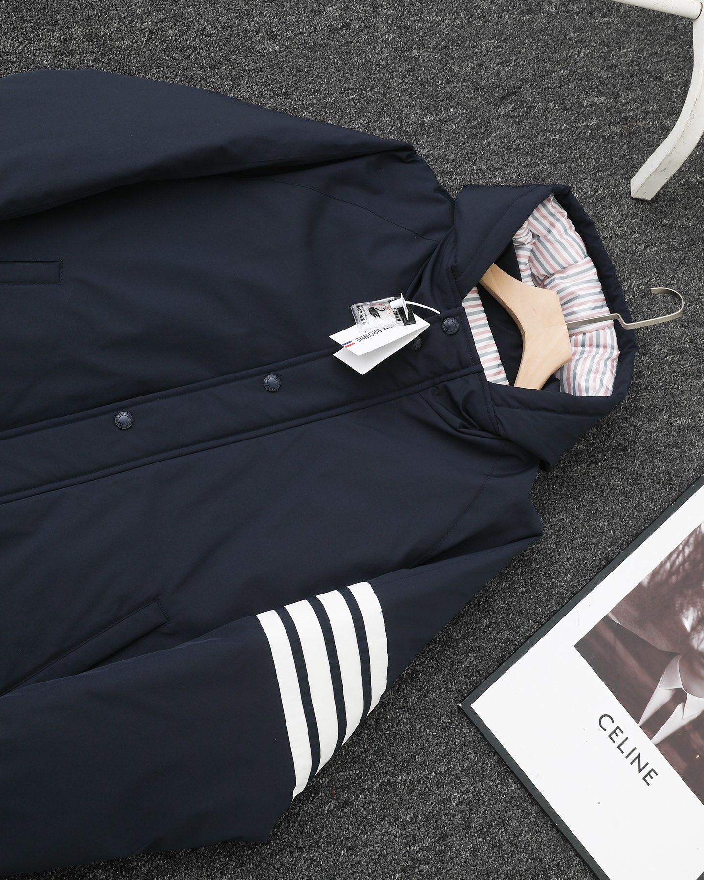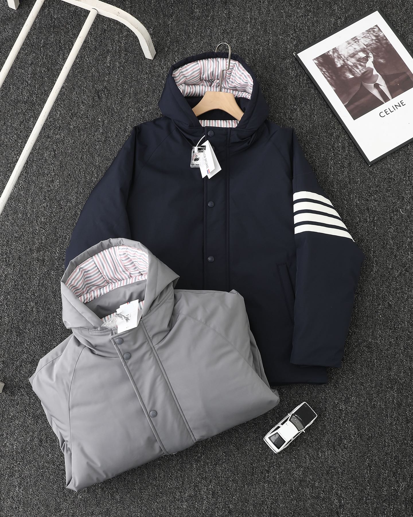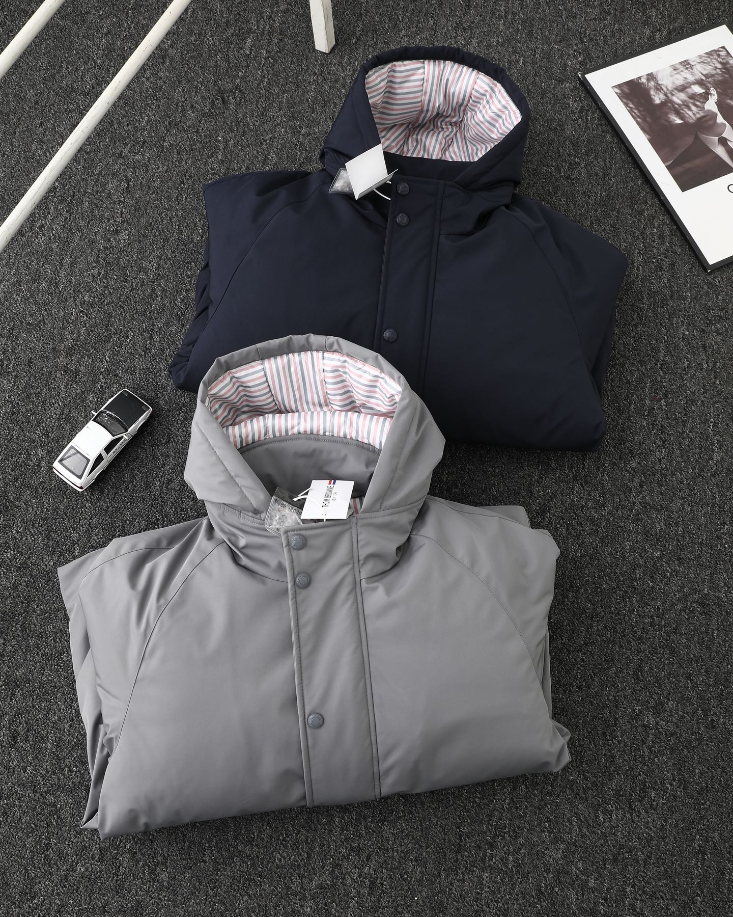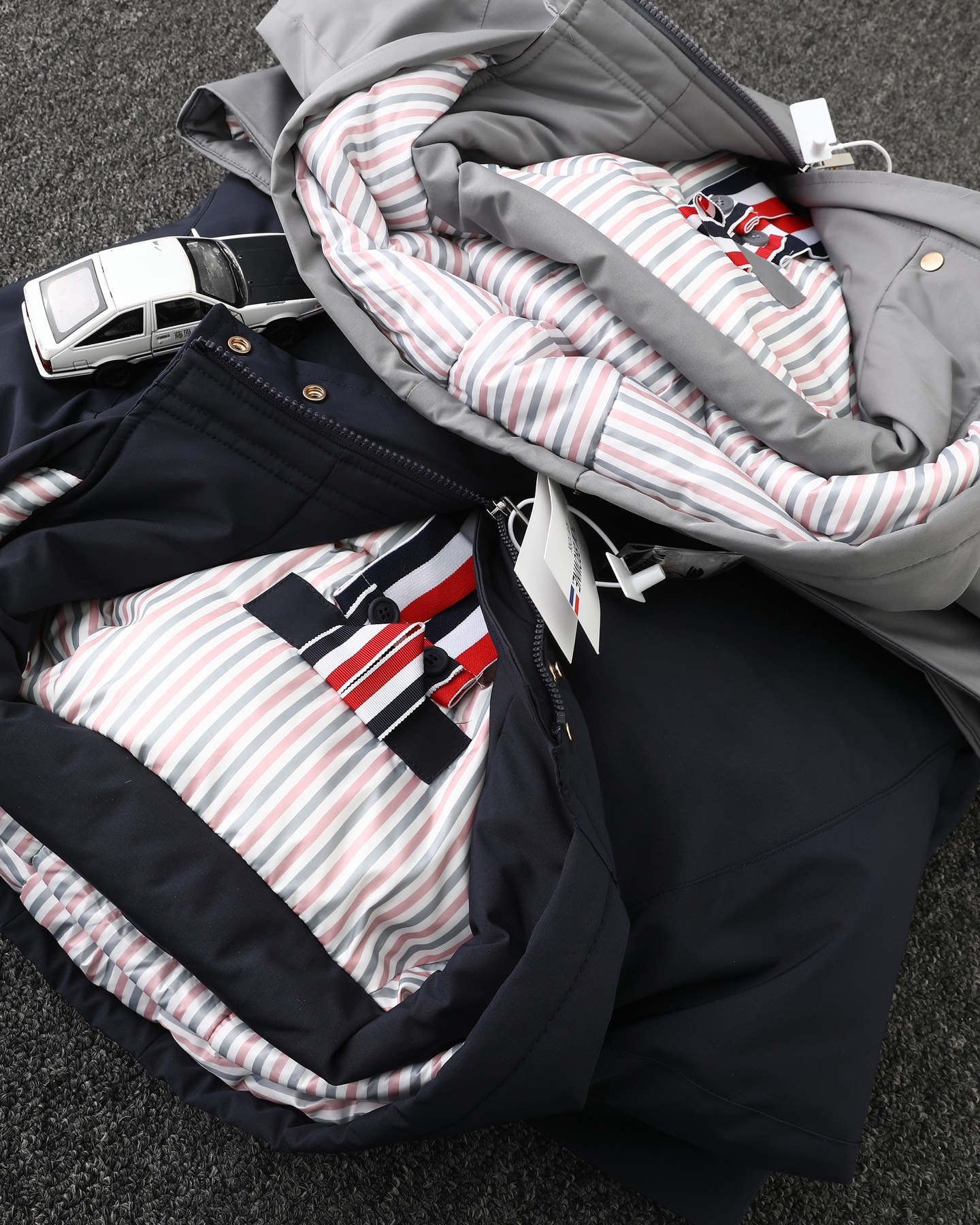 TB四杠荷包彩条80鹅绒羽绒男女同款加厚