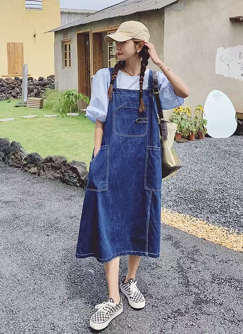 【秋新品】古泥品牌6085 100%棉单件牛仔背带裙-喜出