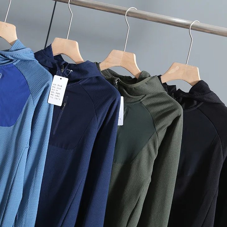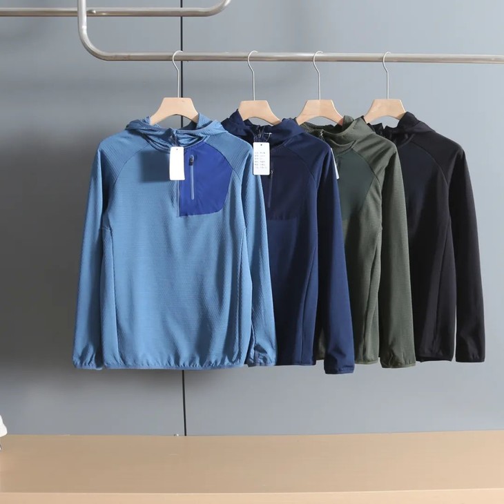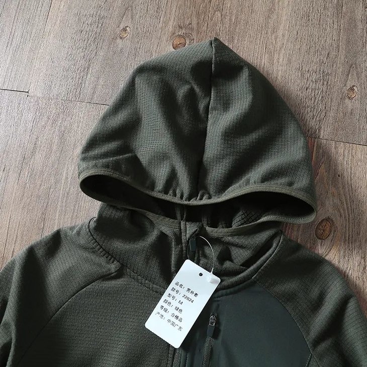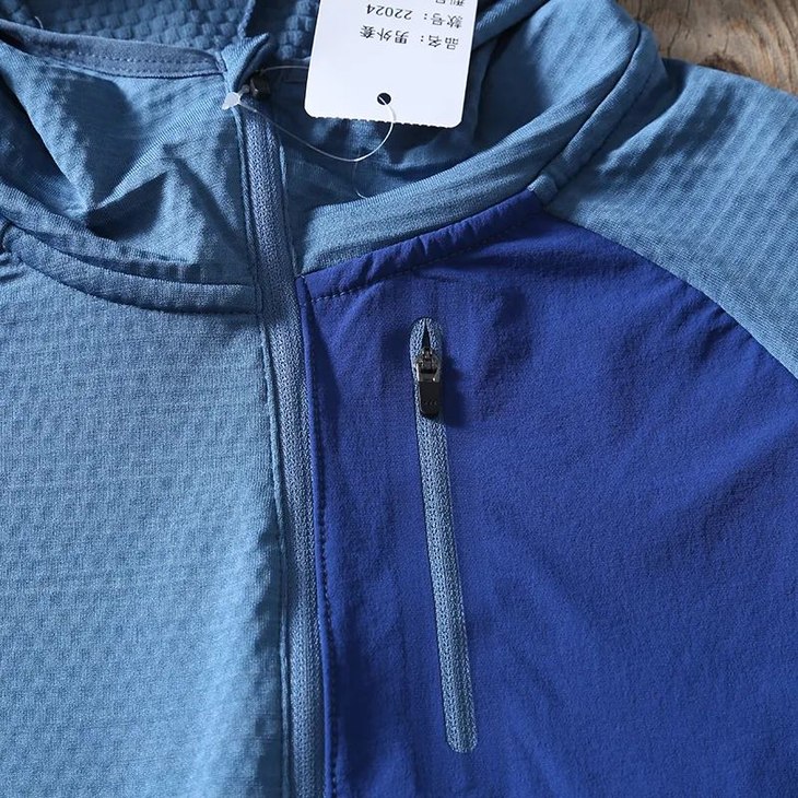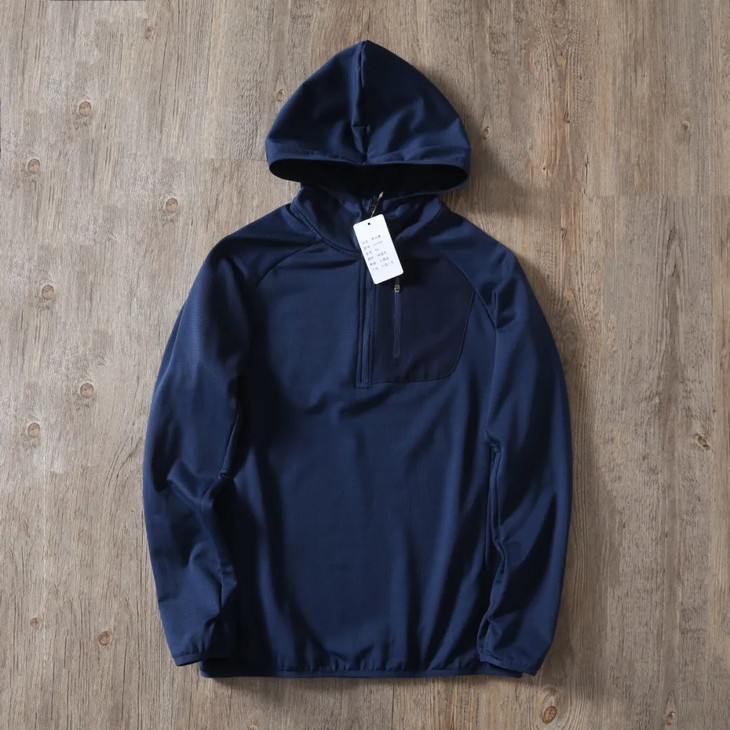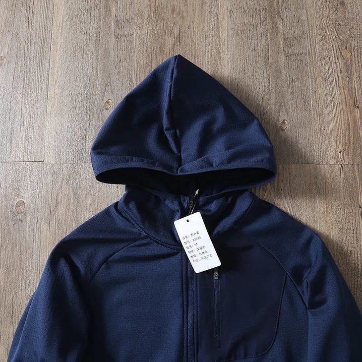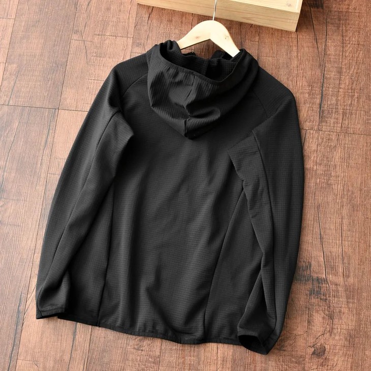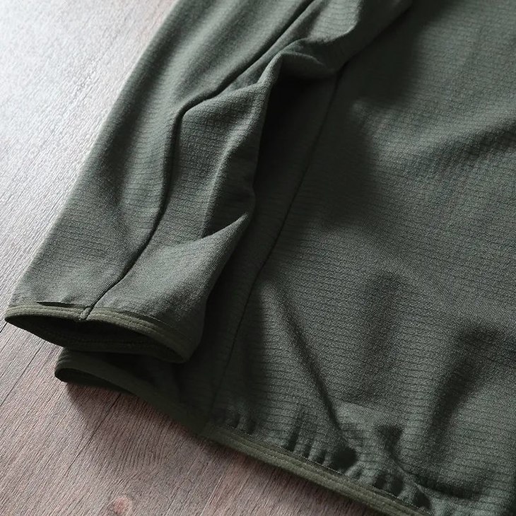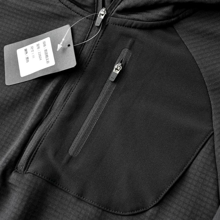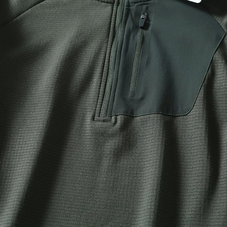 户外机能系列Polartec Power Dry面料!男士运动透气连帽半拉链格绒上衣