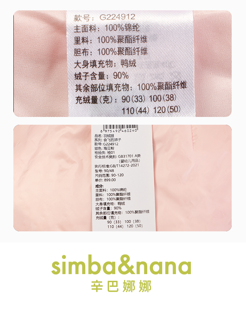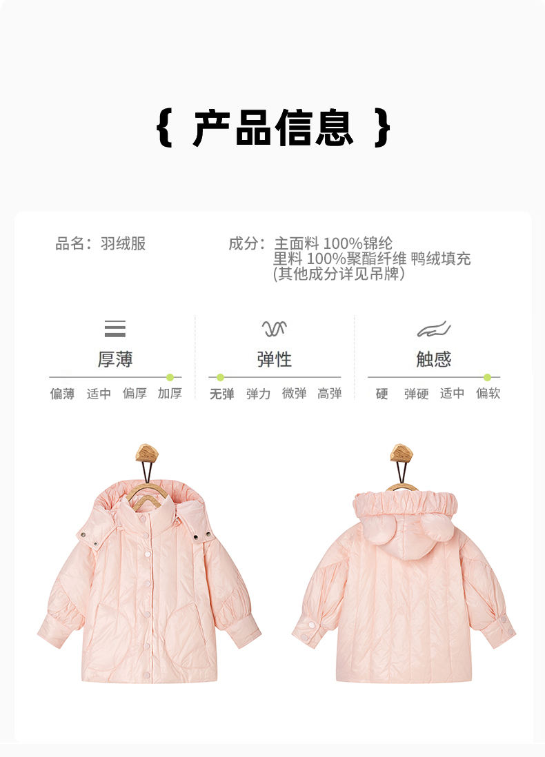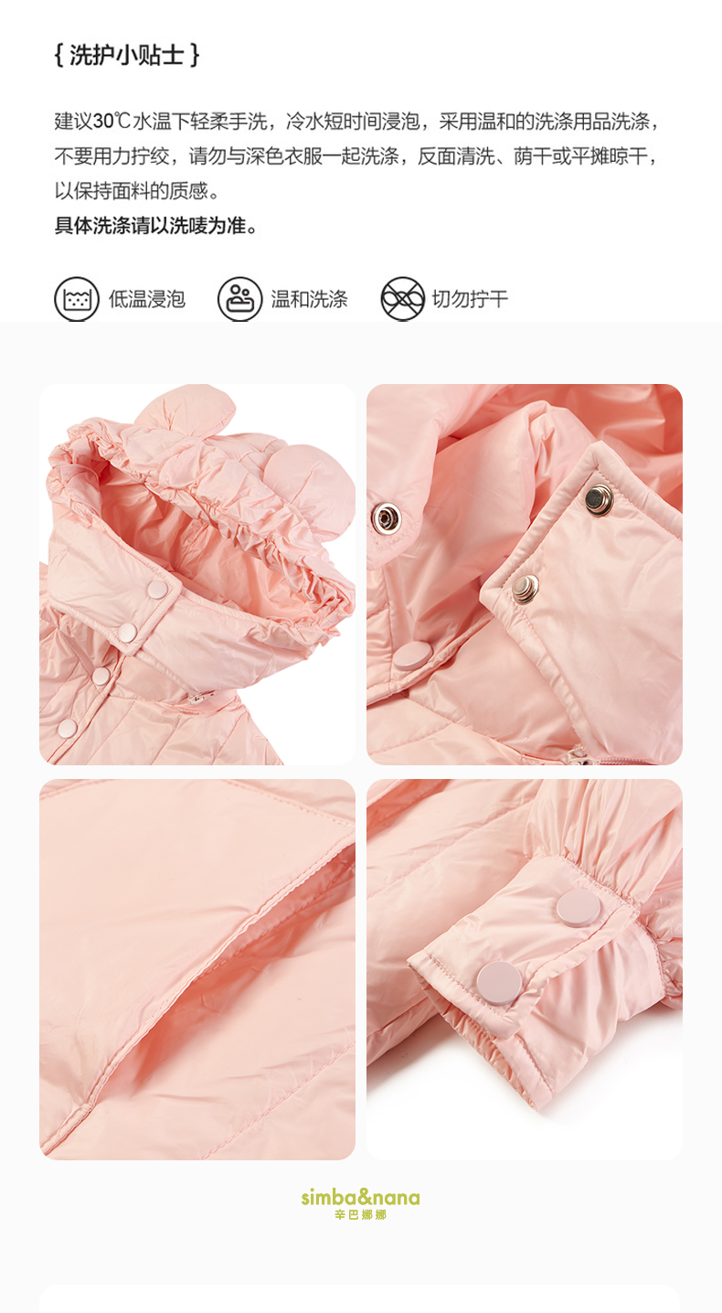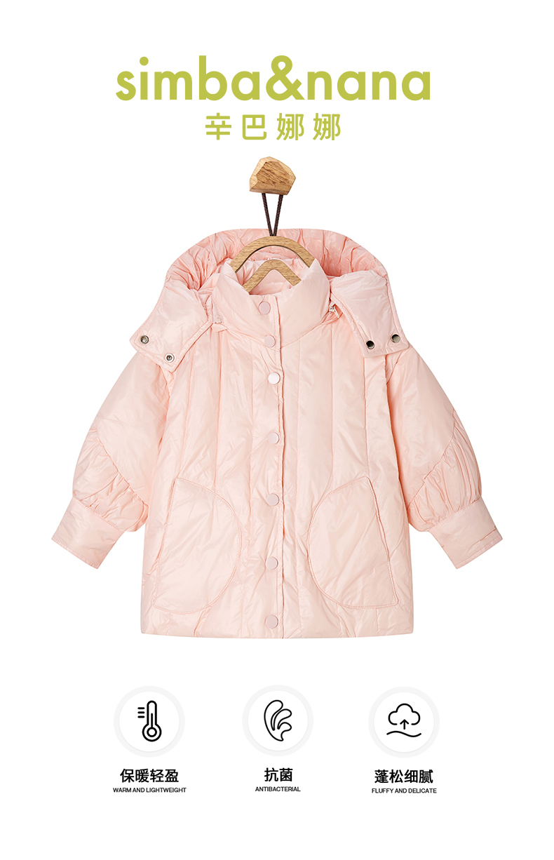 【辛巴娜娜】simbanana童装鸭绒纯色女小童宽松保暖连帽羽绒服