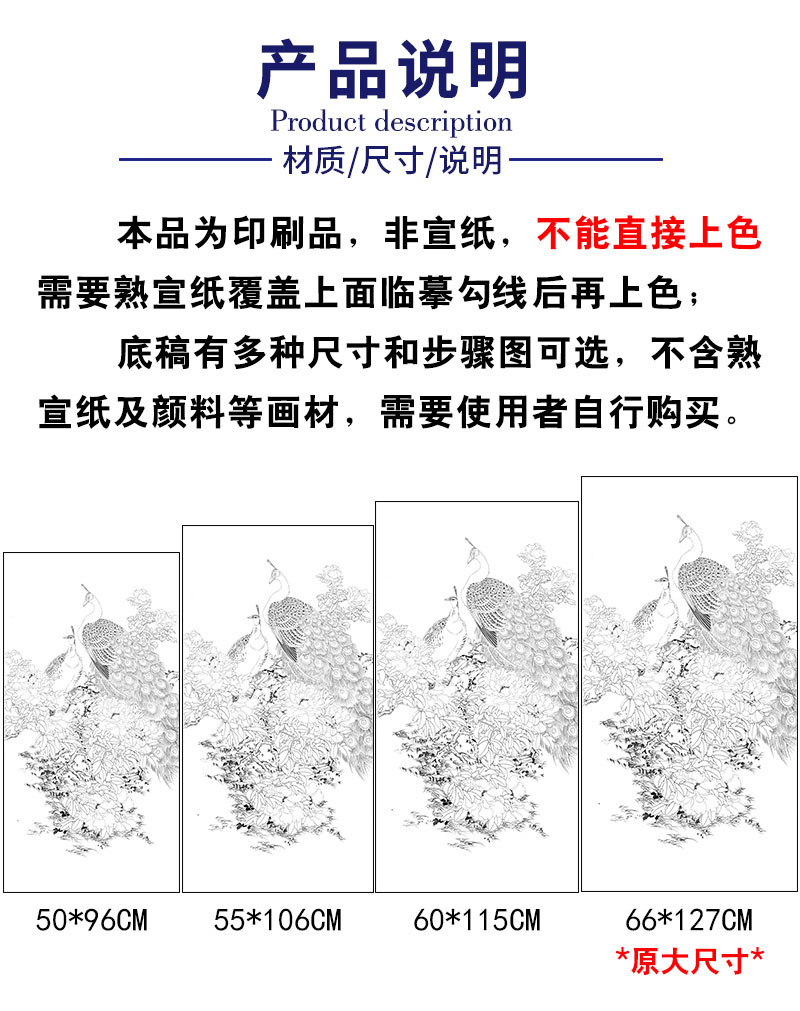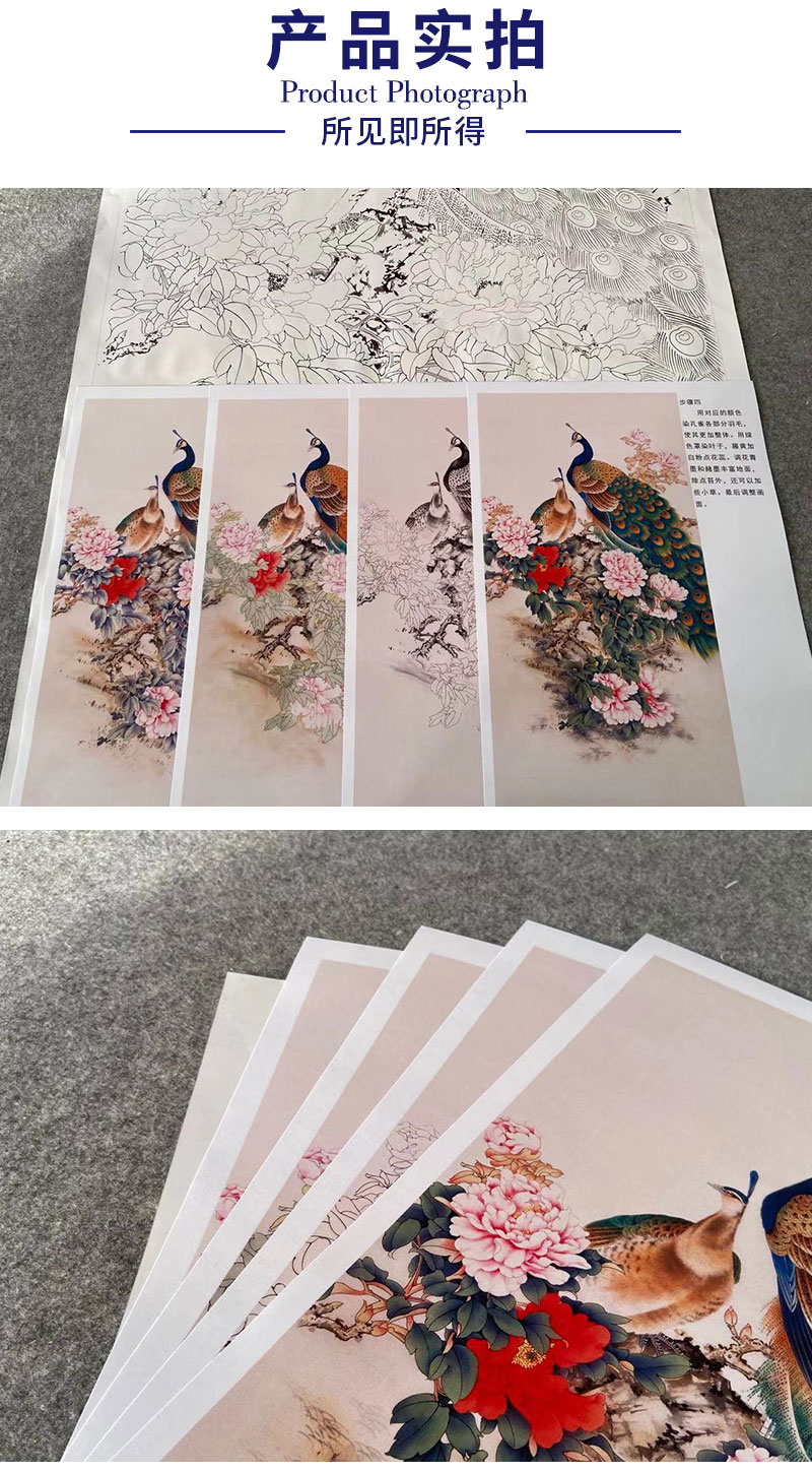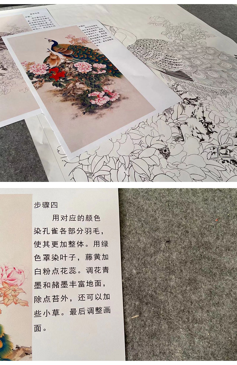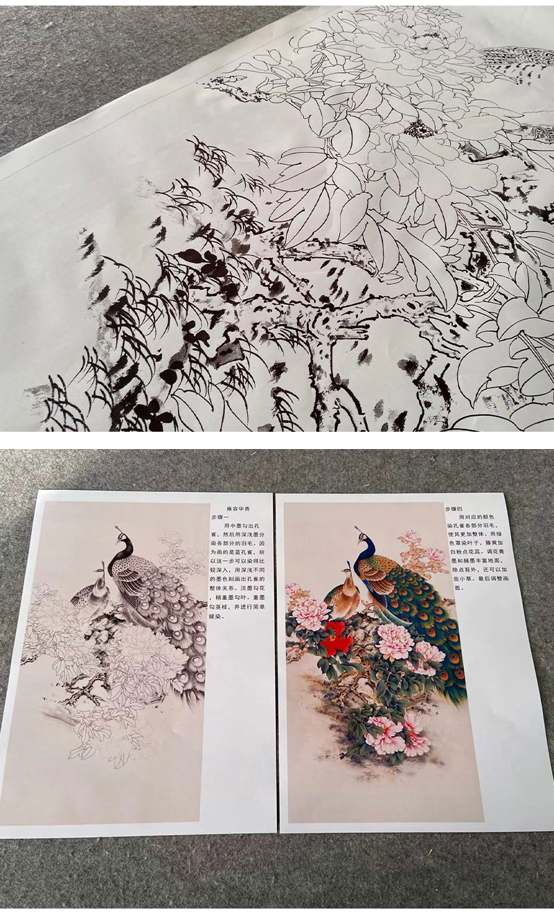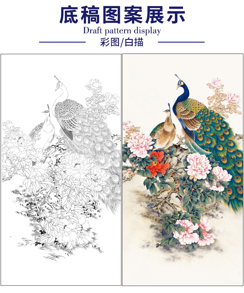 【有步骤】陈军工笔画白描底稿《雍容华贵》孔雀牡丹初学者临摹花鸟线稿CJ34