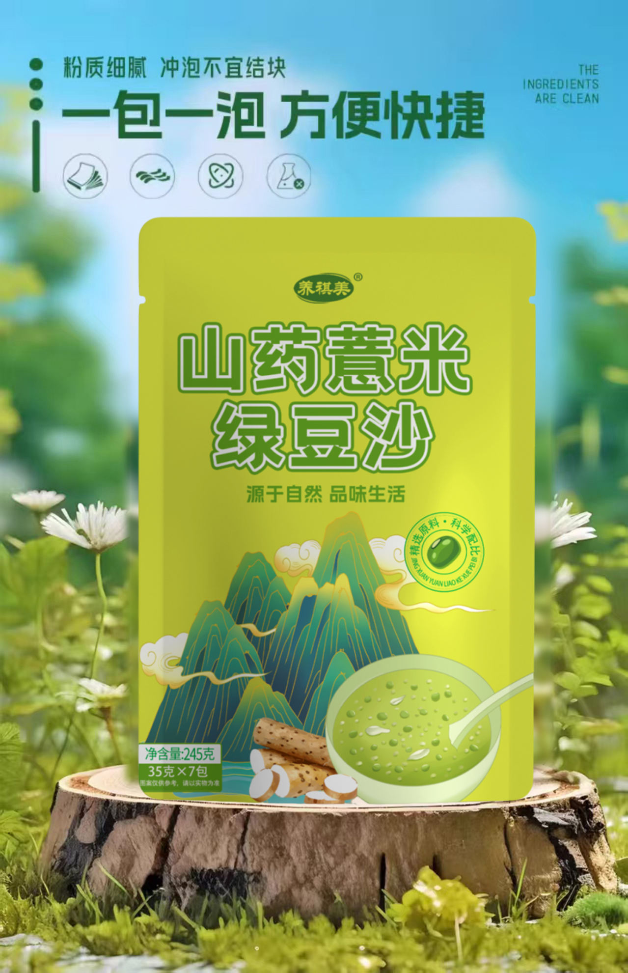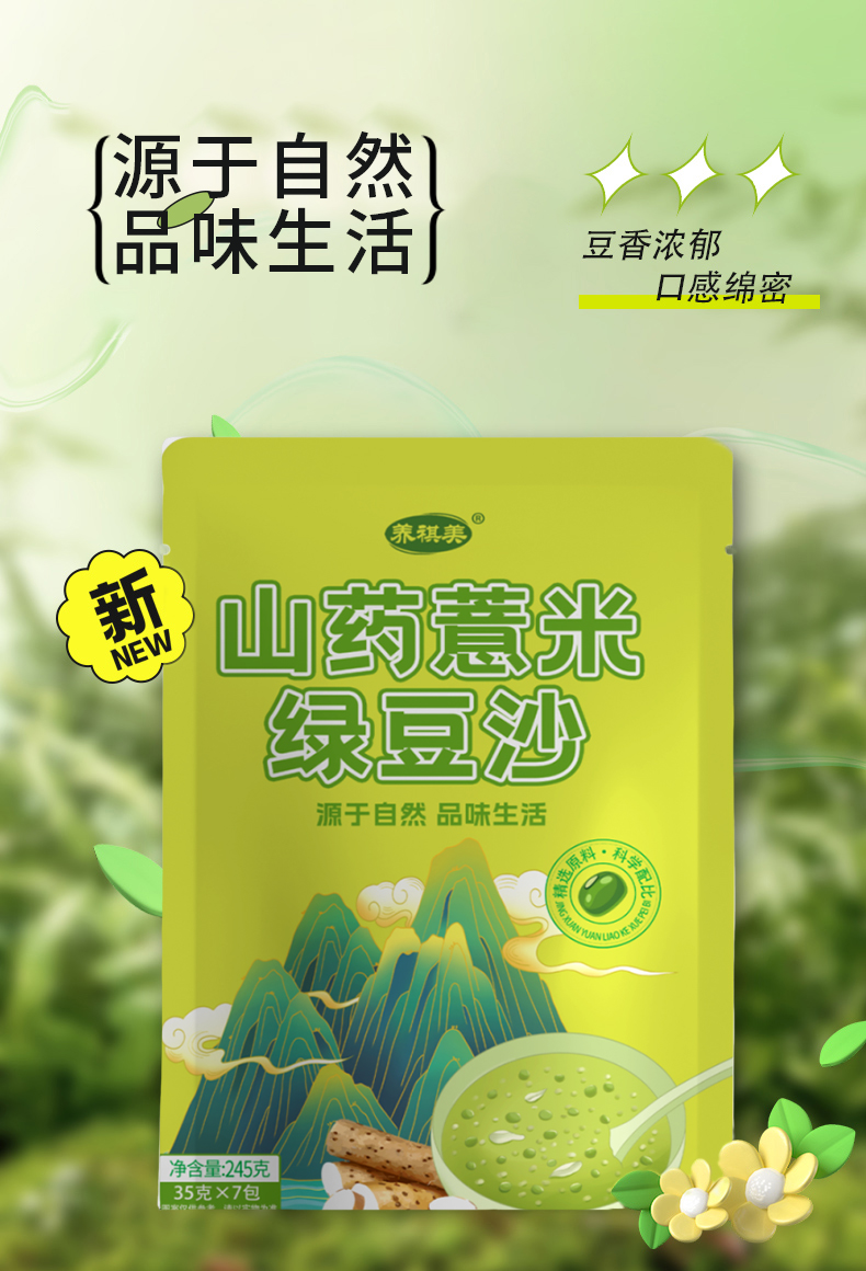 【甄选】山药薏米绿豆沙冷热可冲沙感绵密豆香浓郁245g*3袋