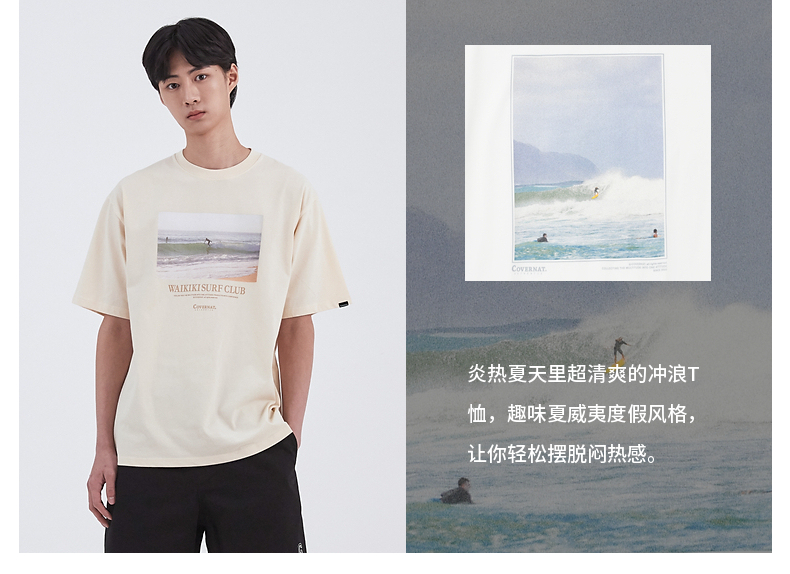 Covernat短袖T恤男女同款新款冲浪印花上衣宽松ins度假风CO2202ST31