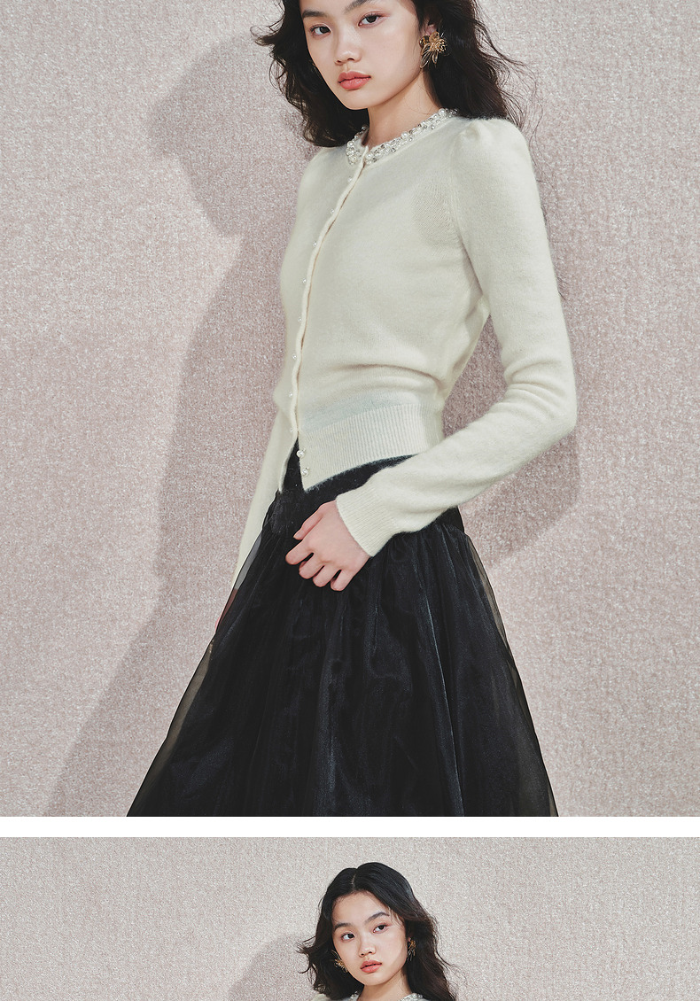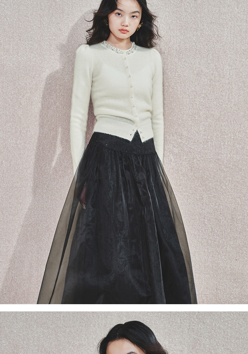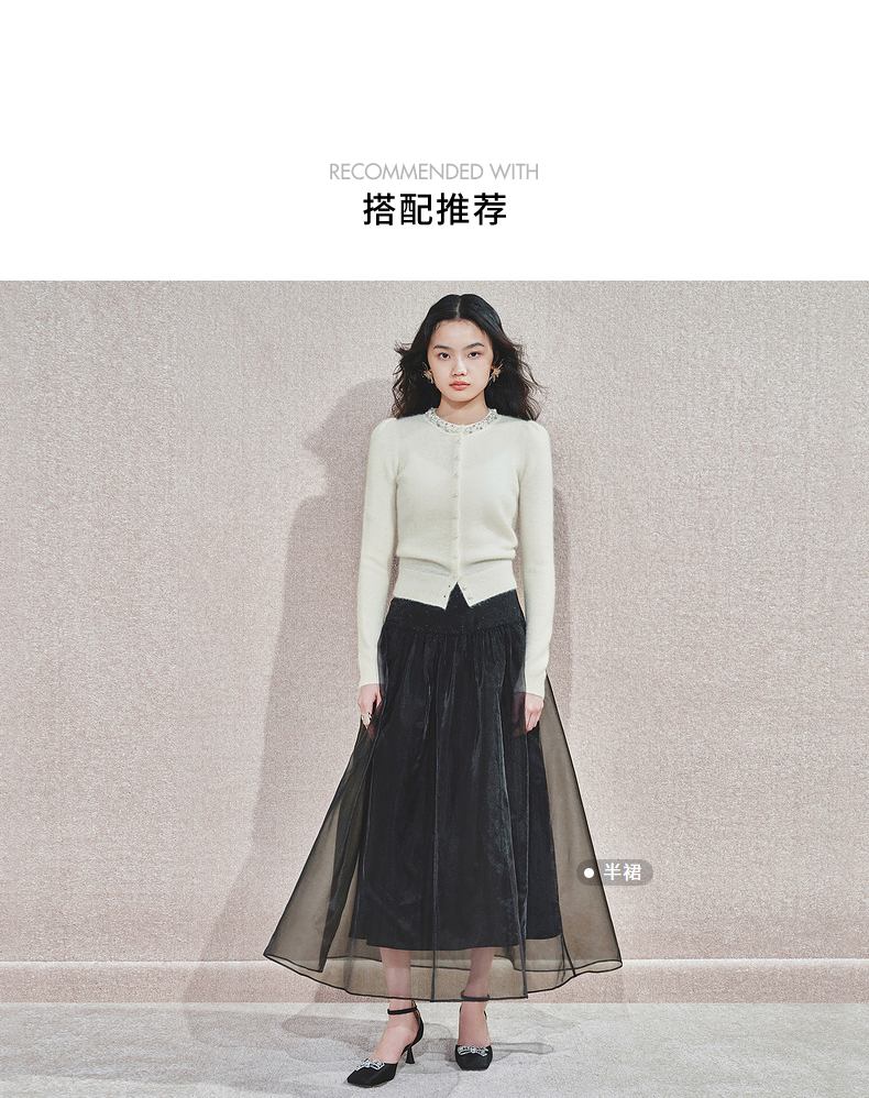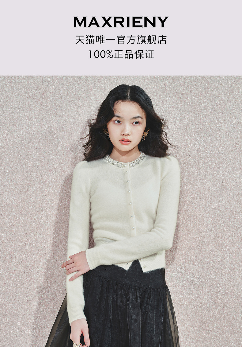 MAXRIENY精致优雅织带针织外套24冬款修身显瘦长袖上衣女小衫内搭(货号:MS85JA779)