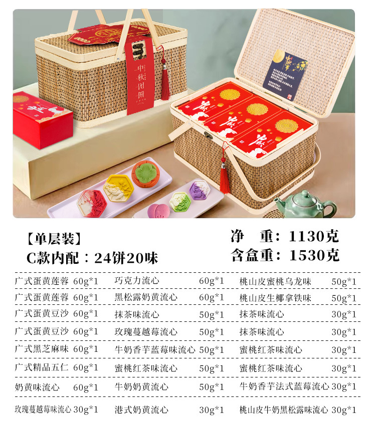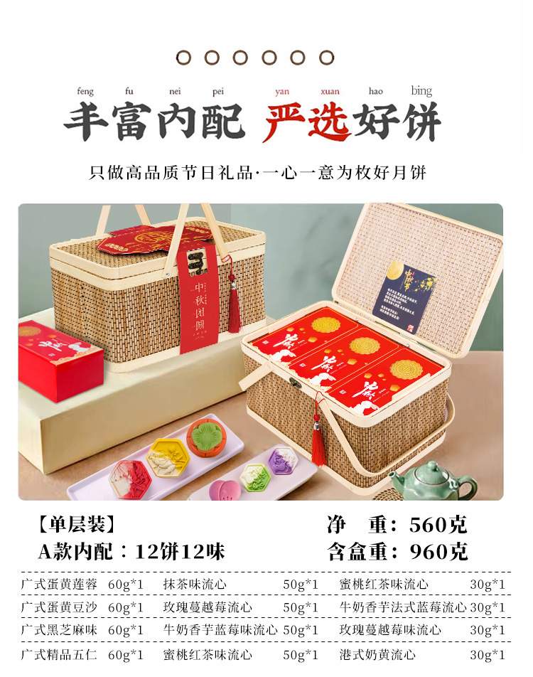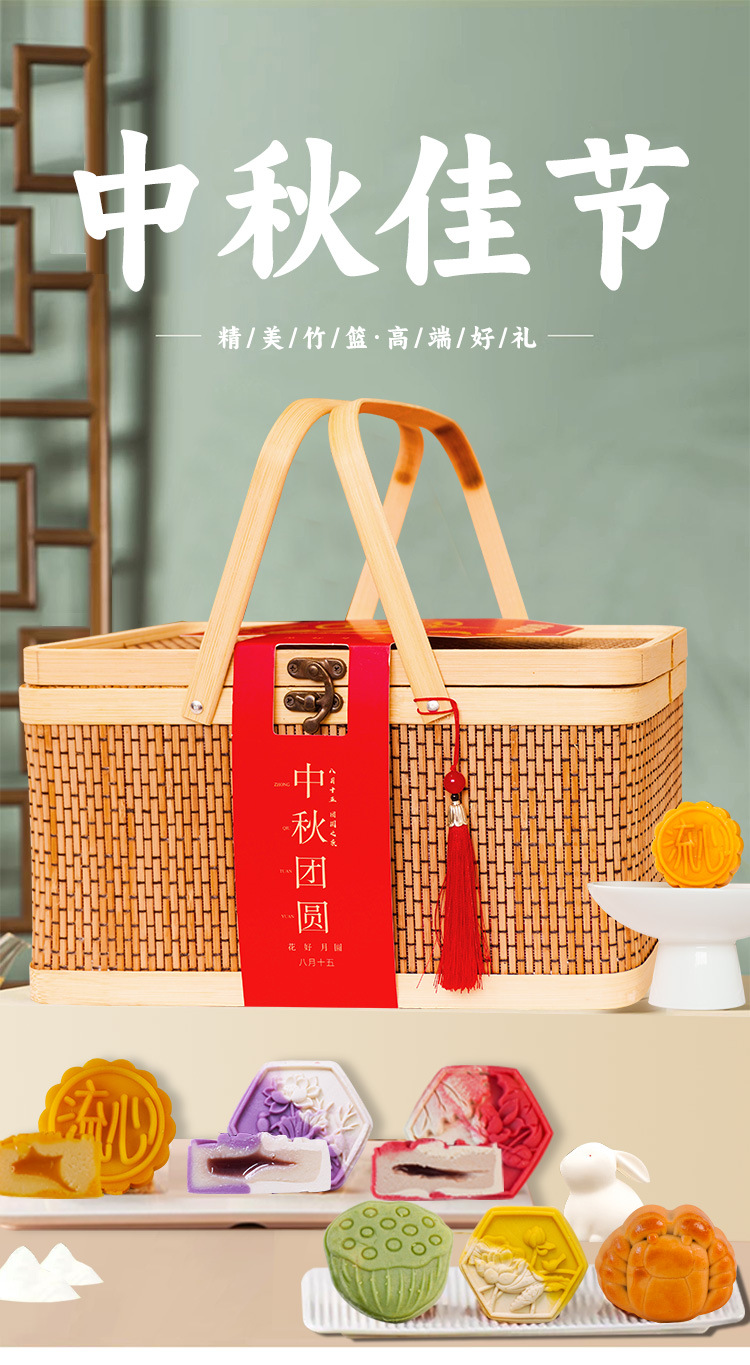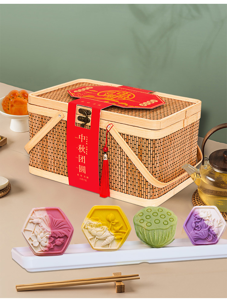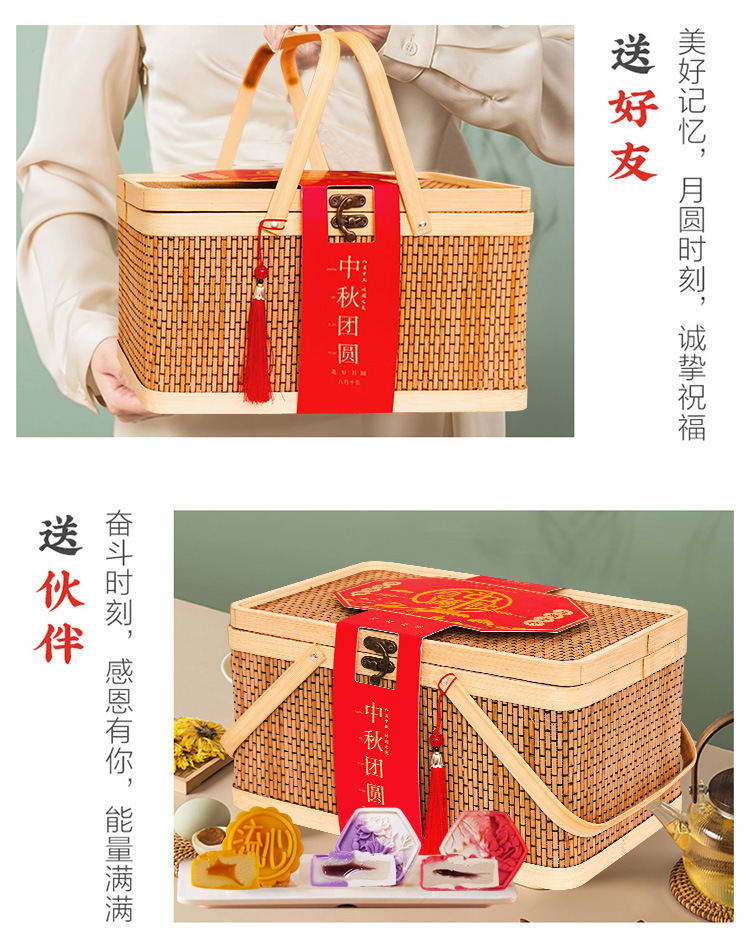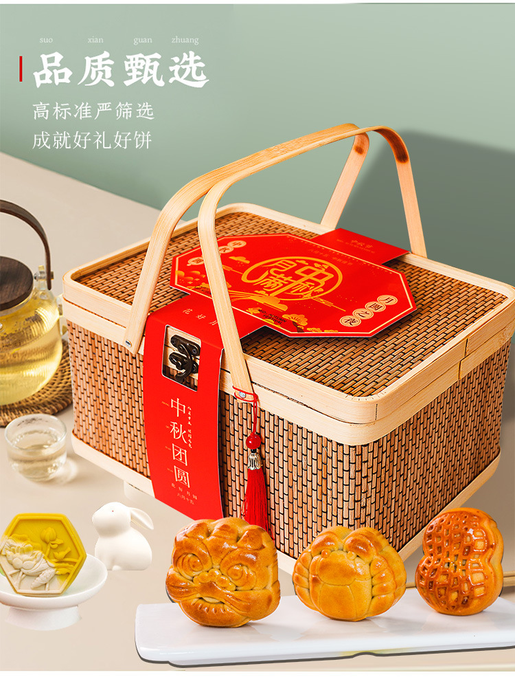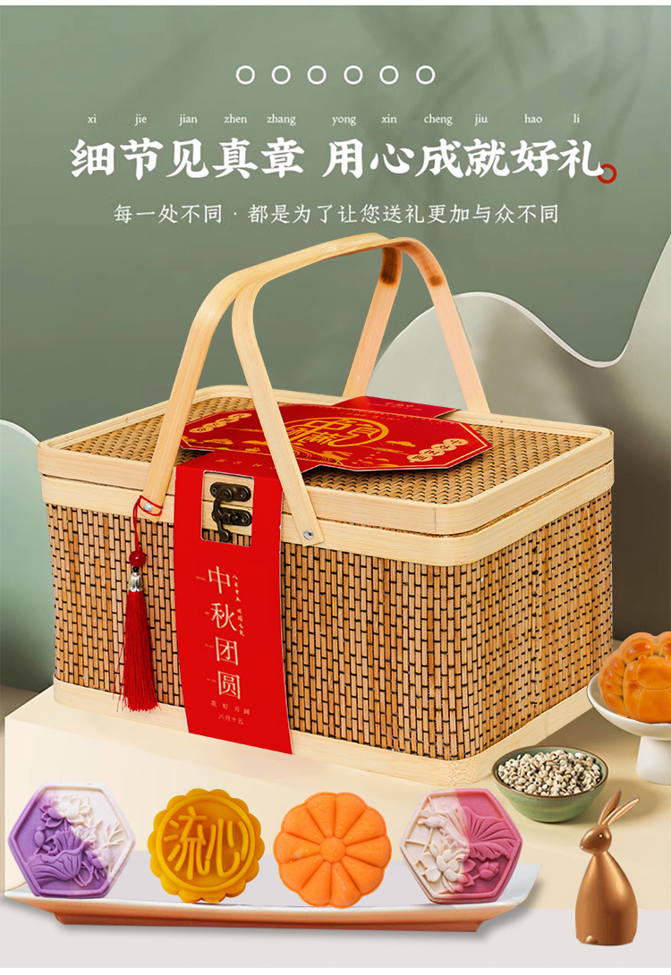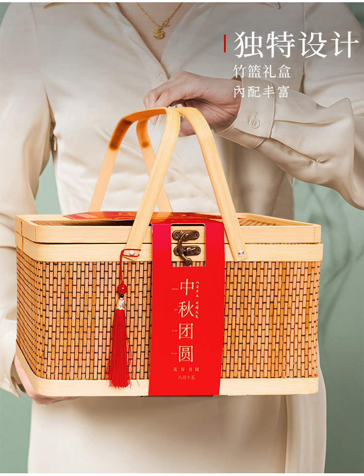【高端搭配!送礼有面】中秋佳节,竹篮款中秋月饼礼盒蛋黄莲蓉奶黄流心礼盒装中秋节团购送礼。rb