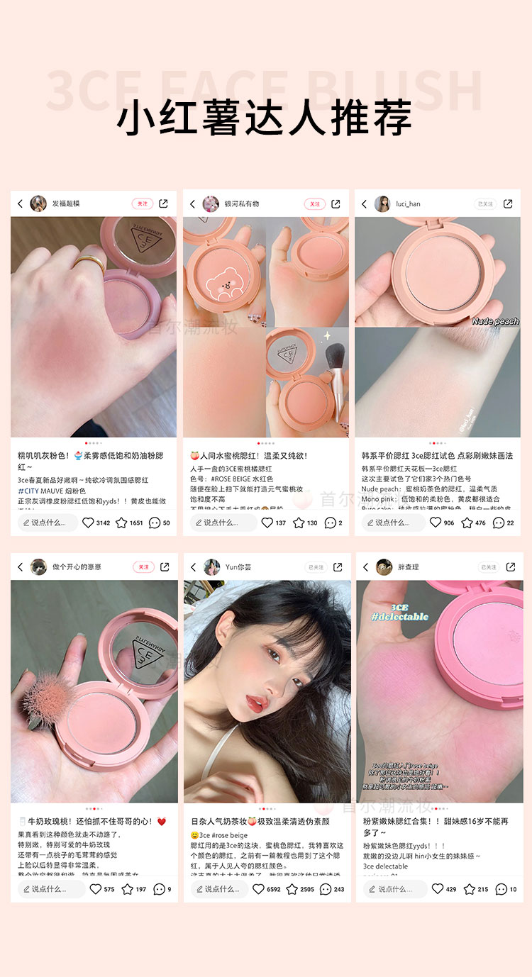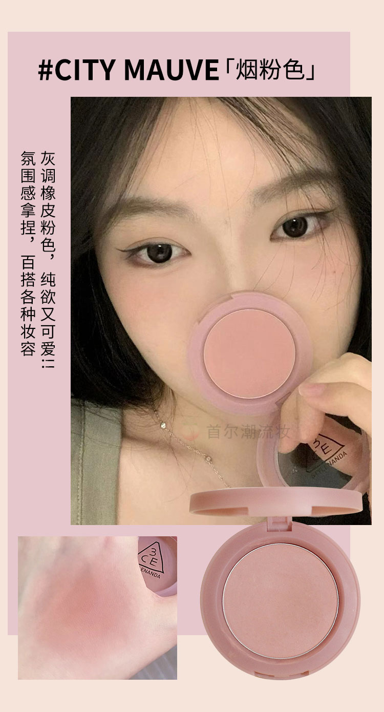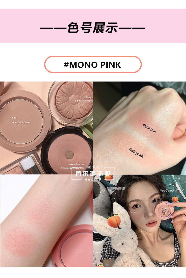 多色入 一秒提气色 3ce单色腮红盘rosebeige蜜桃橘nudepeach柔雾哑光自然