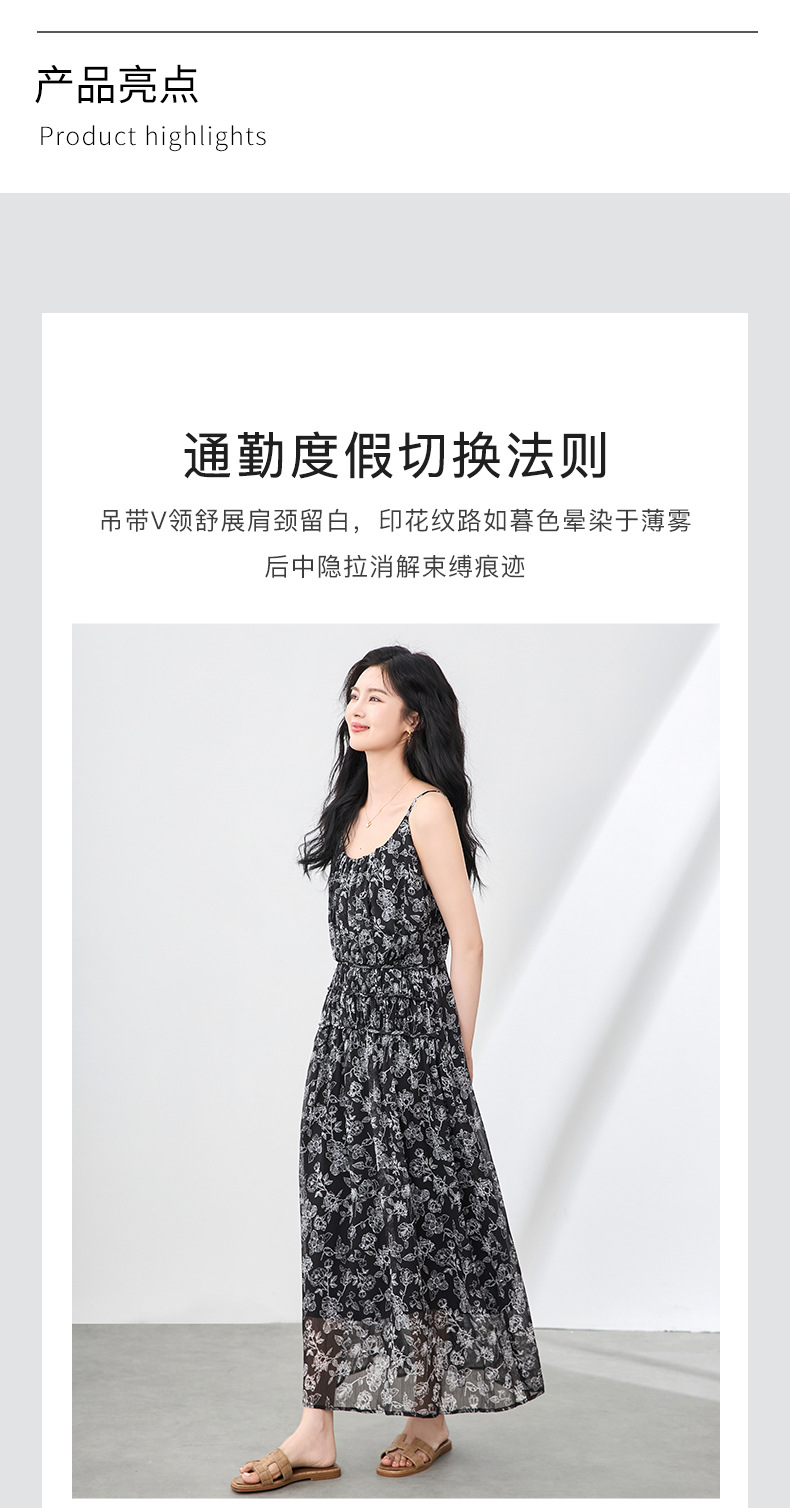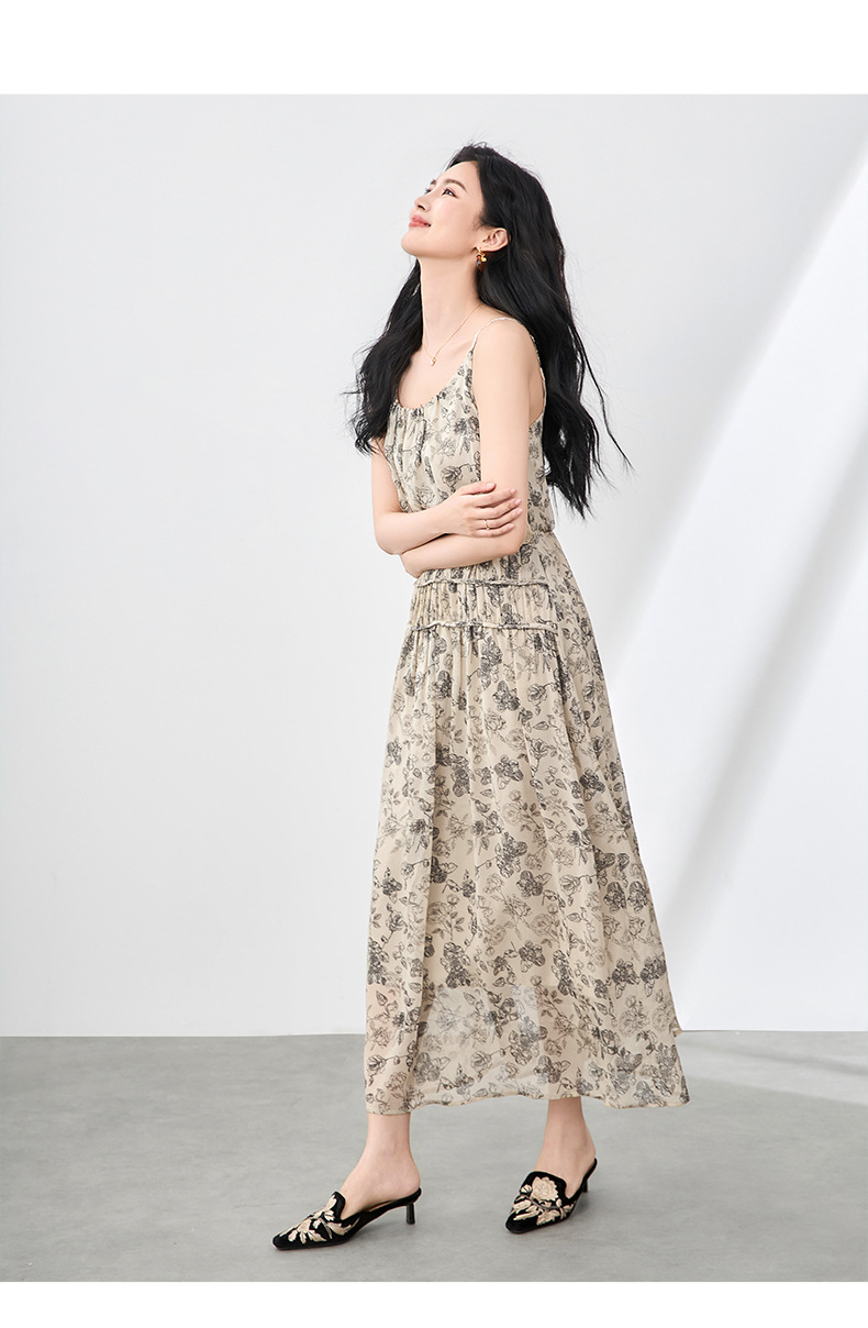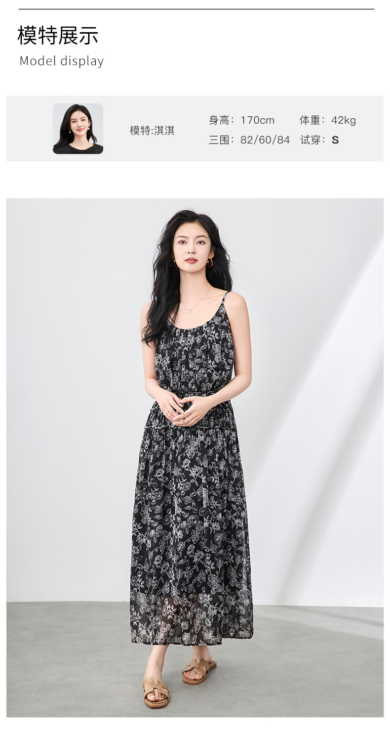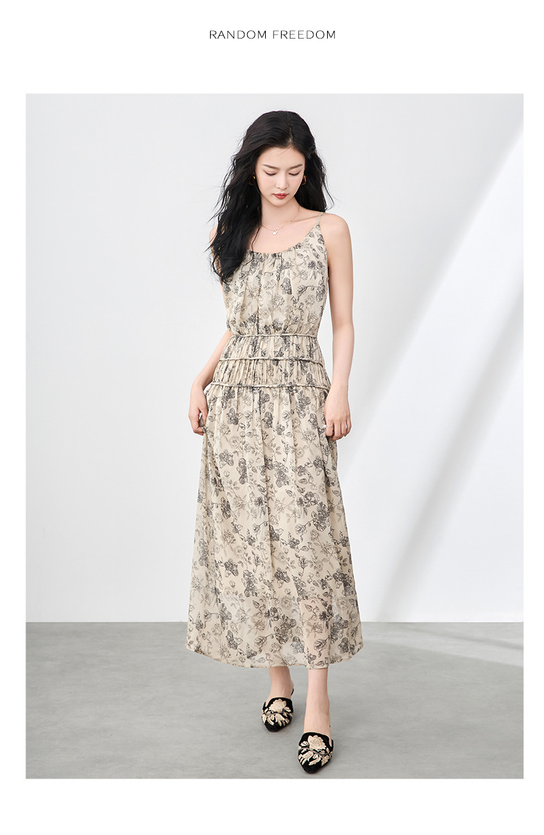 「高货wl」全新升级【铂金会员358/天猫479/差价121】(90920)洛诗琳法式复古轻薄印花连衣裙2025夏季新款雪纺吊带裙女
