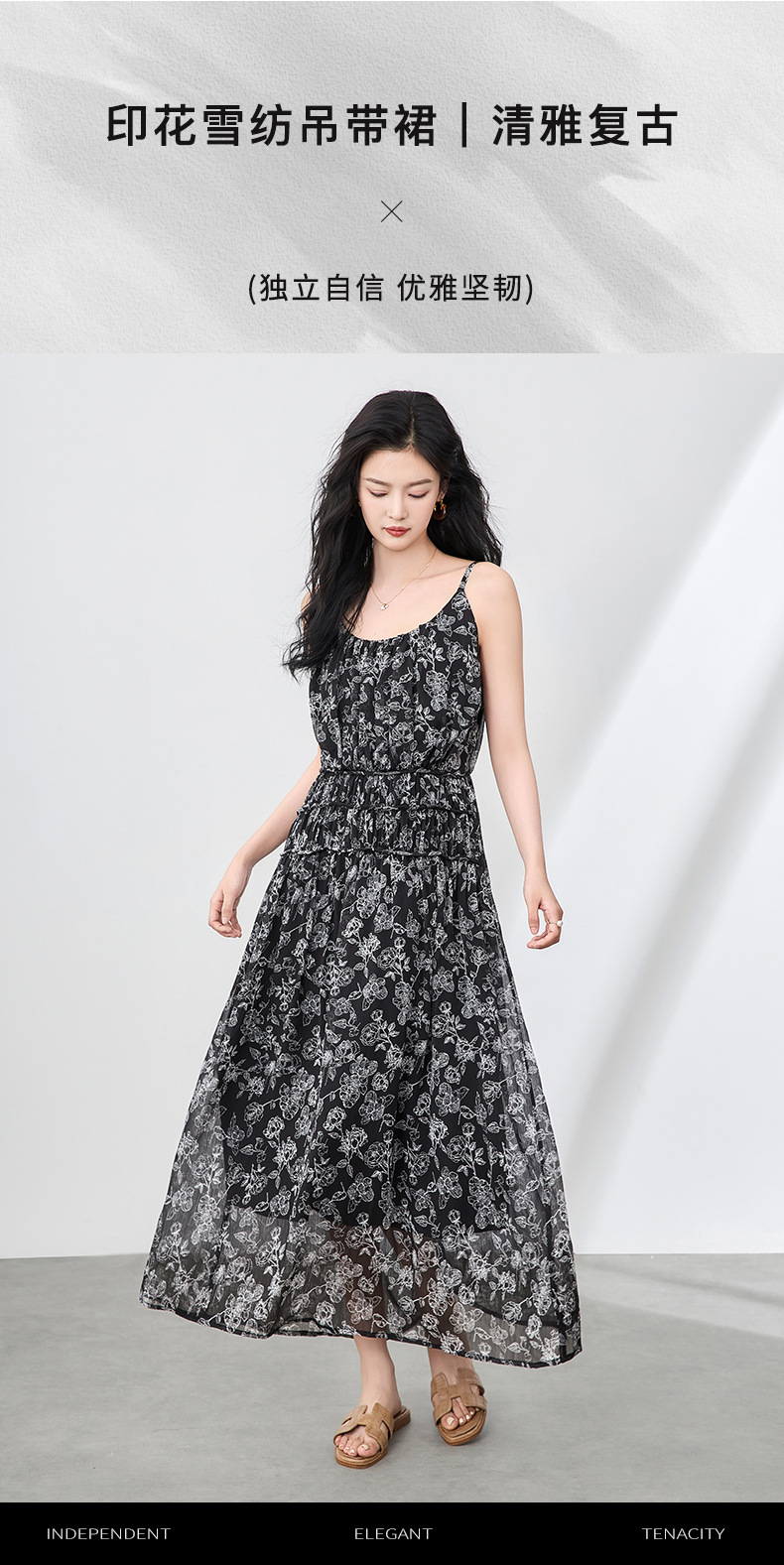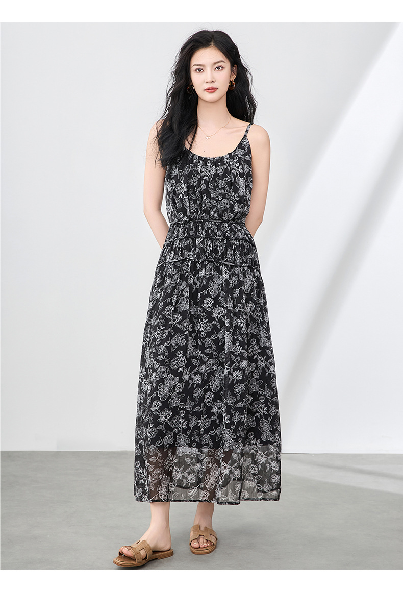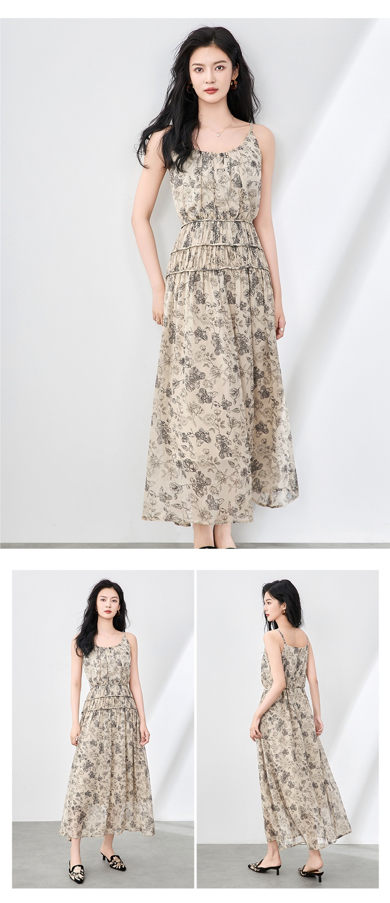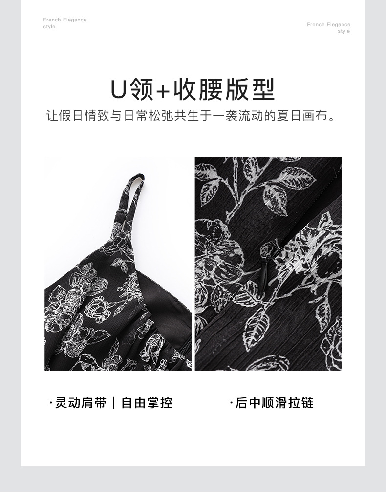「高货wl」全新升级【铂金会员358/天猫479/差价121】(90920)洛诗琳法式复古轻薄印花连衣裙2025夏季新款雪纺吊带裙女