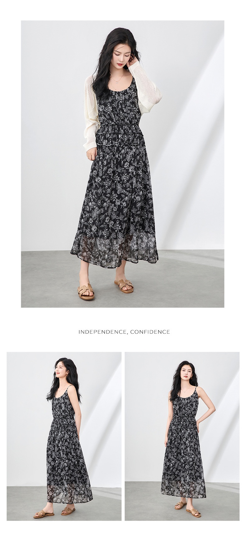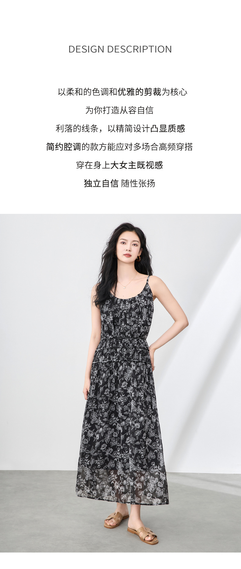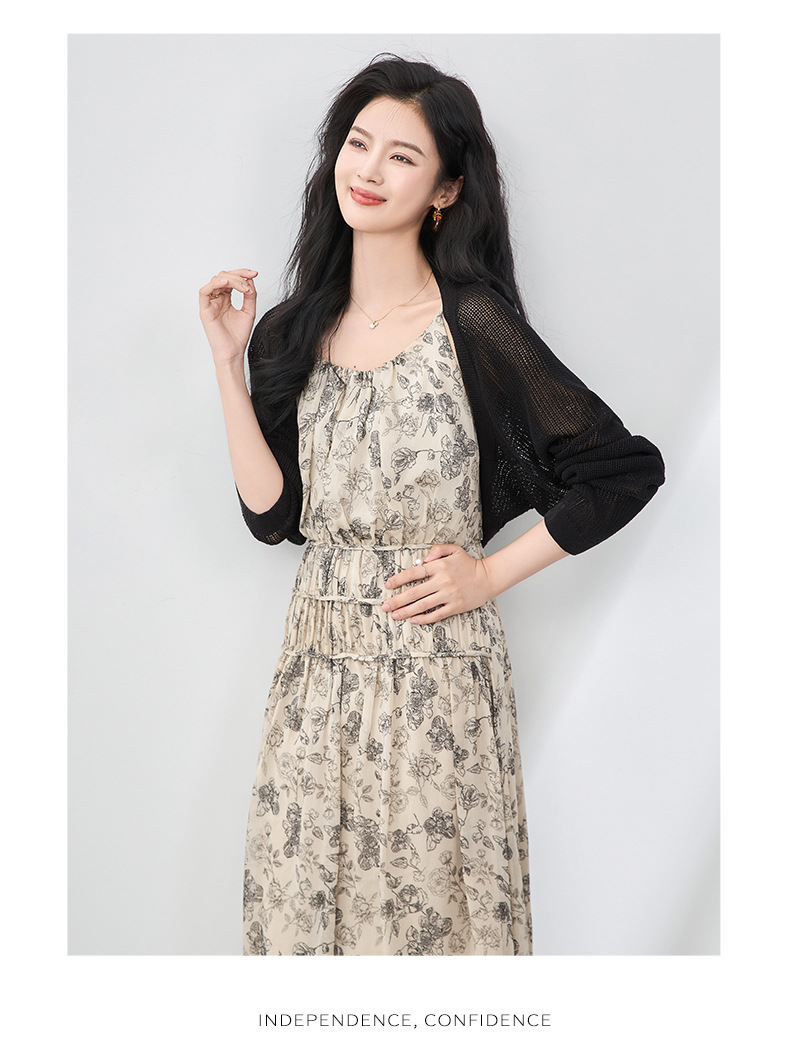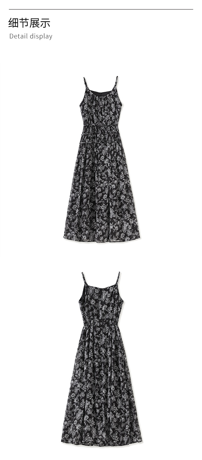 「高货wl」全新升级【铂金会员358/天猫479/差价121】(90920)洛诗琳法式复古轻薄印花连衣裙2025夏季新款雪纺吊带裙女