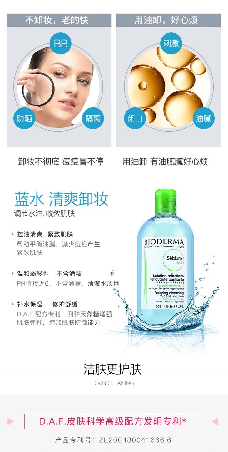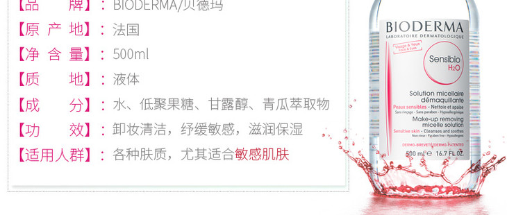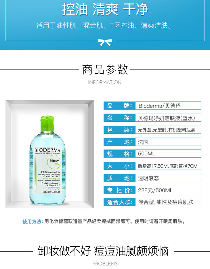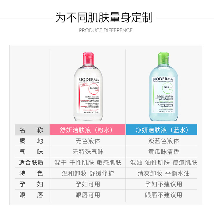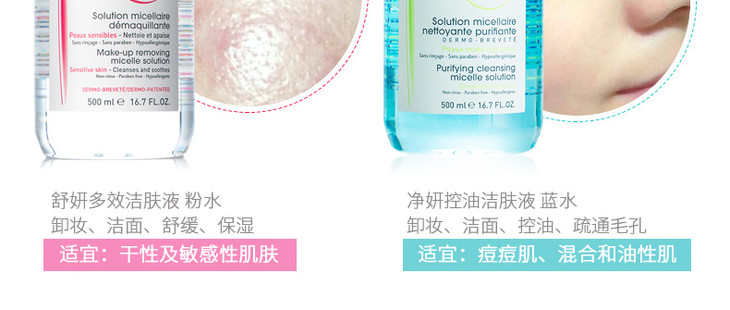 法国 贝德玛净妍控油洁肤液 卸妆水 蓝色 粉色