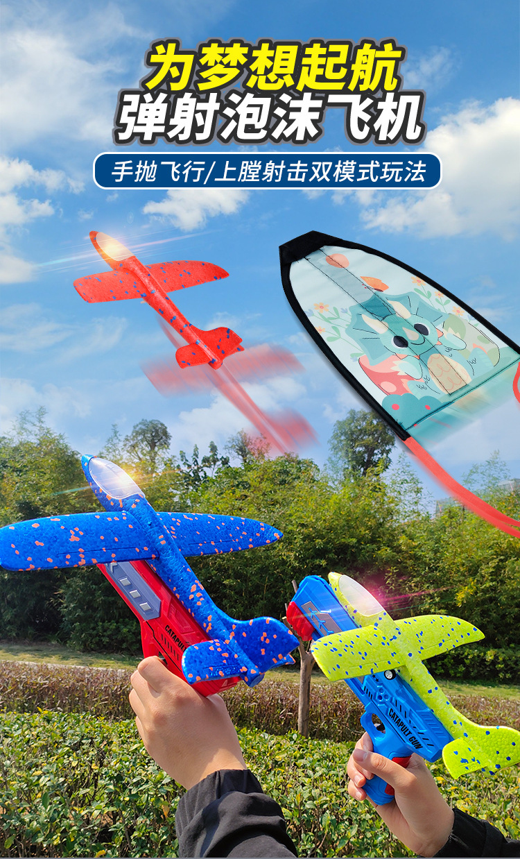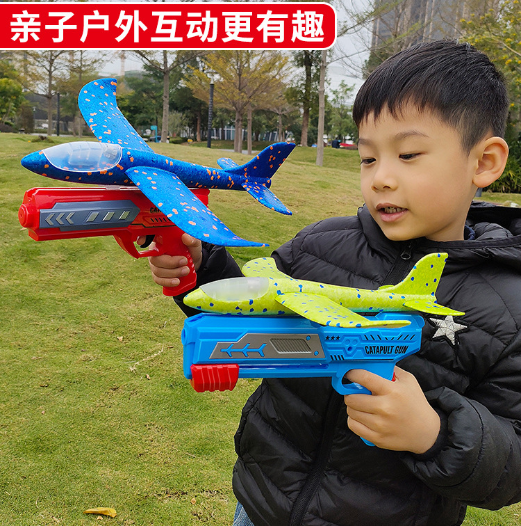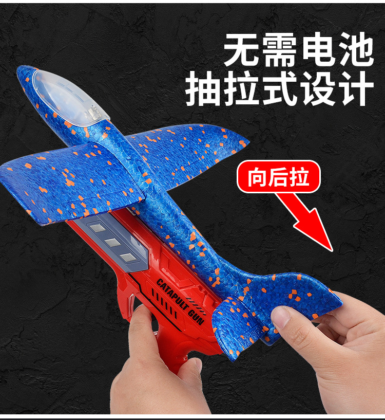 【无需电池!弹射泡沫飞机】网红爆款儿童发光泡沫弹射飞机,抽拉式设计,韧性十足,夜间玩耍更炫酷,枪发射器玩具,男孩女孩-li