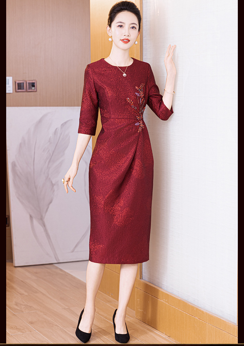 LC25412025年秋季新款妈妈婚宴礼服高级轻奢提花料包臀裙优雅气质轻奢风