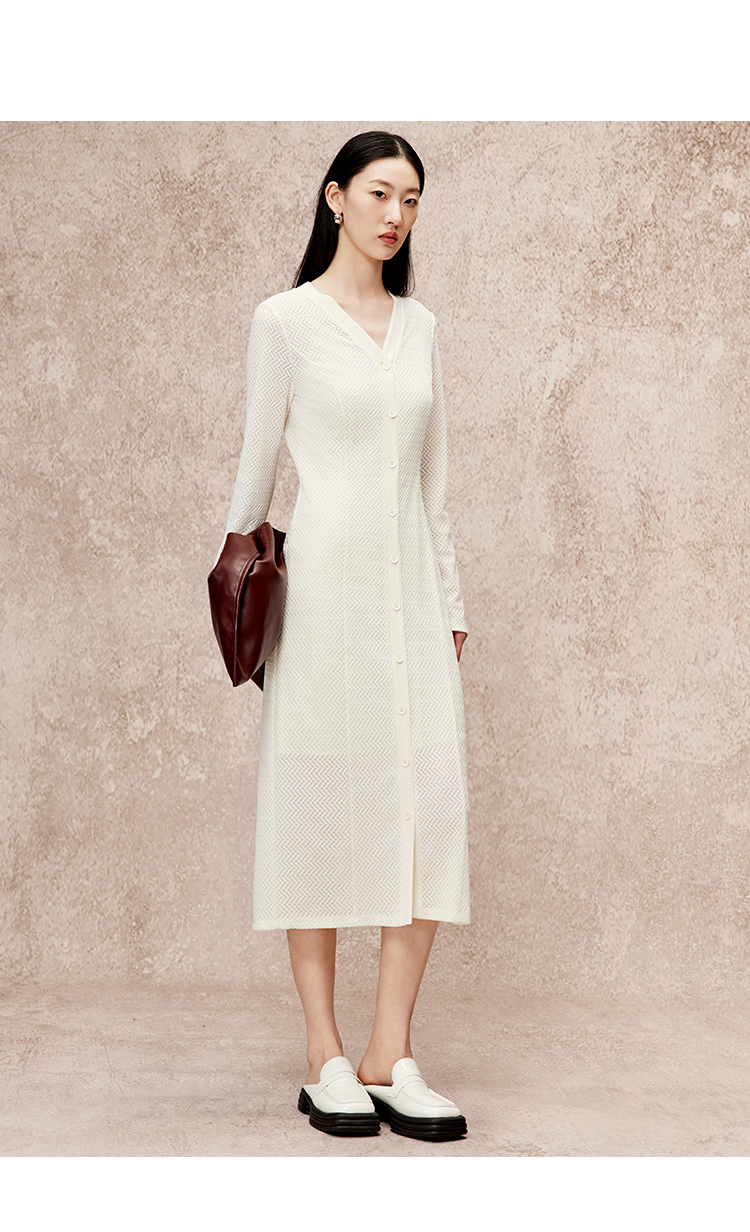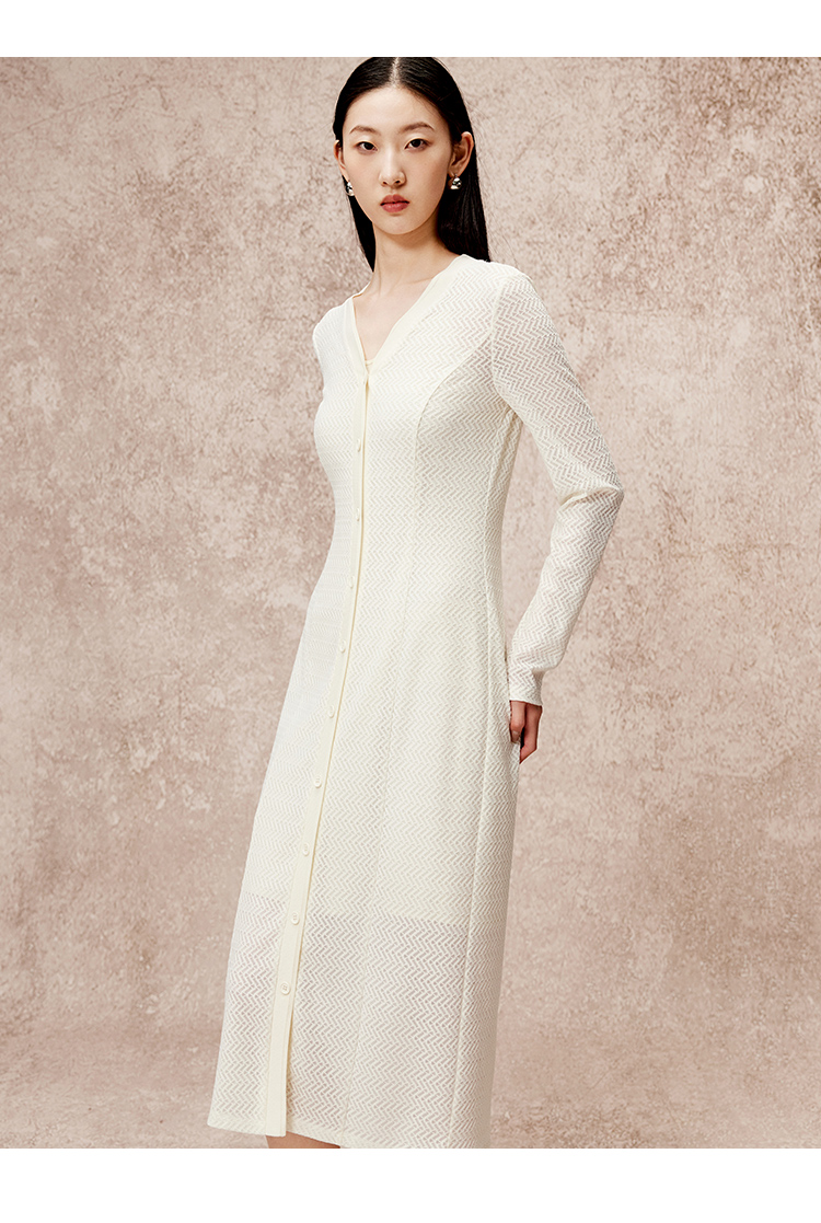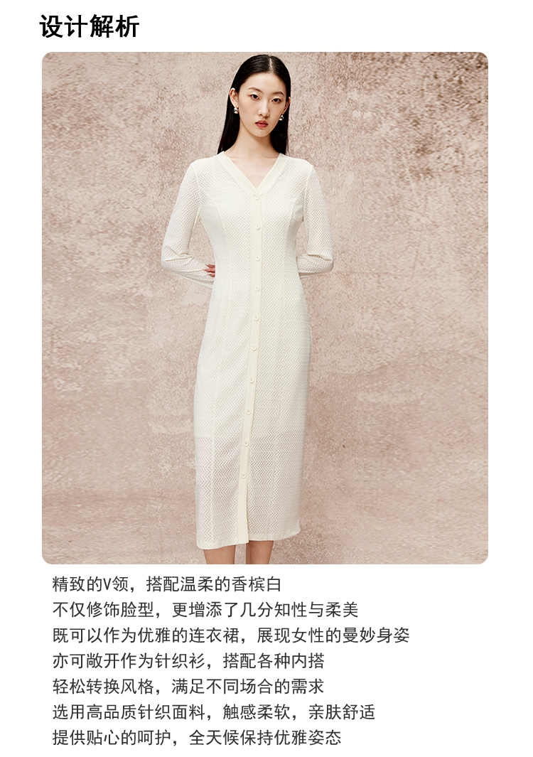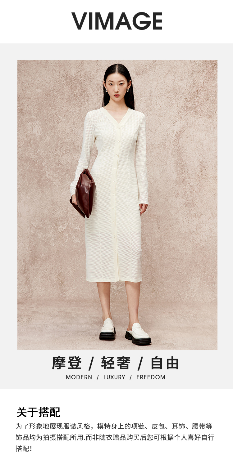 VIMAGE纬漫纪气质镂空修身显瘦钩花两件套连衣裙秋季新款V2207816