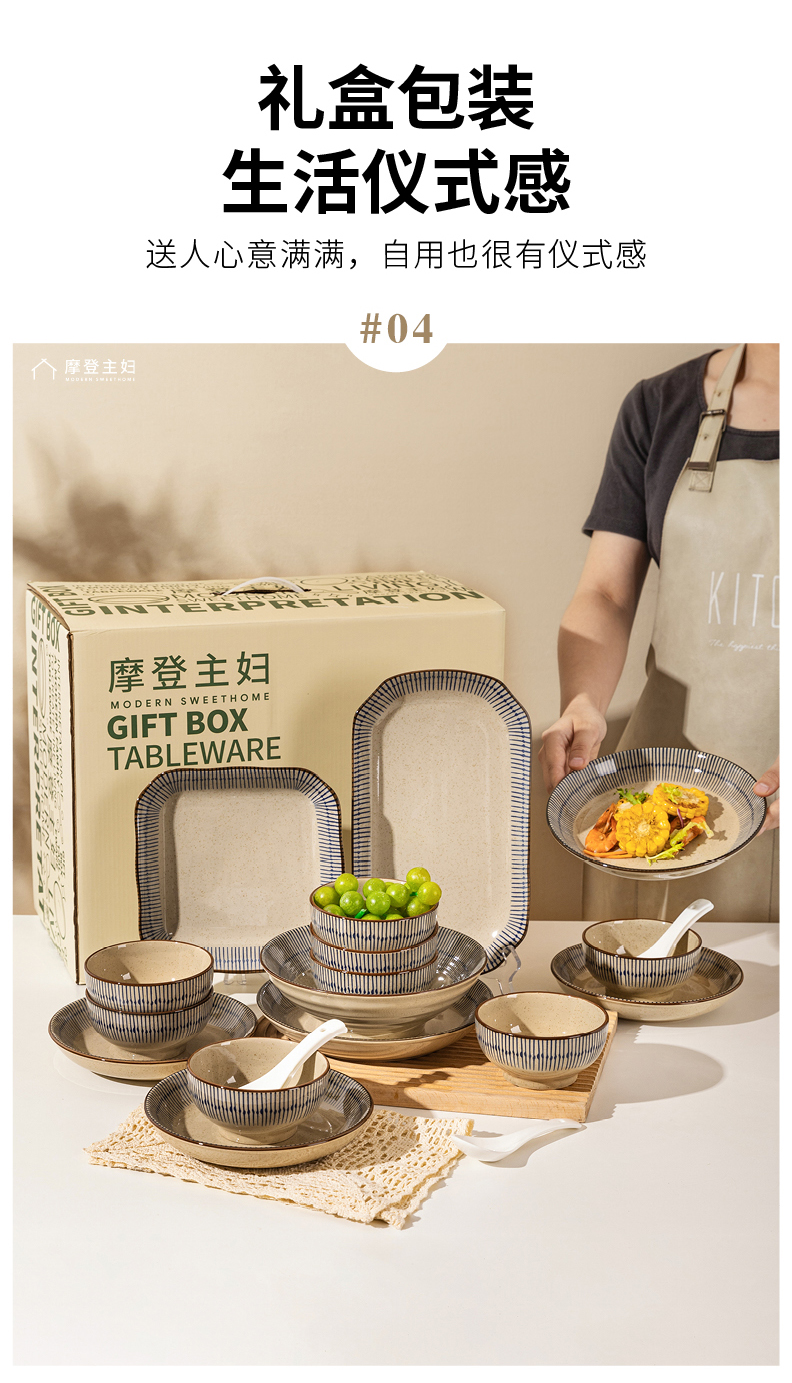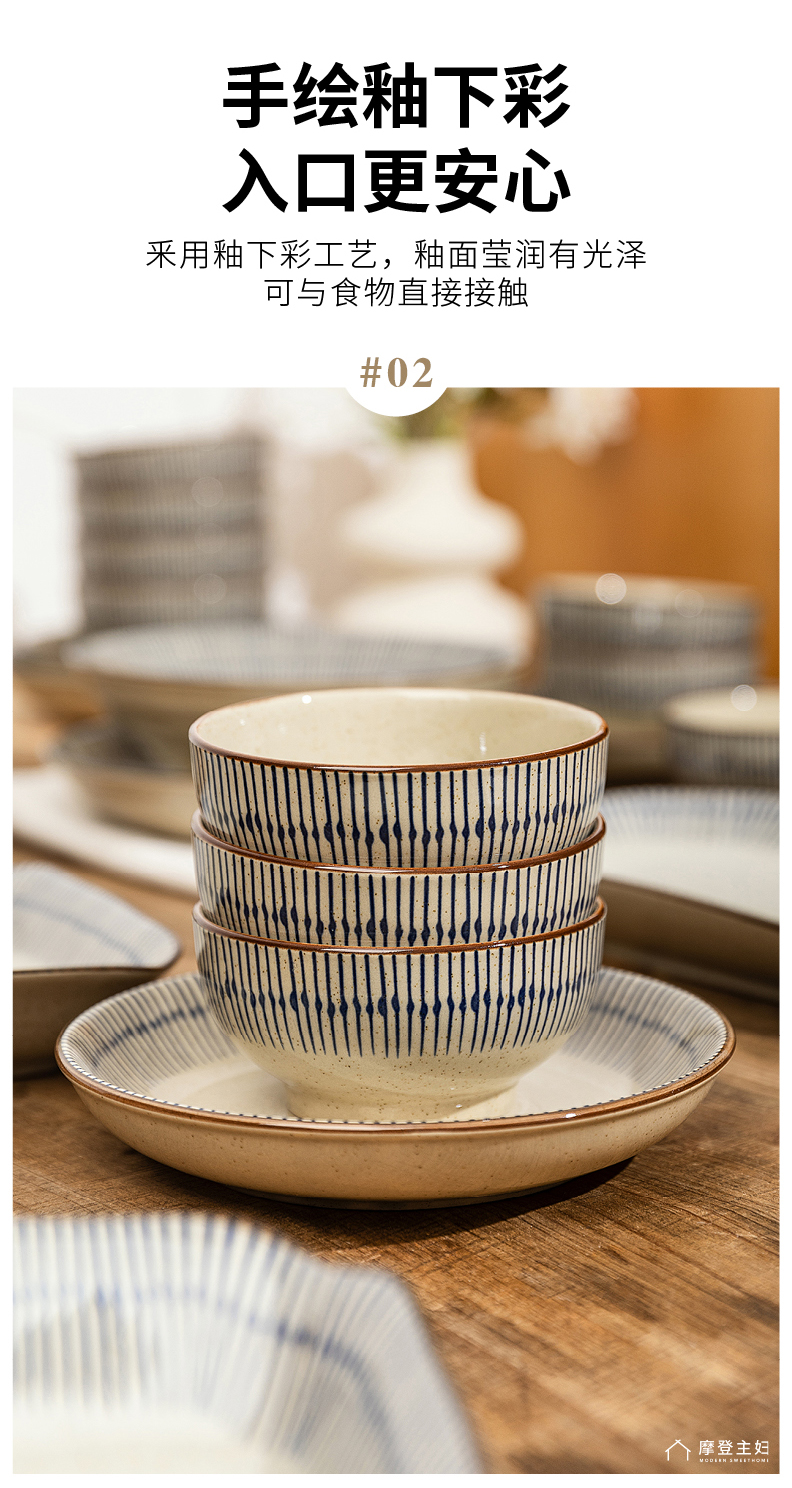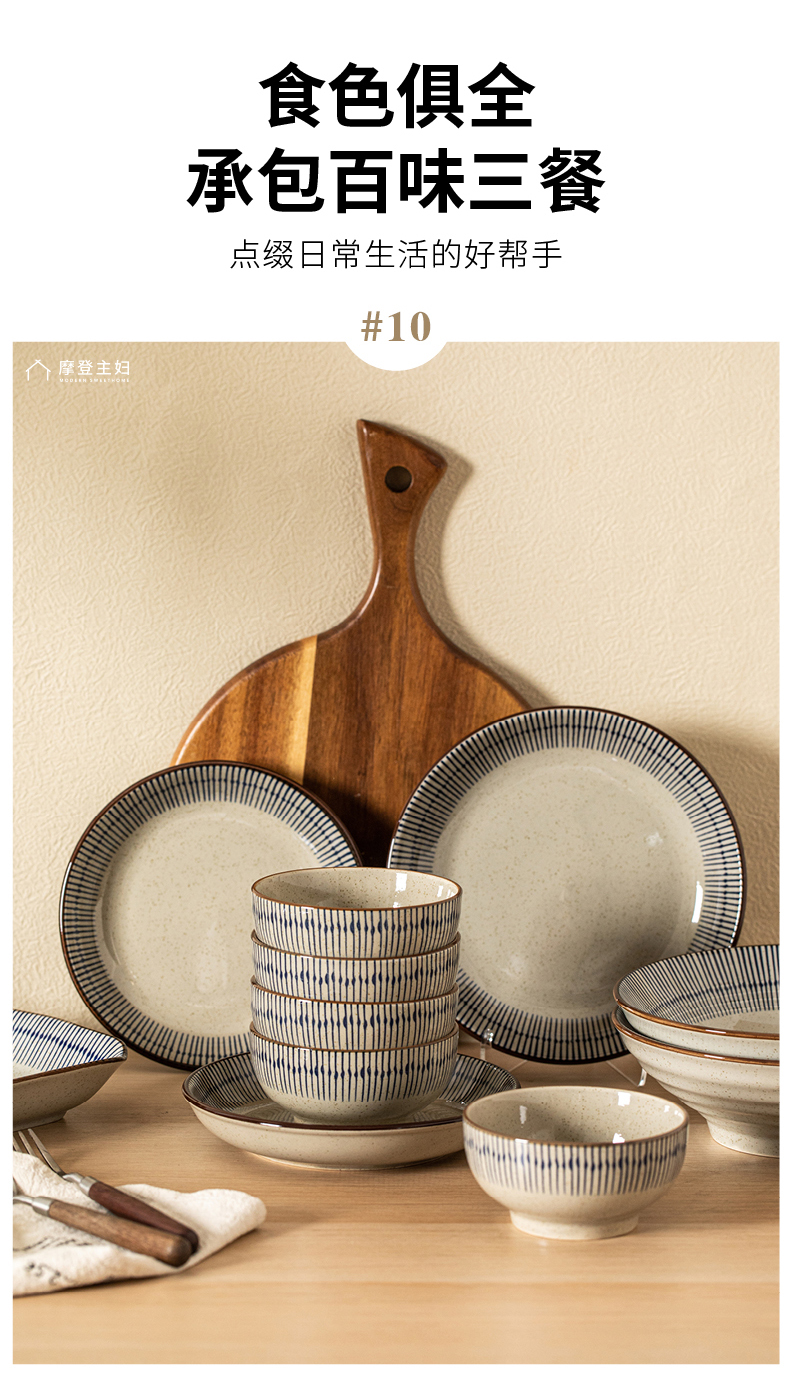 摩登主妇蓝雨碗碟乔迁餐具陶瓷套装陶瓷碗具家用2024新款高颜值汤面碗