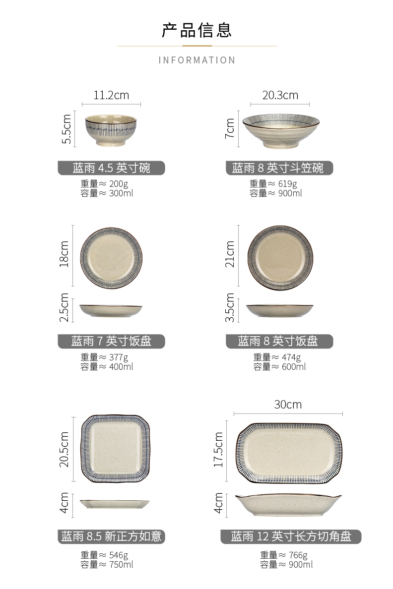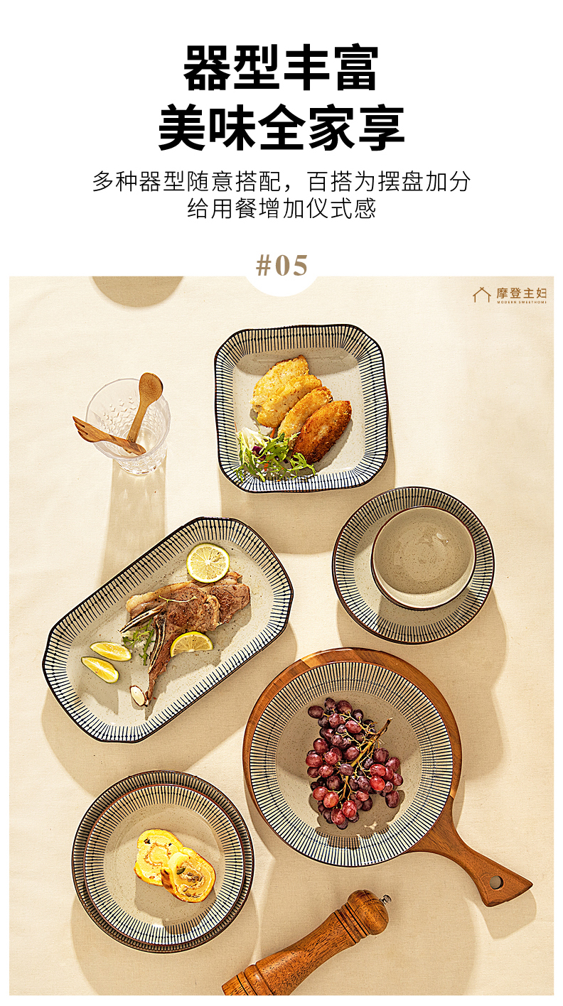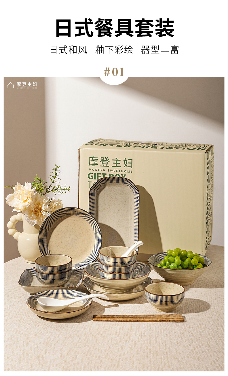 摩登主妇蓝雨碗碟乔迁餐具陶瓷套装陶瓷碗具家用2024新款高颜值汤面碗