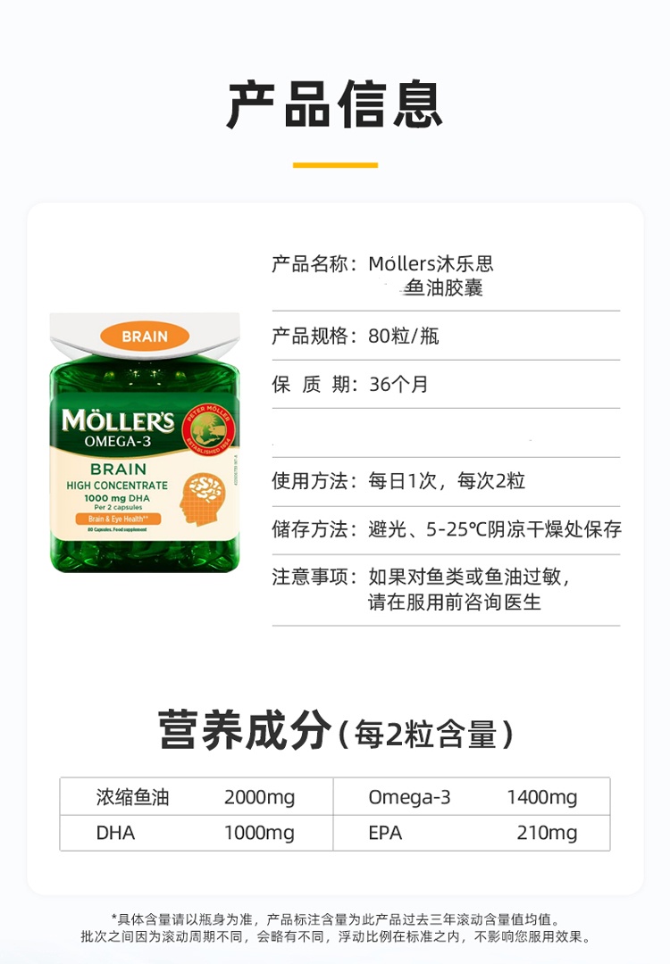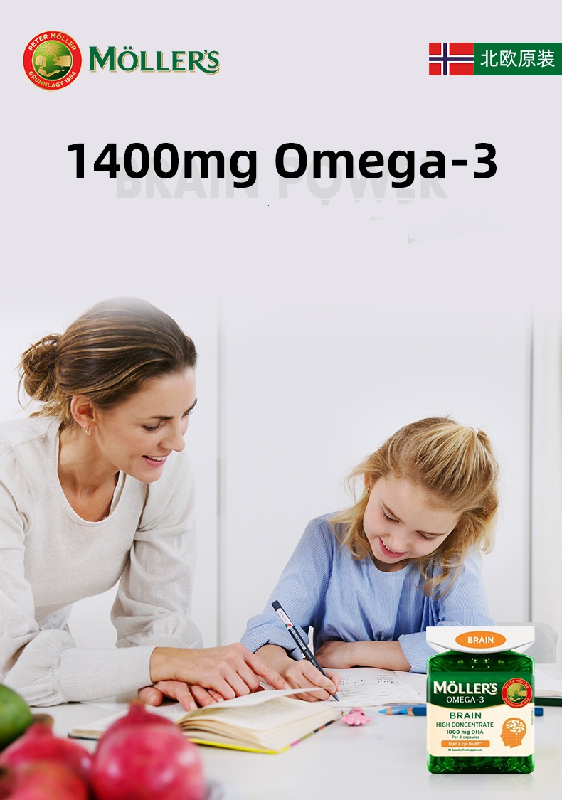 【跨境】挪威沐乐思Mollers鳕鱼肝油胶囊 80粒/瓶 1400mg Omega-3青少年