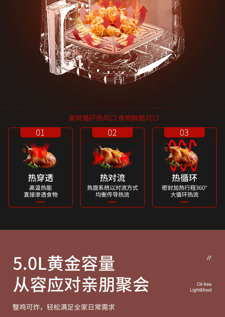 扬子空气炸锅 大容量5L 高端品质 全家享用