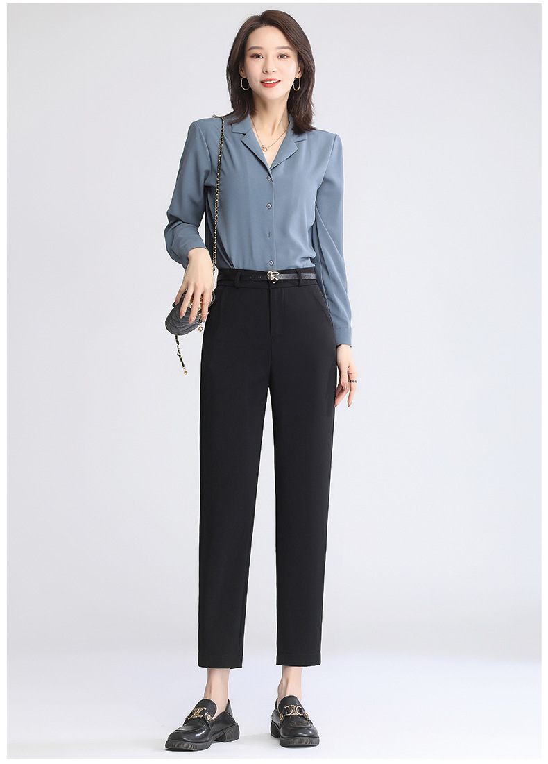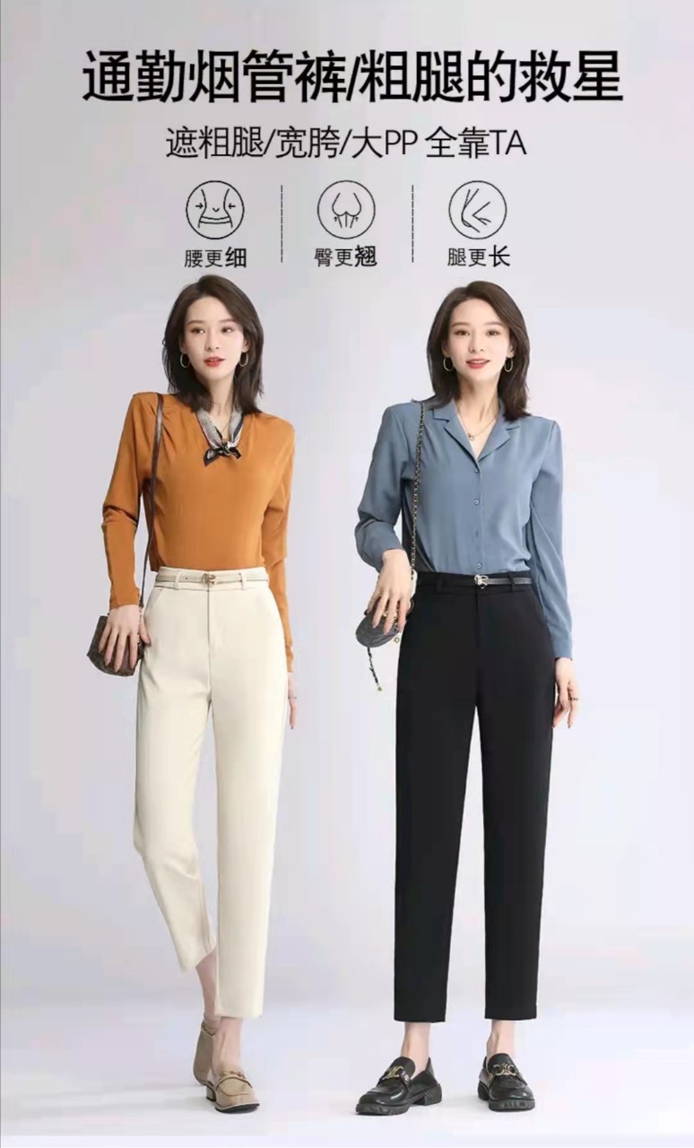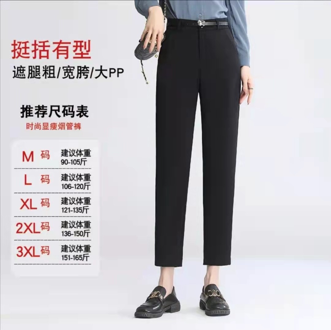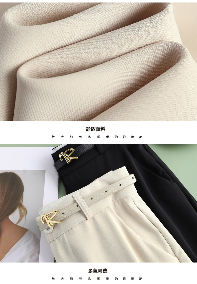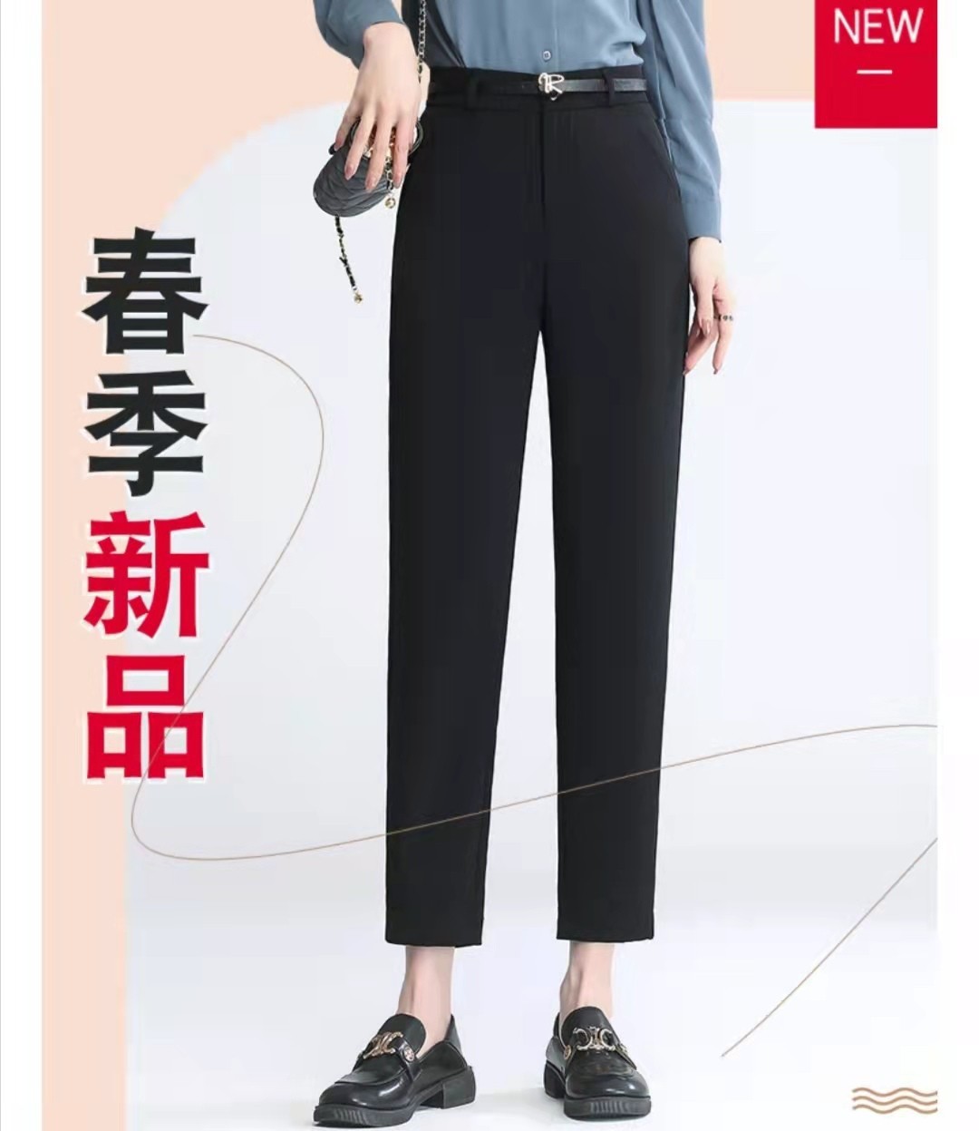 早春长裤气质通勤无腰带直筒型高腰黑色宽松通勤直筒裤 PXSJ2809