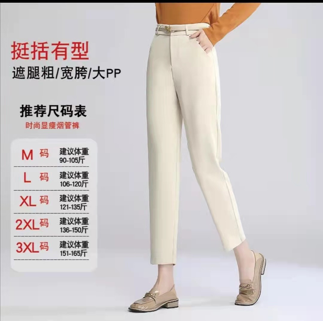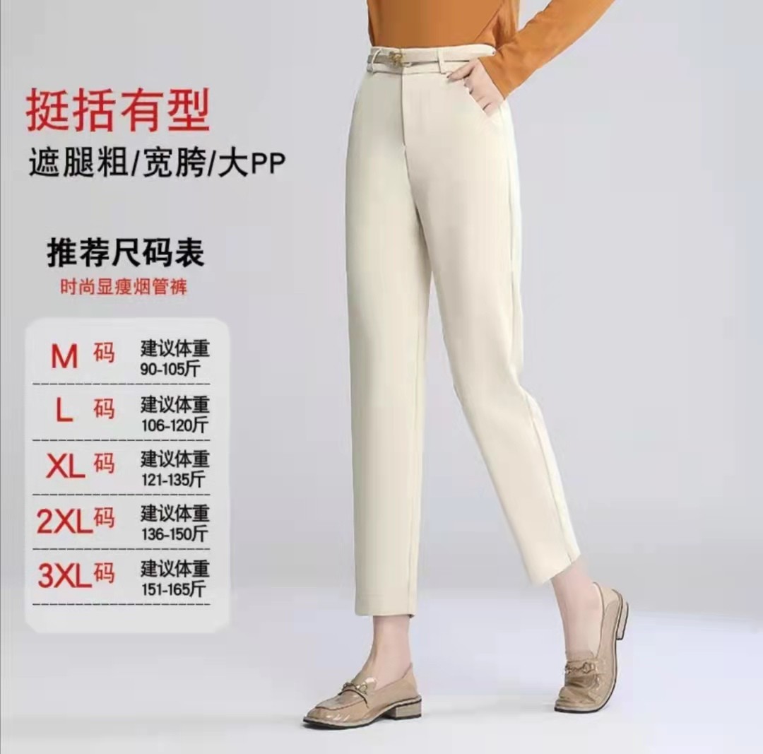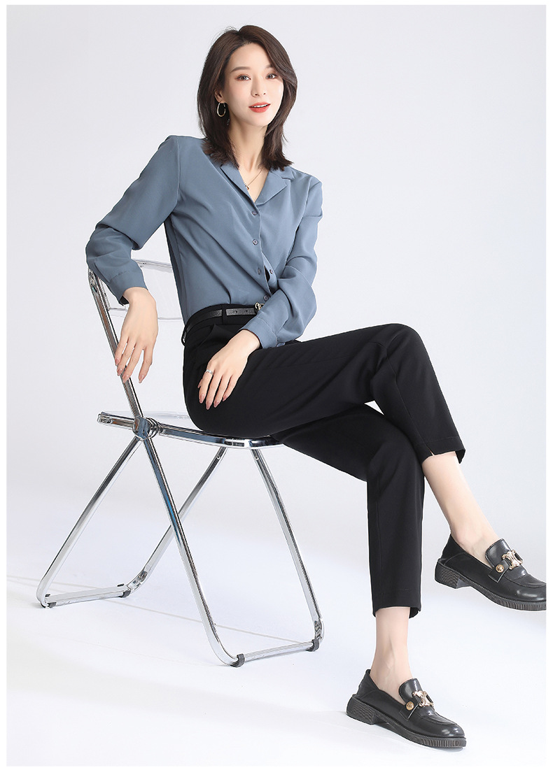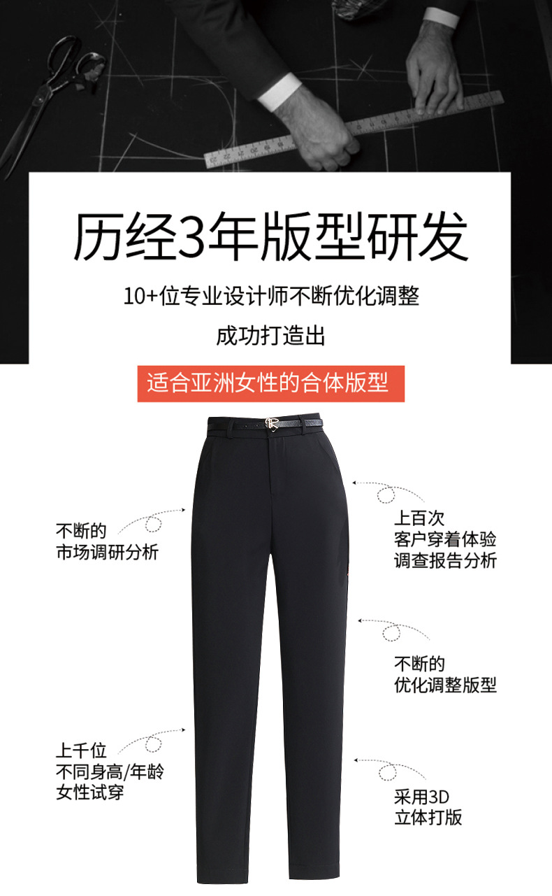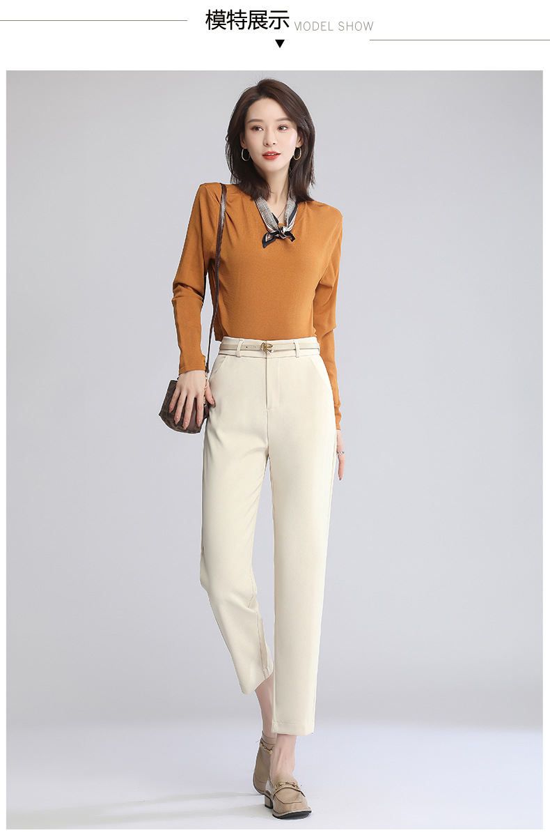 早春长裤气质通勤无腰带直筒型高腰黑色宽松通勤直筒裤 PXSJ2809
