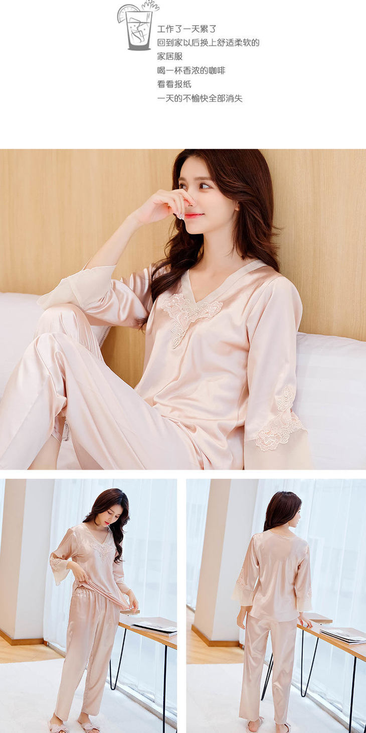 蕾丝长袖套头两件套装睡衣,性感可爱家居服MS21861