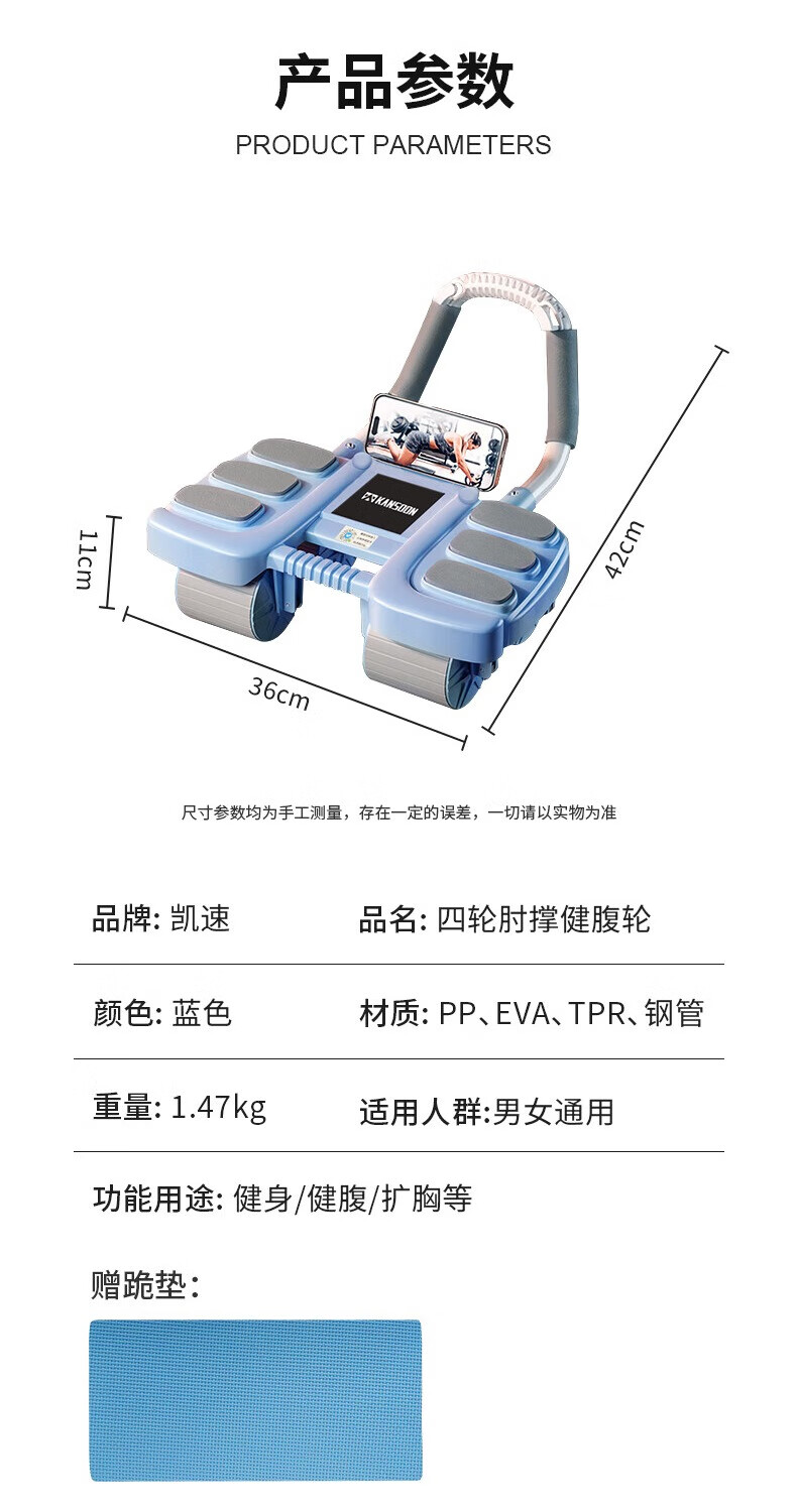 【轻松练出腹肌】凯速自动回弹肘撑健腹轮升级款 平板支撑二合一 送辅助训练小瑜伽垫膝垫
