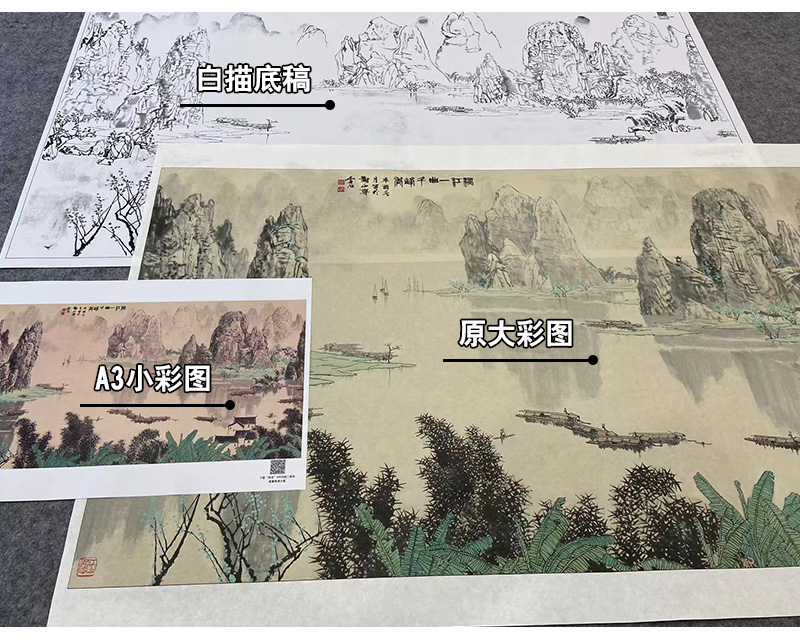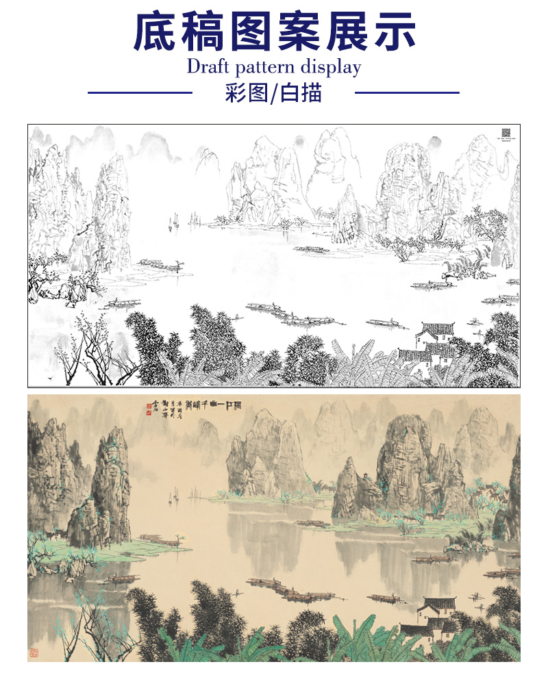 【大彩图】白雪石横幅工笔画白描底稿《漓江》临摹勾线高清打印稿BX04