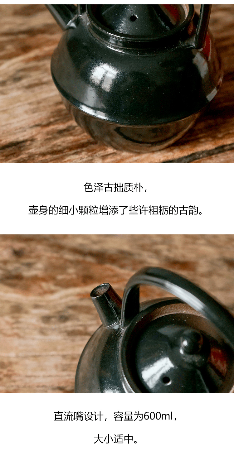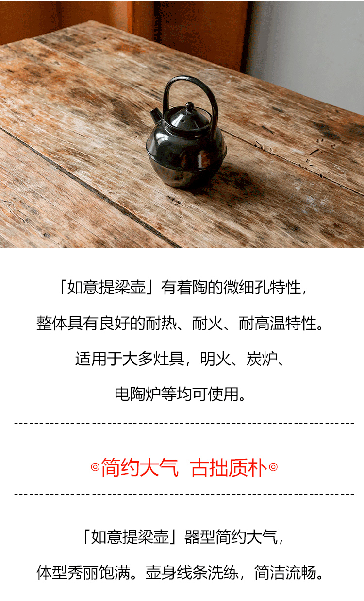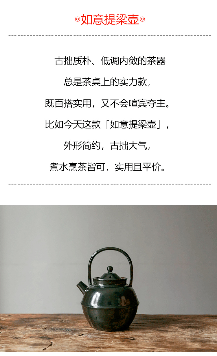 茶香记 如意提梁壶600ml古拙质朴陶瓷泡茶壶原矿陶泥简约好用趁手