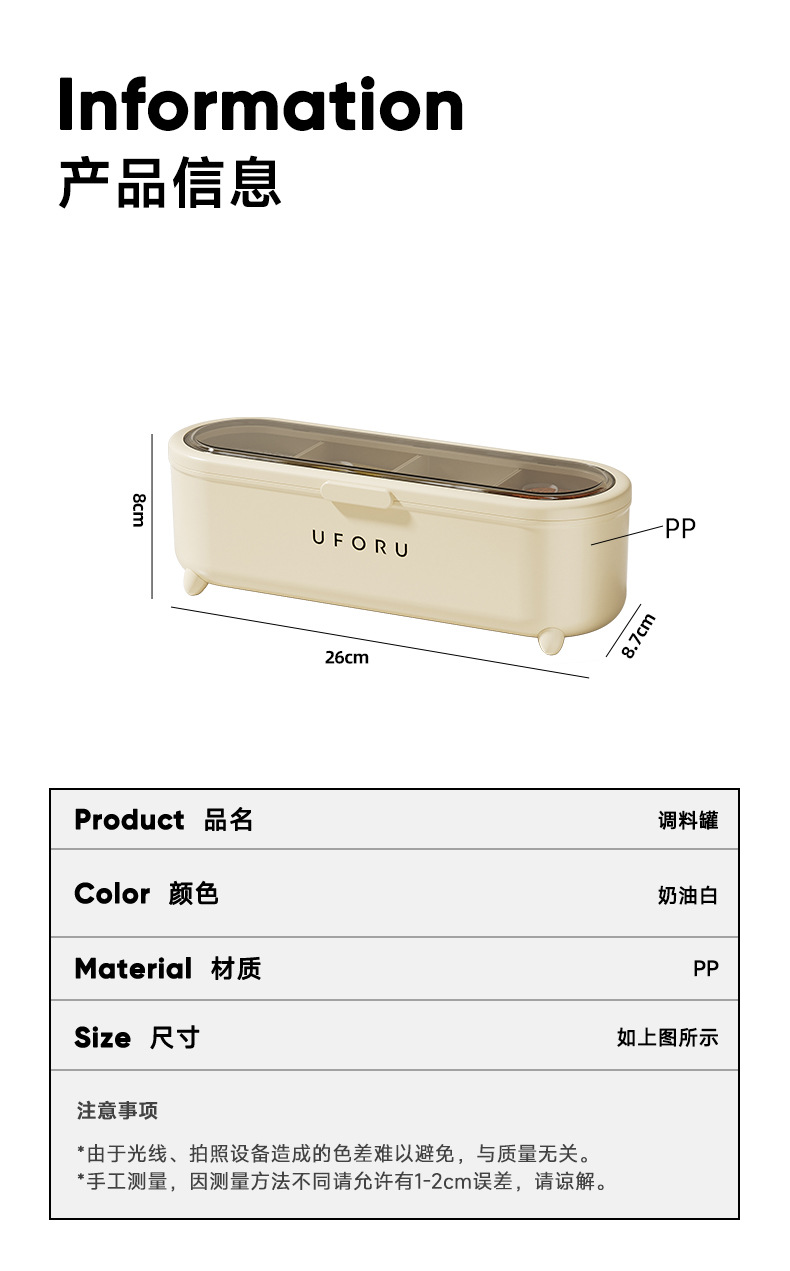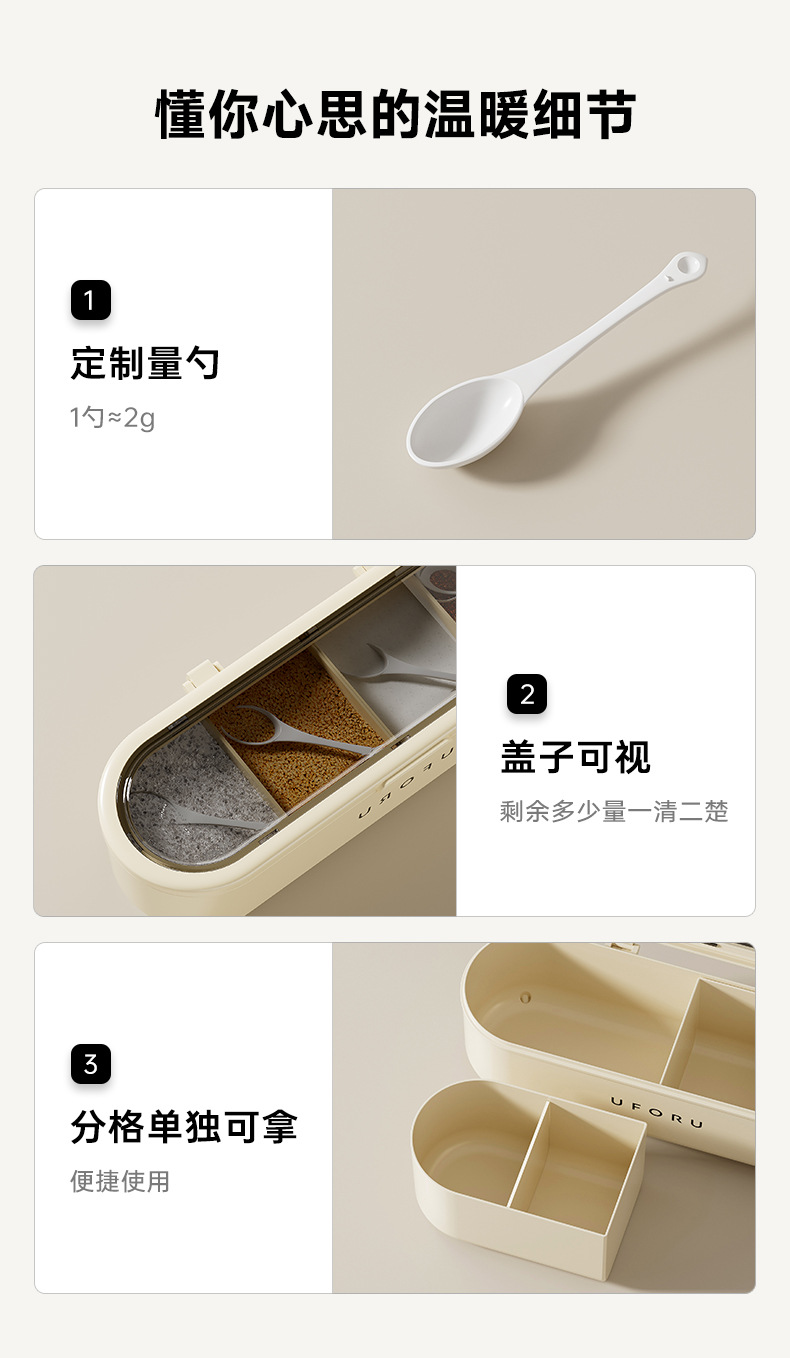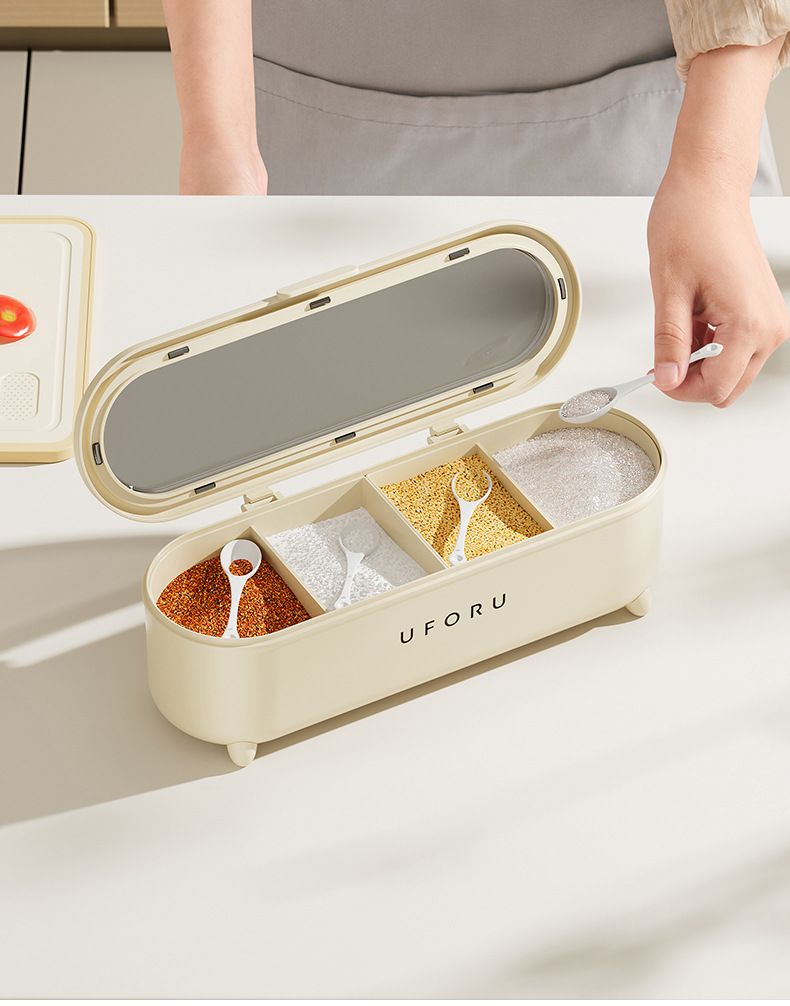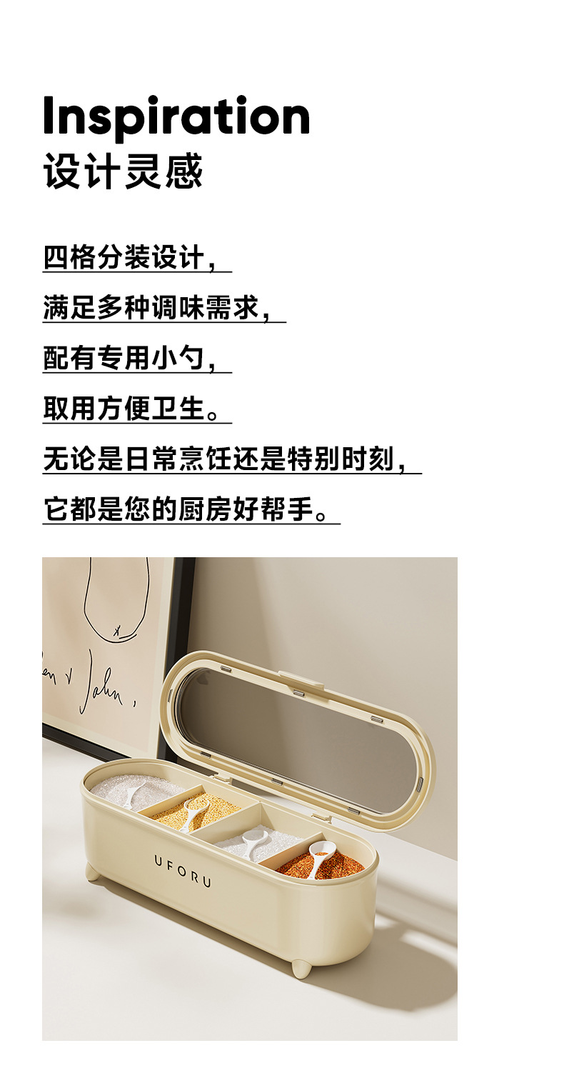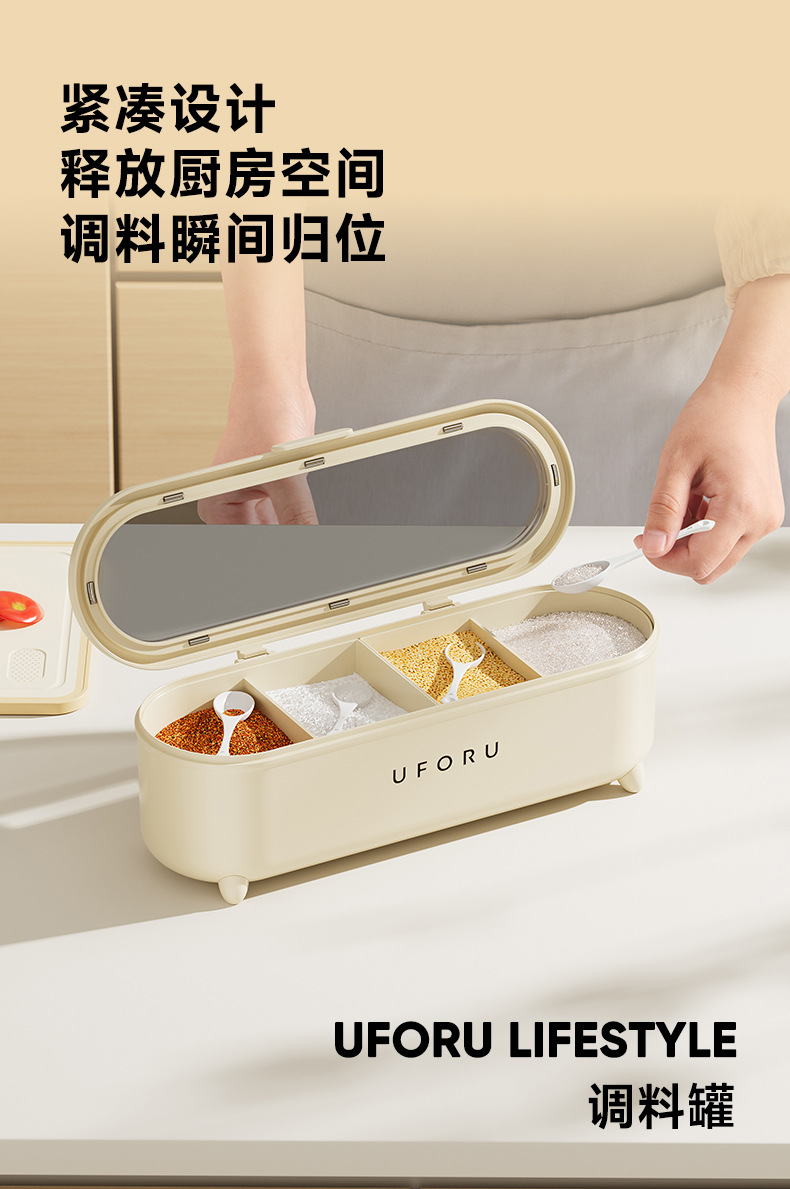 【大容量!易清洗】调料盒厨房家用一体多格调味盒带勺子食品级盐味精调料收纳盒防潮。xb