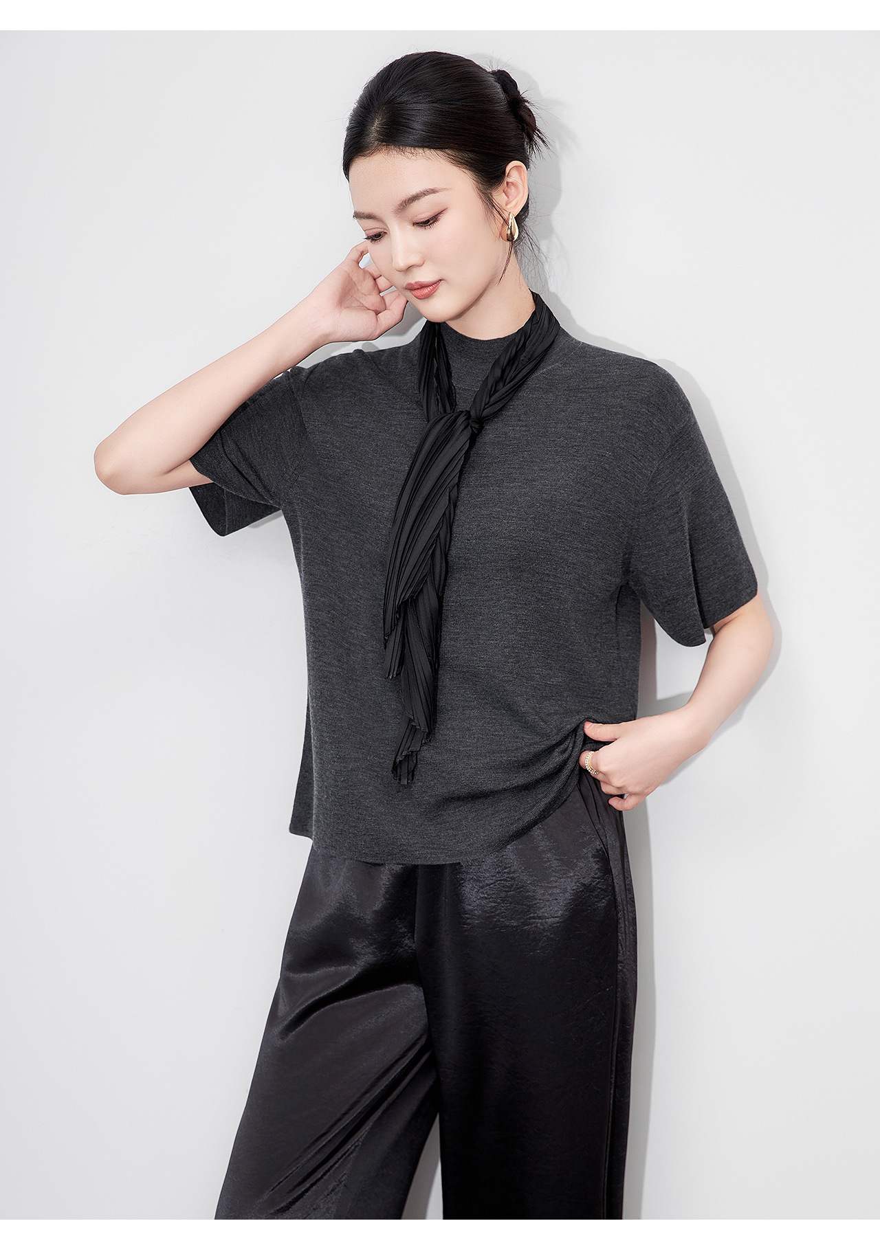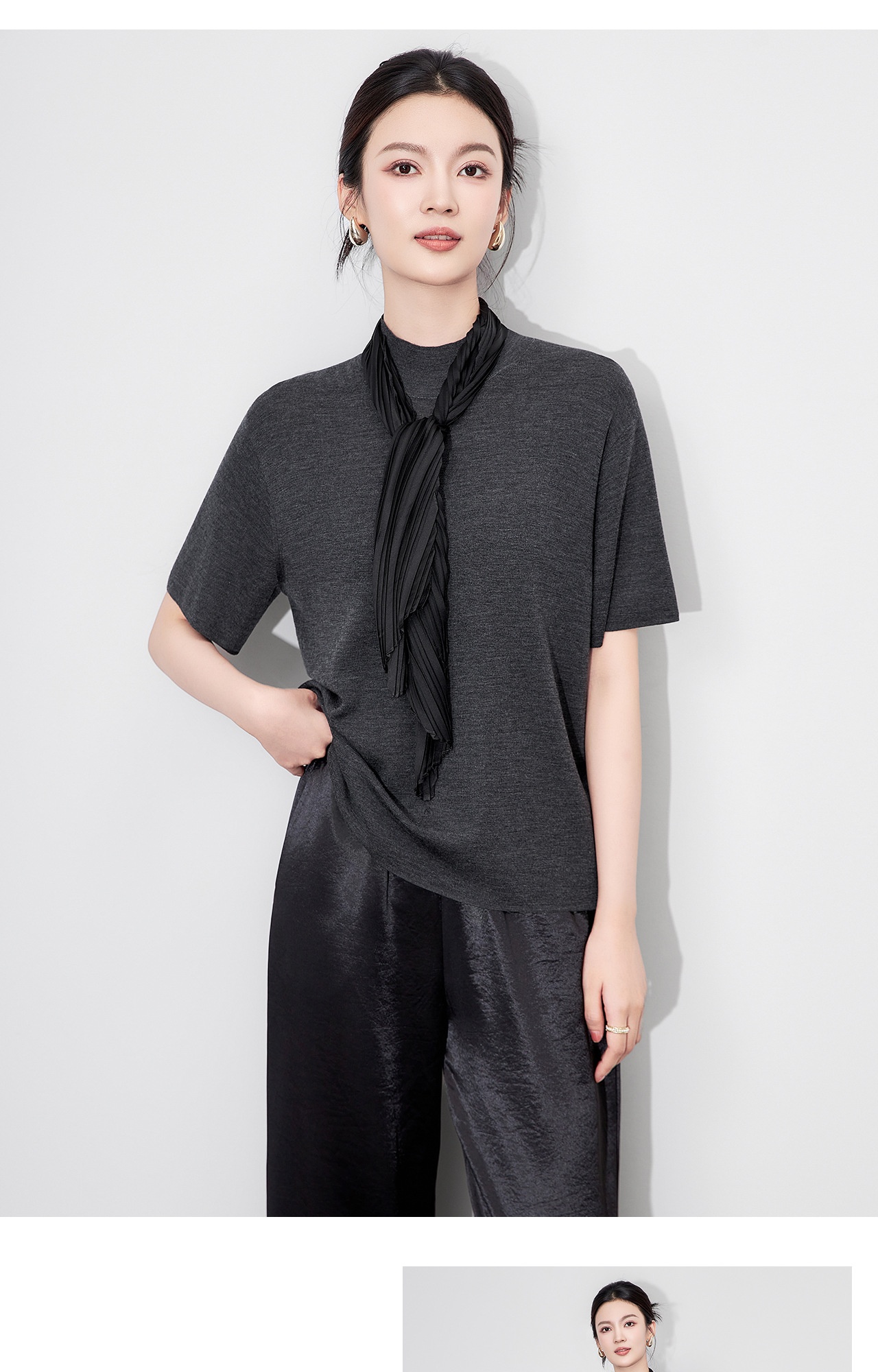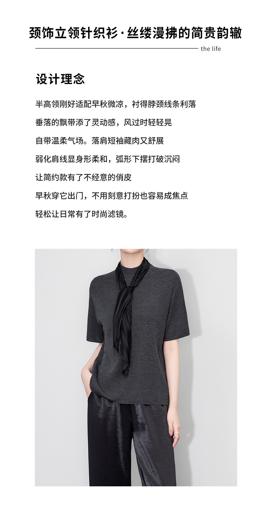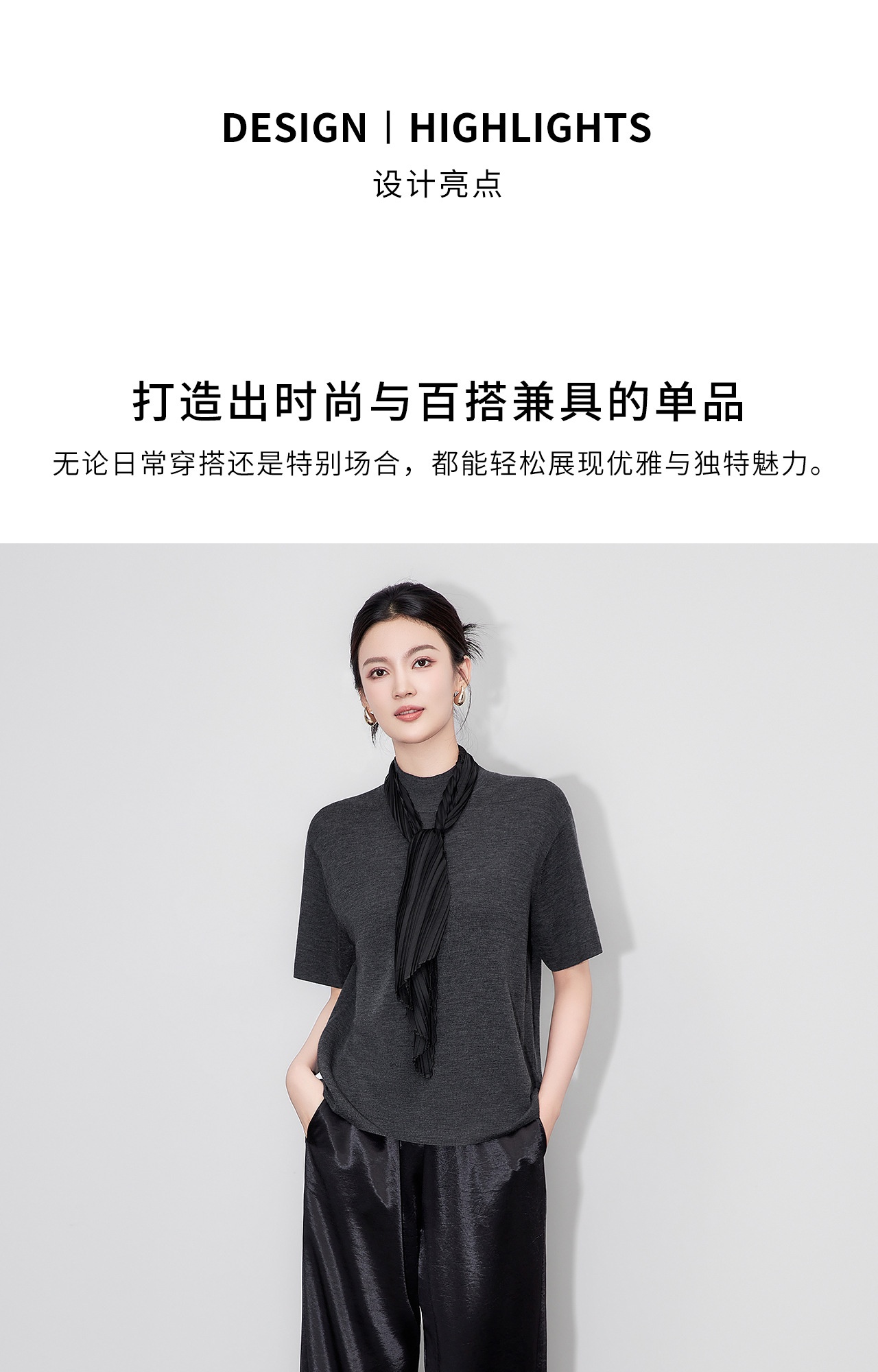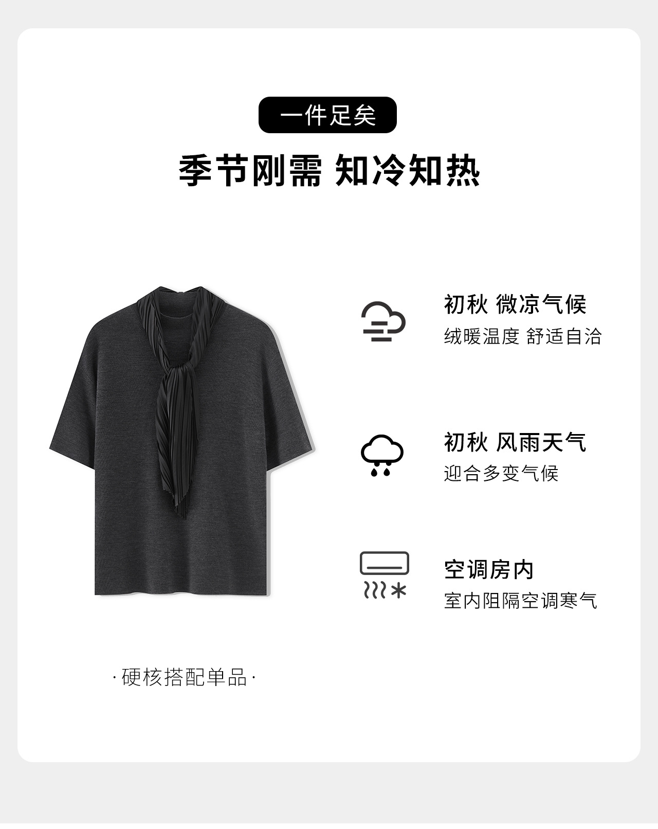 「高货wl」全新升级【铂金会员293/天猫399/差价106】(02455)洛诗琳美丽诺羊毛针织衫2025秋季气质压褶围巾针织短袖