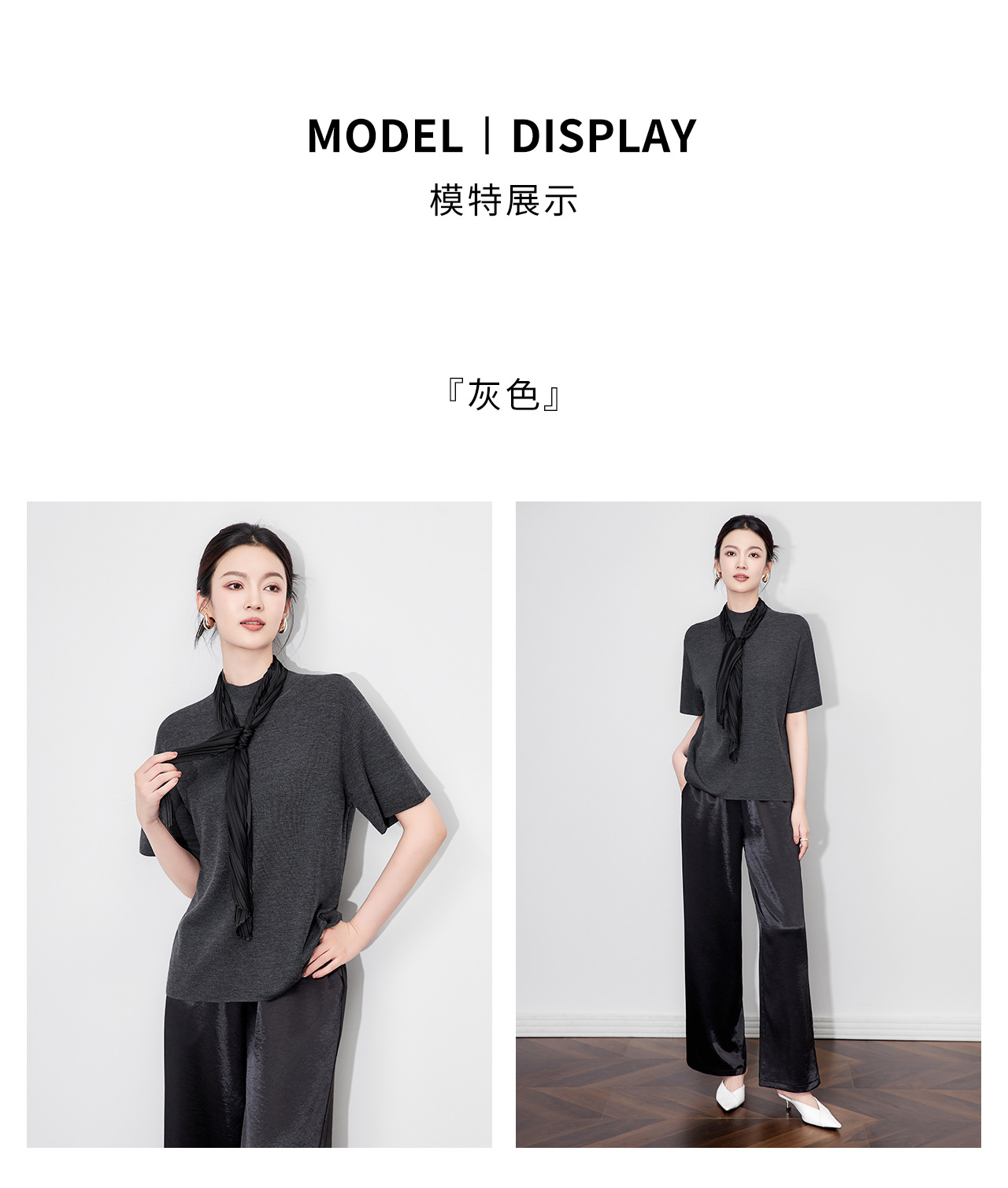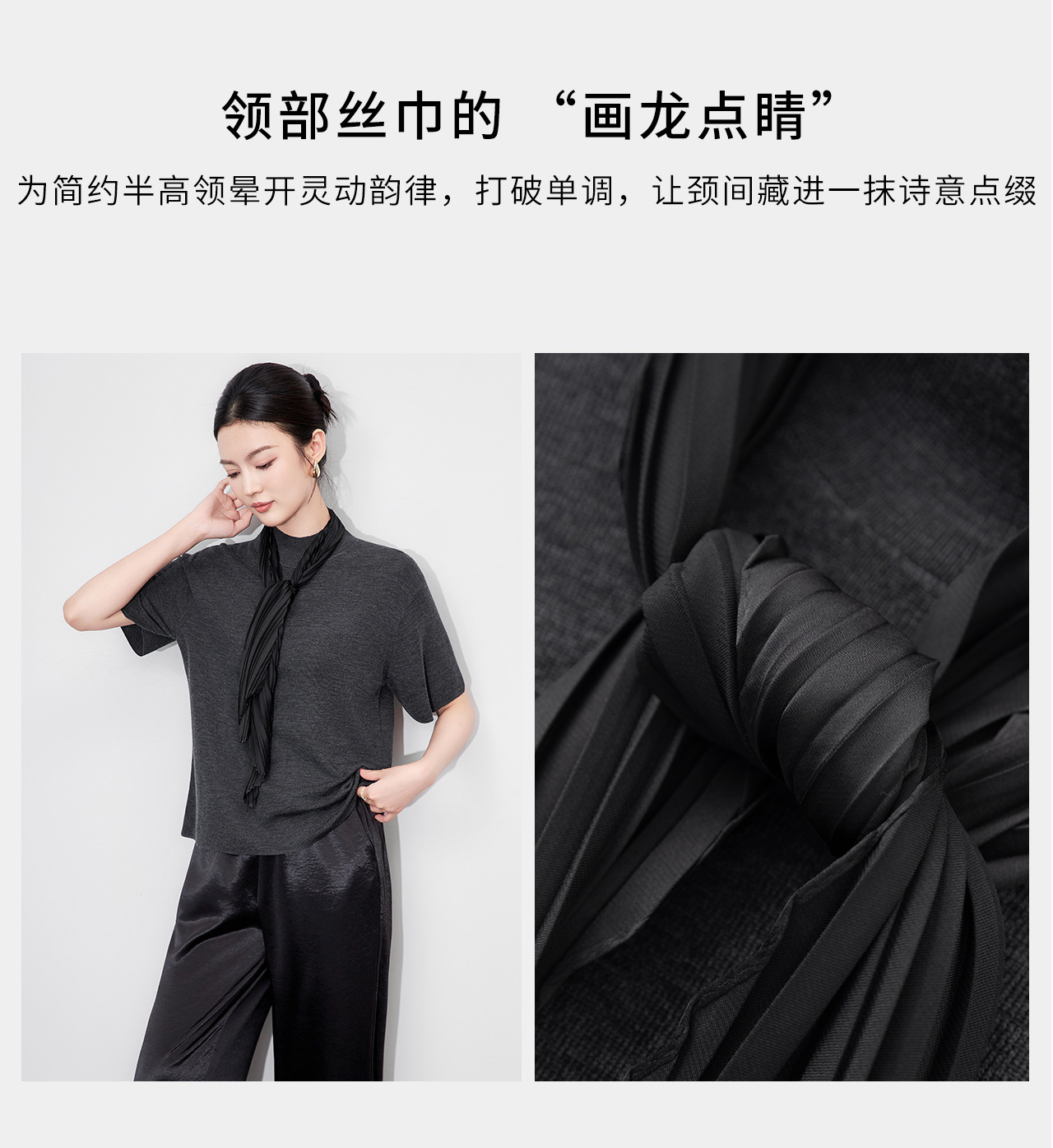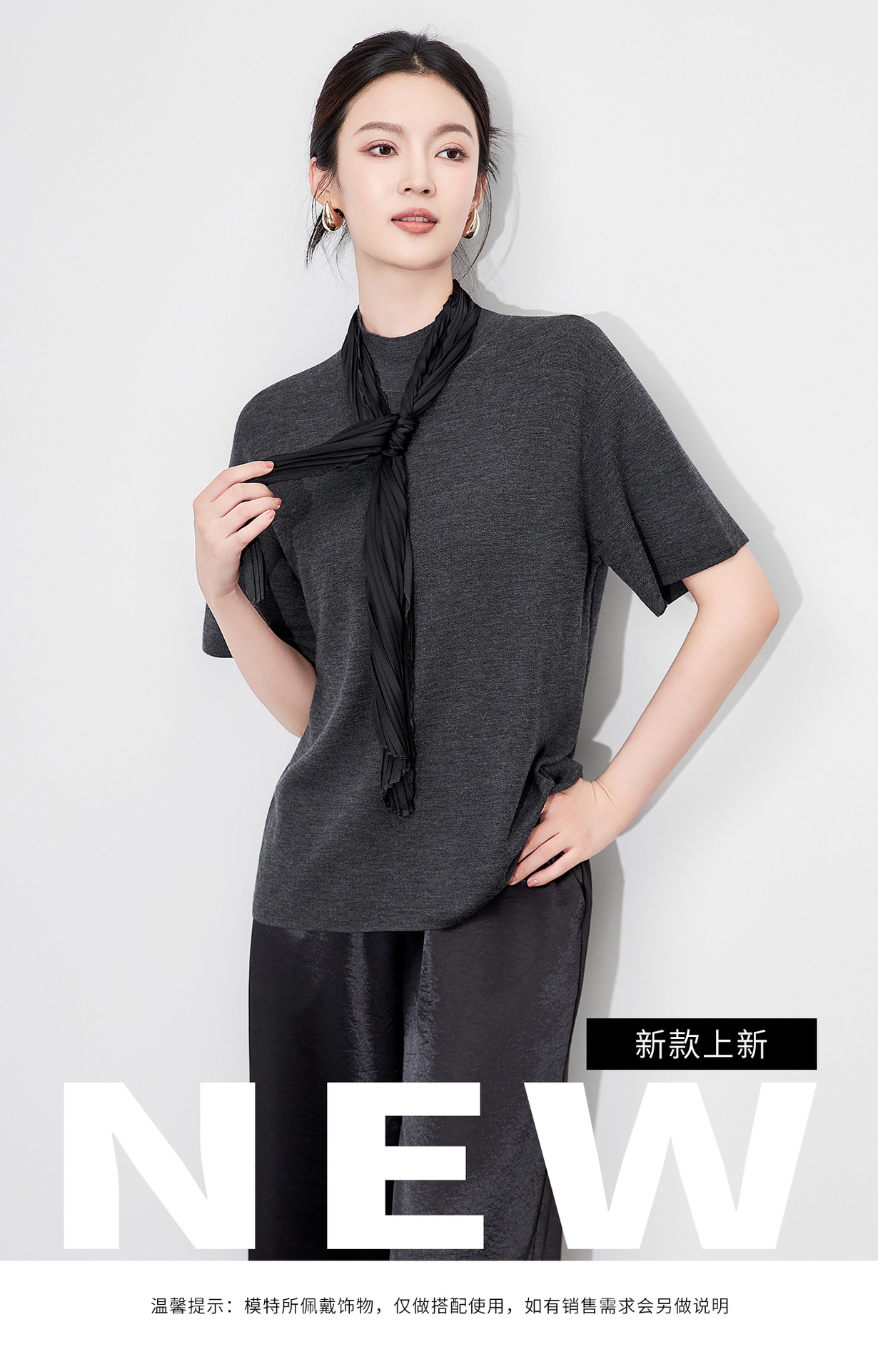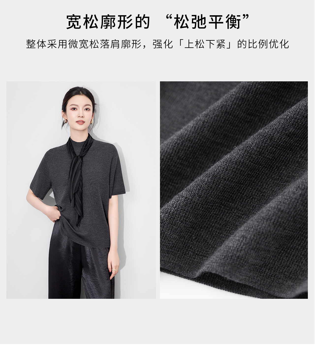 「高货wl」全新升级【铂金会员293/天猫399/差价106】(02455)洛诗琳美丽诺羊毛针织衫2025秋季气质压褶围巾针织短袖