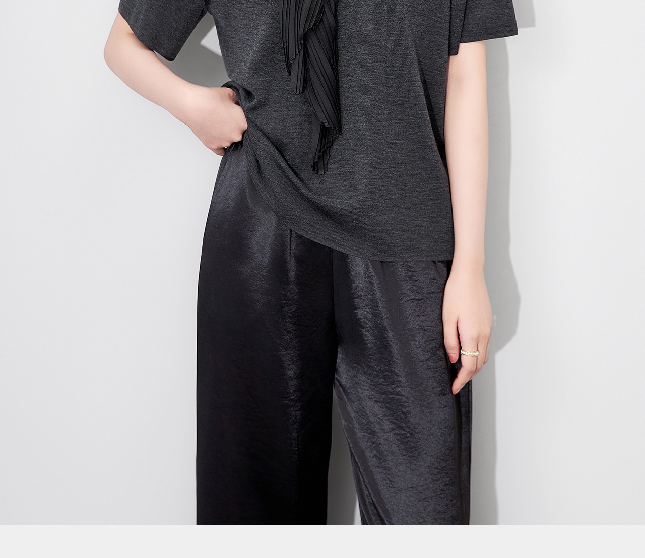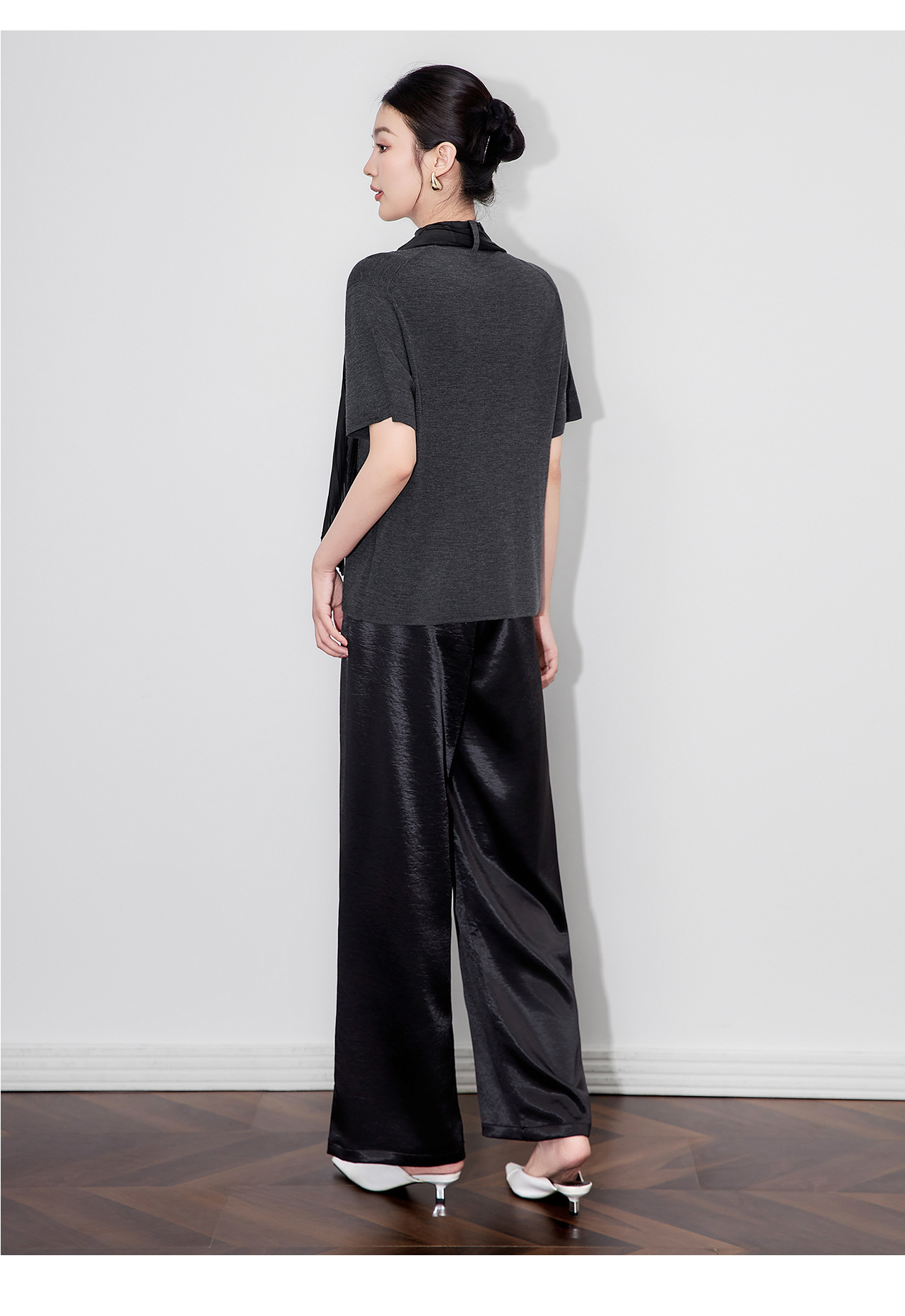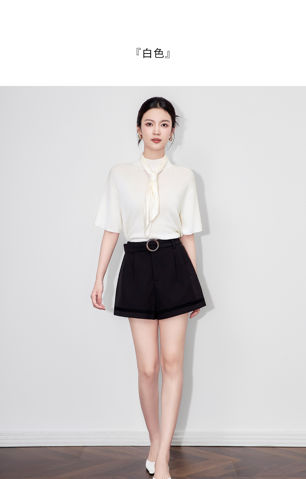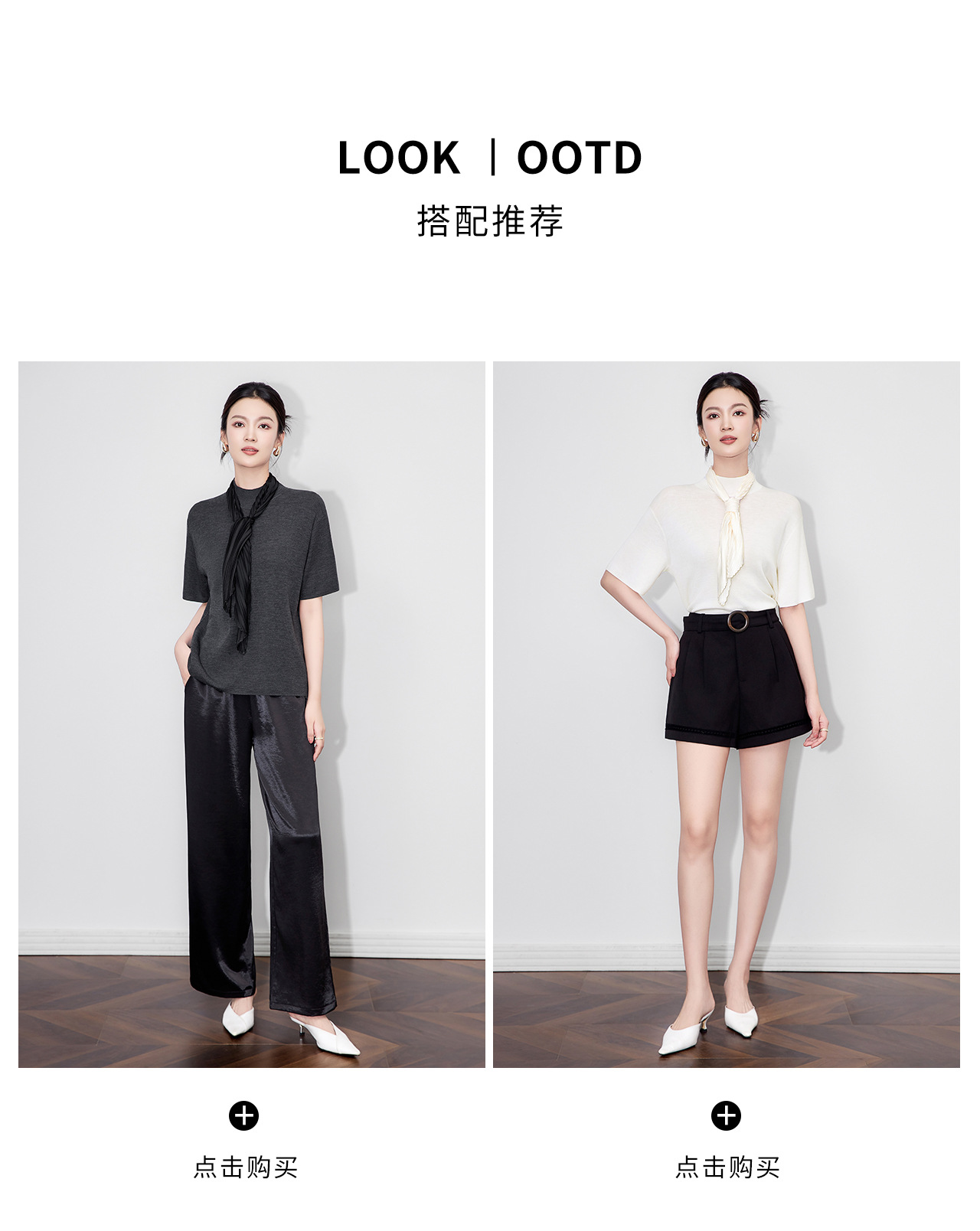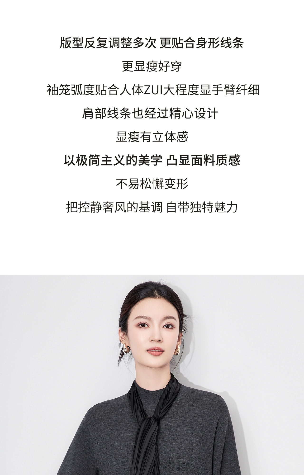 「高货wl」全新升级【铂金会员293/天猫399/差价106】(02455)洛诗琳美丽诺羊毛针织衫2025秋季气质压褶围巾针织短袖
