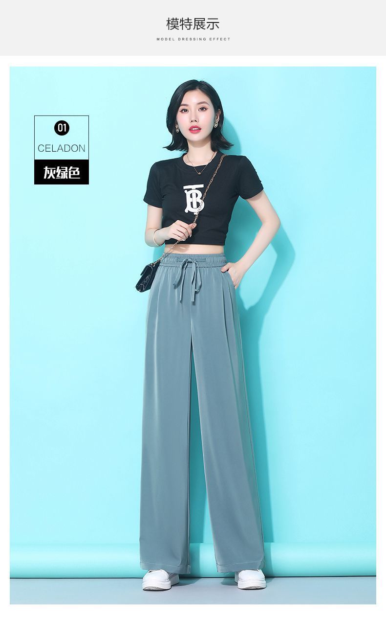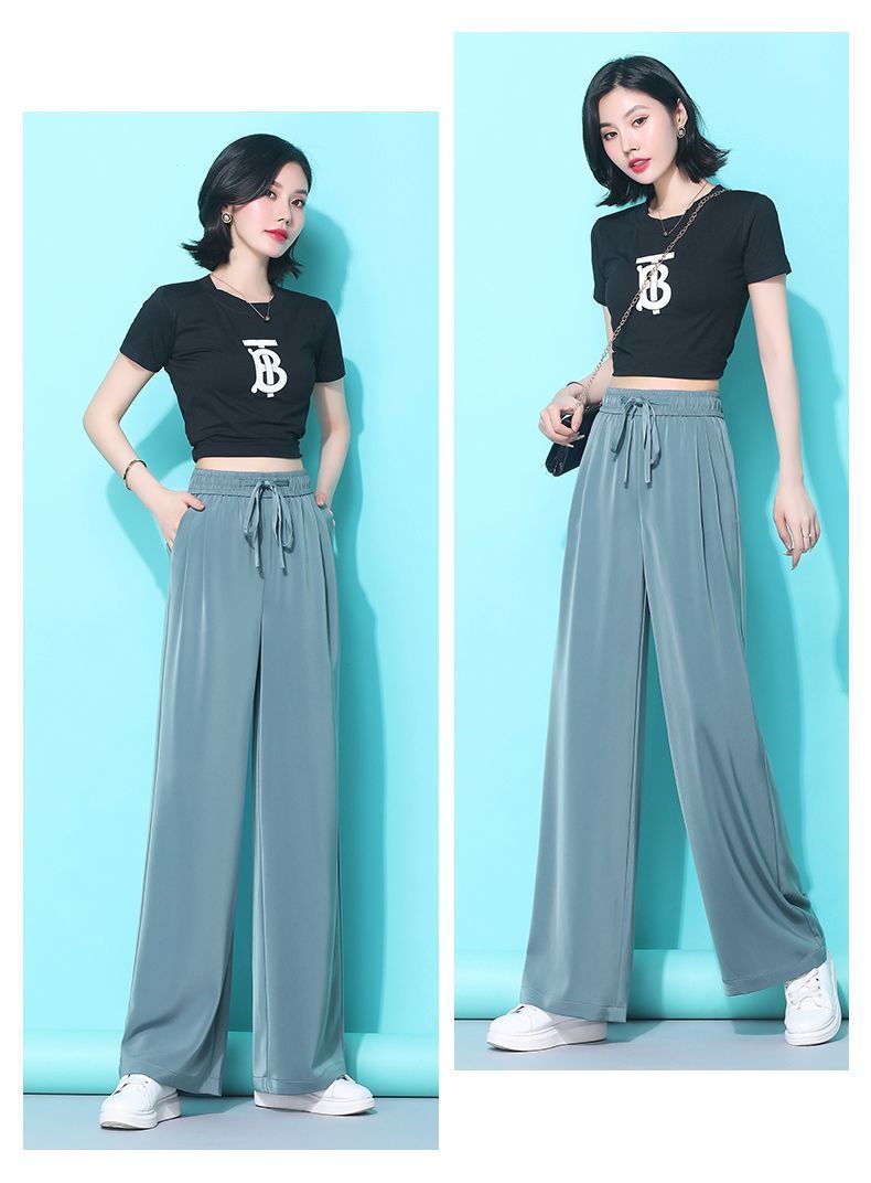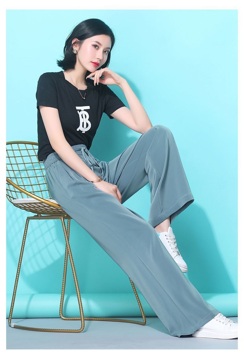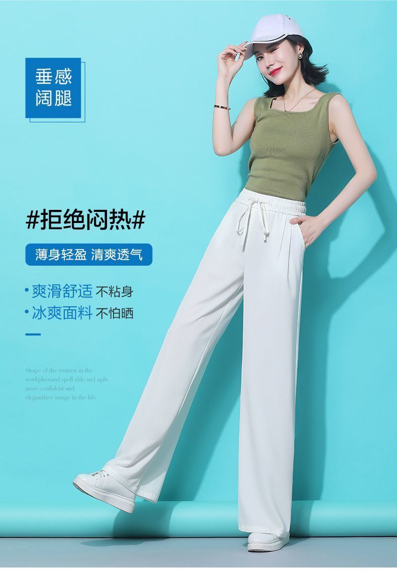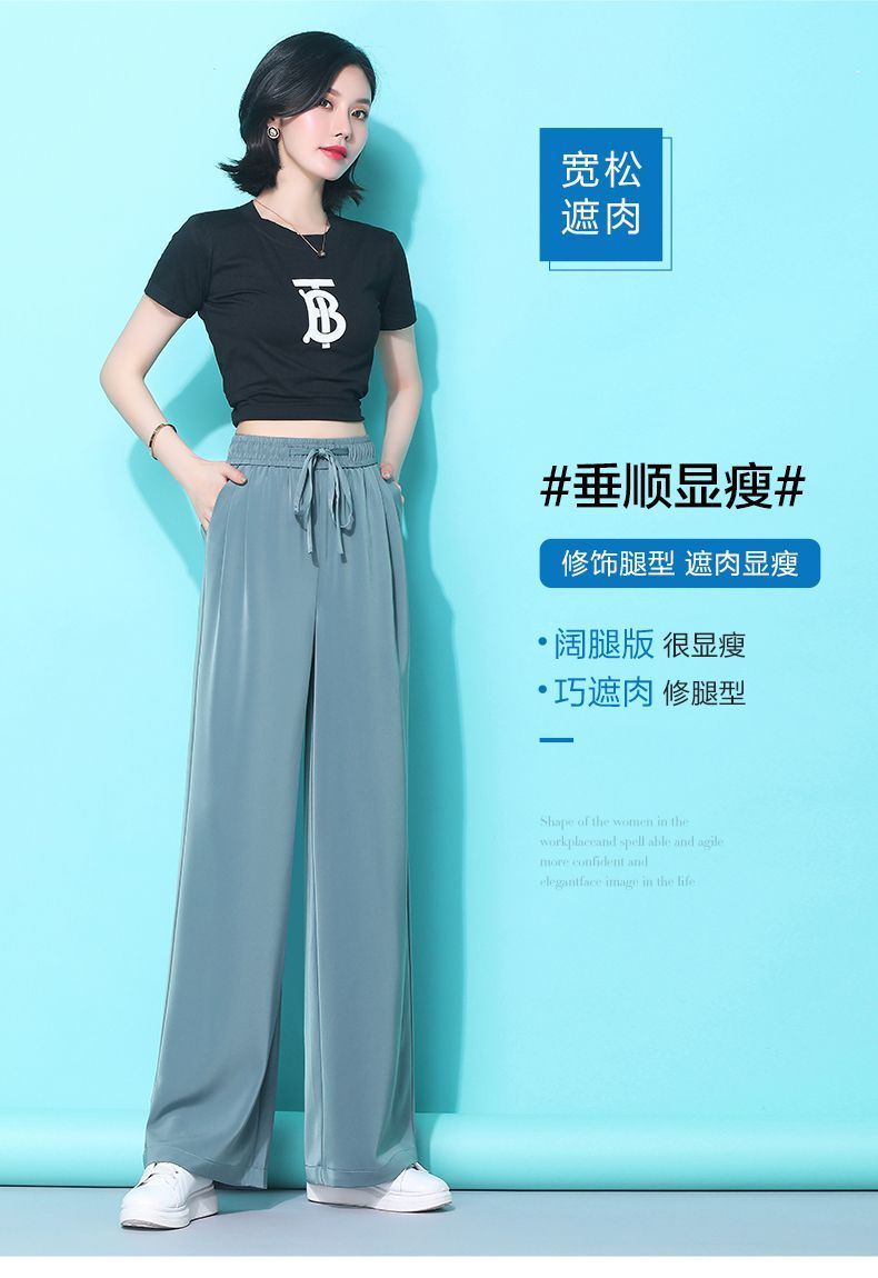 DD-冰丝阔腿裤女2023夏季高腰云朵裤长裤醋酸宽松休闲裤直筒女裤子