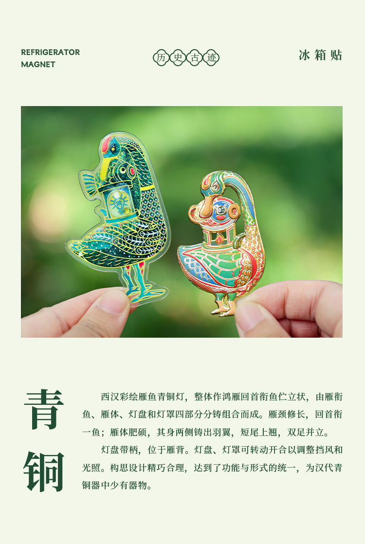 【雁鱼青铜灯】夜光发光AR金属冰箱贴西汉西安博物馆磁吸创意冰箱磁贴