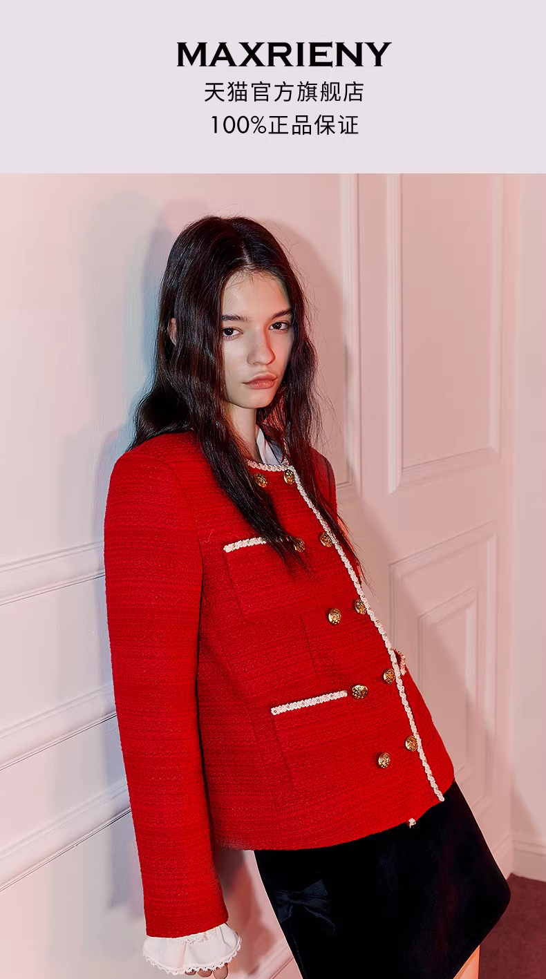玛克门店发货:MAXRIENY波尔多红箱型小香风外套货号:MS86JA766
