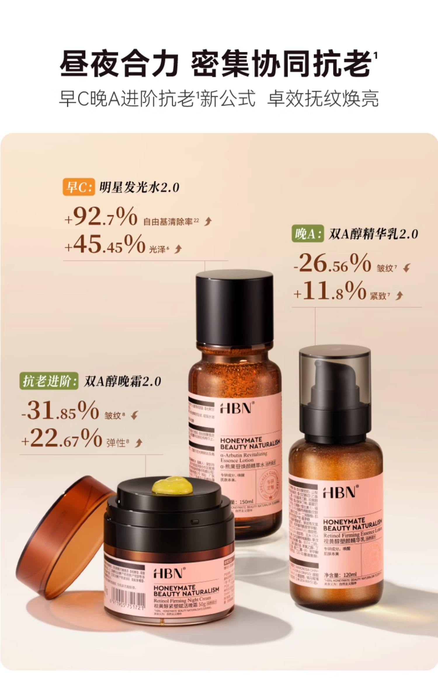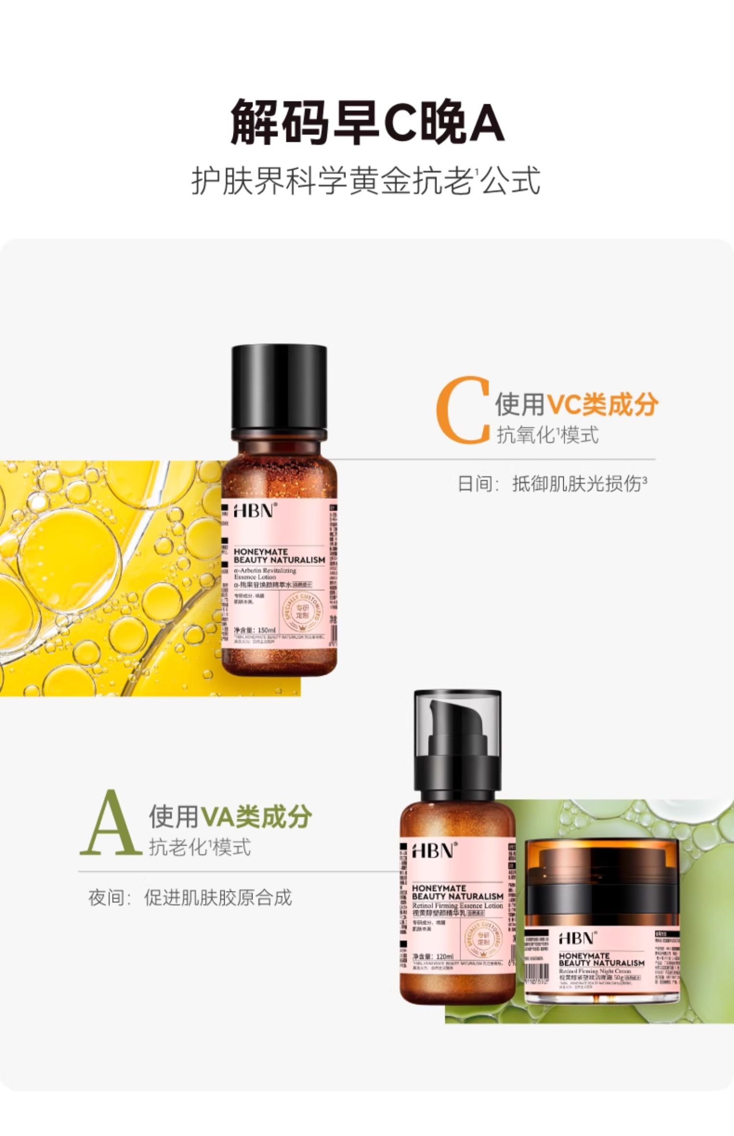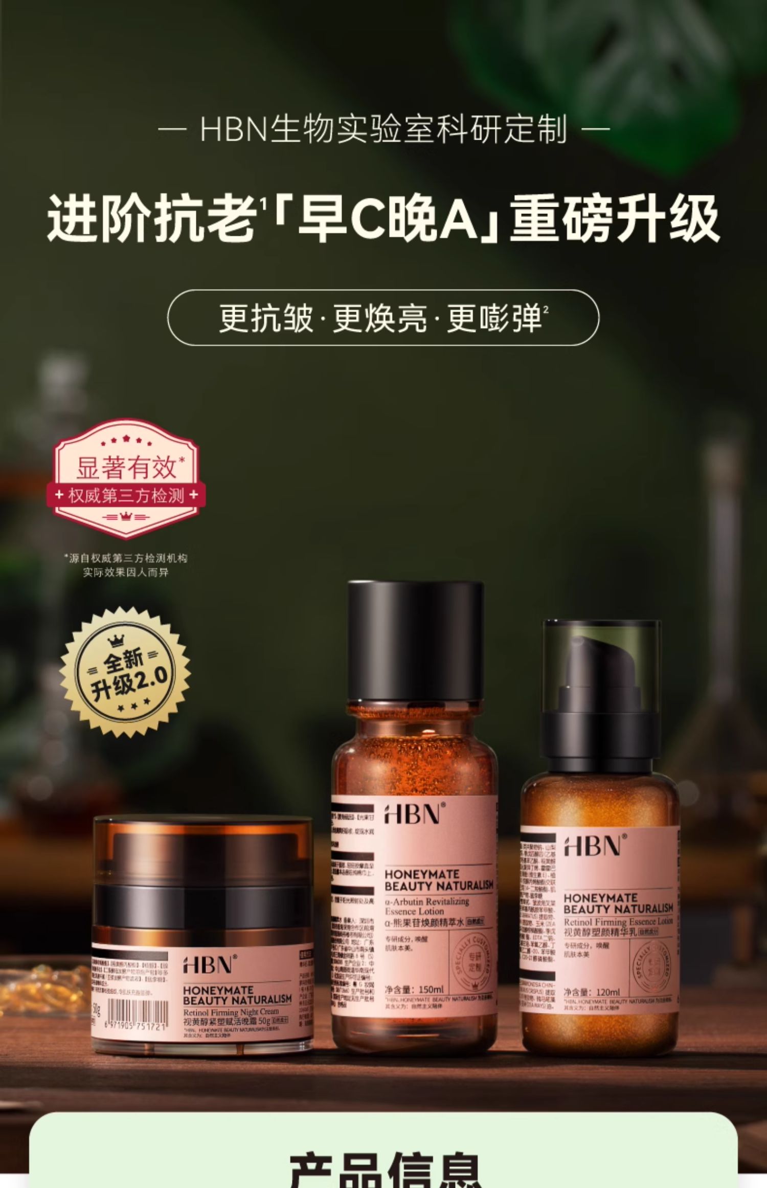 【品牌直发】HBN早C晚A水乳面霜套装护肤品进阶淡纹紧致抗皱提亮保湿化妆品礼物礼盒生日礼物圣诞礼盒