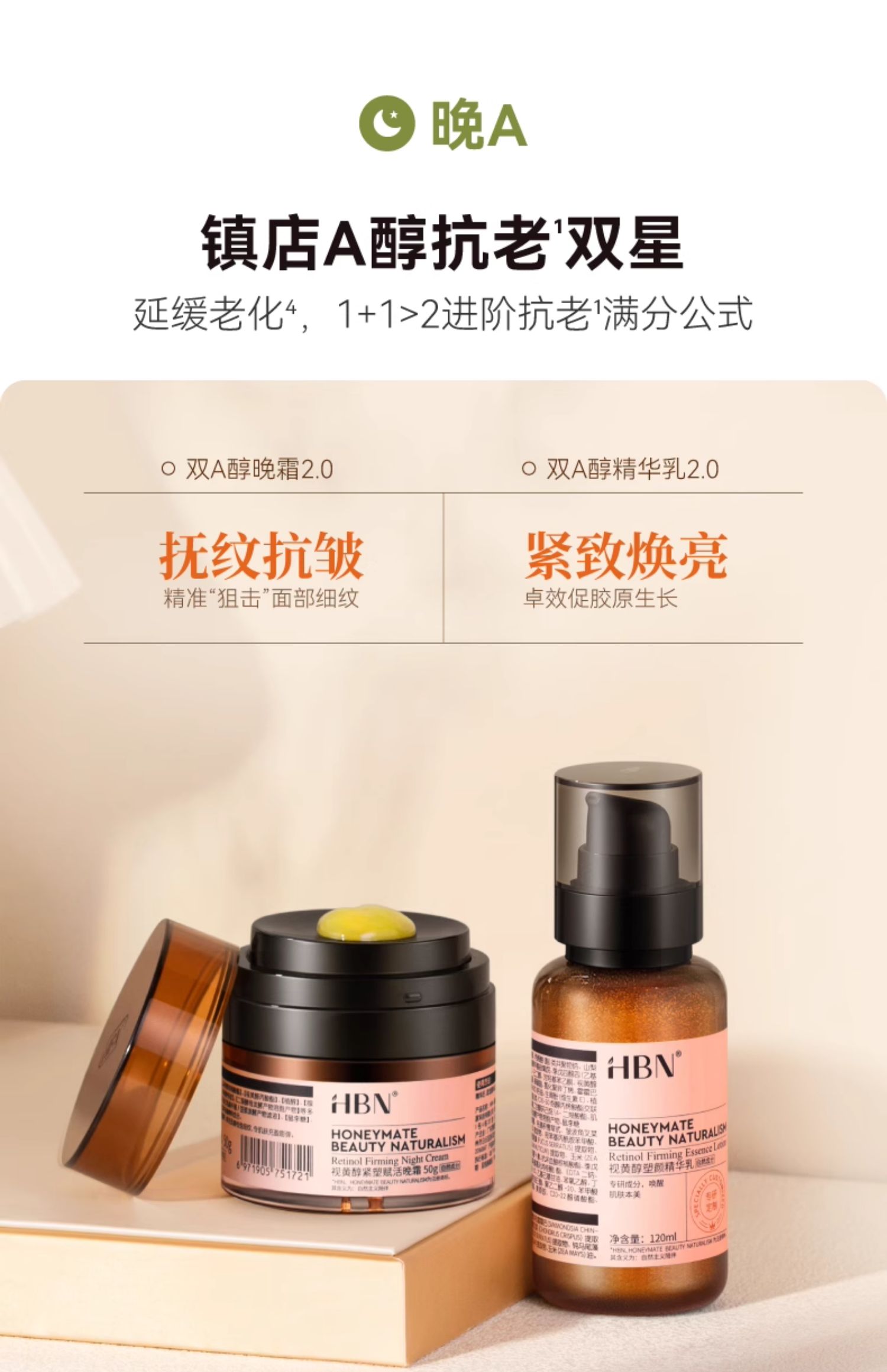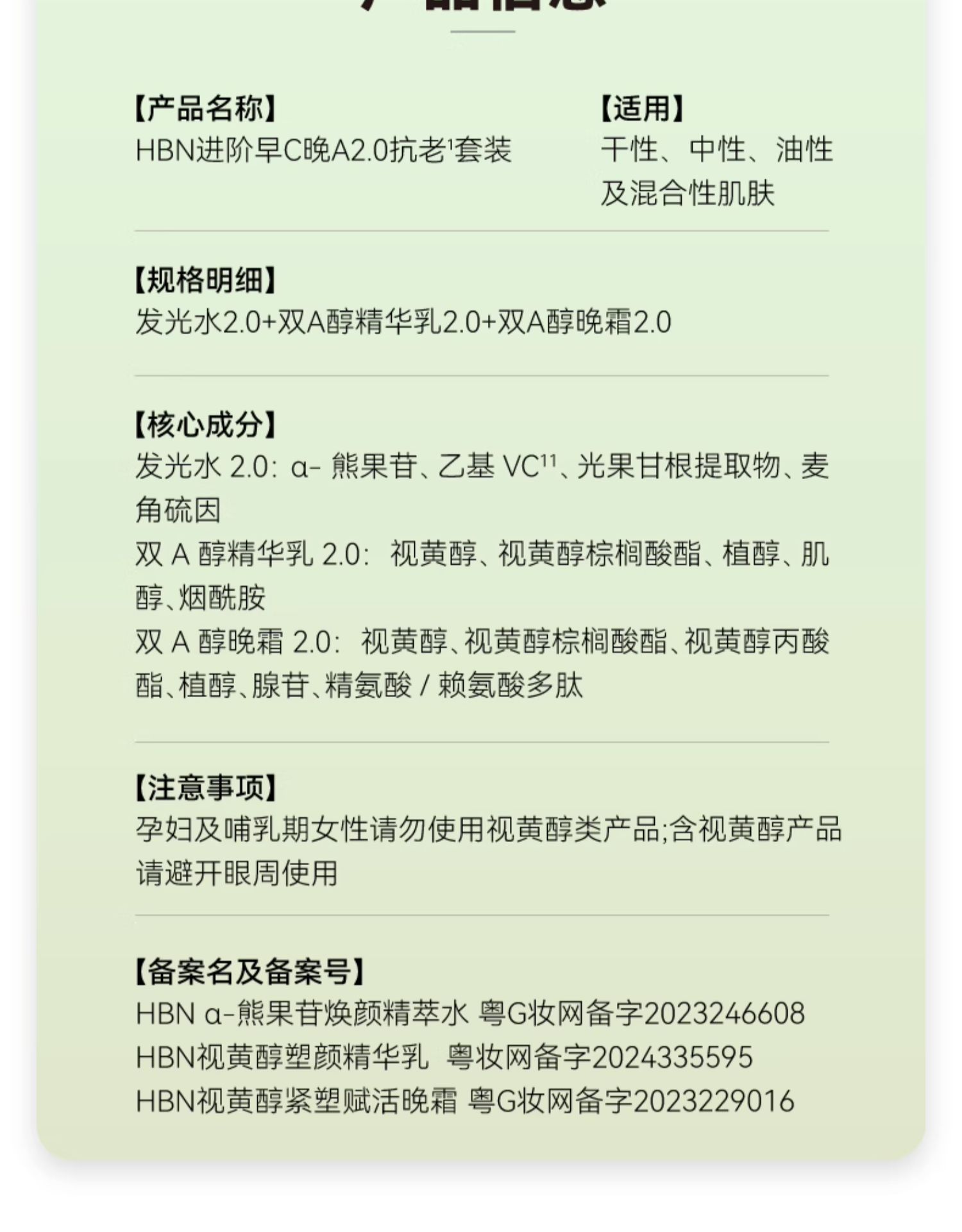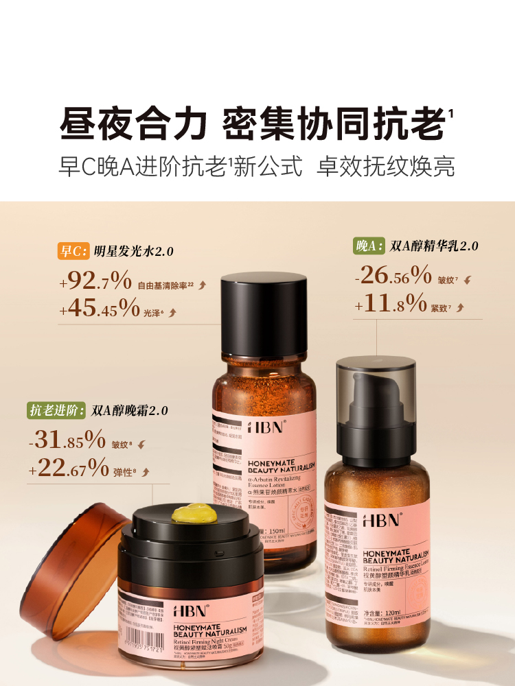 【品牌直发】HBN早C晚A水乳面霜套装护肤品进阶淡纹紧致抗皱提亮保湿化妆品礼物礼盒生日礼物圣诞礼盒