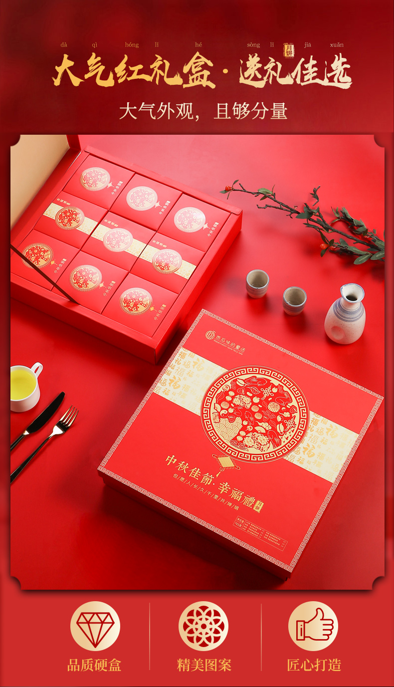 【中秋团圆礼】经典广式月饼·中秋佳节幸福礼9饼7味/765g精装月饼礼盒