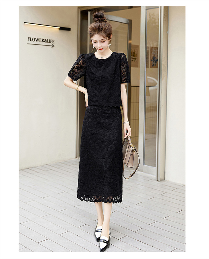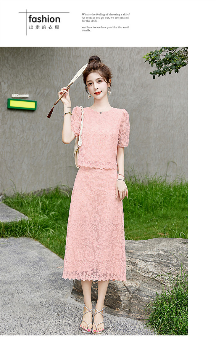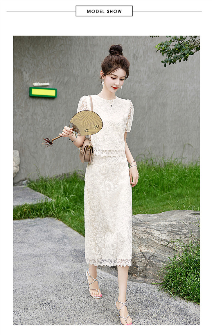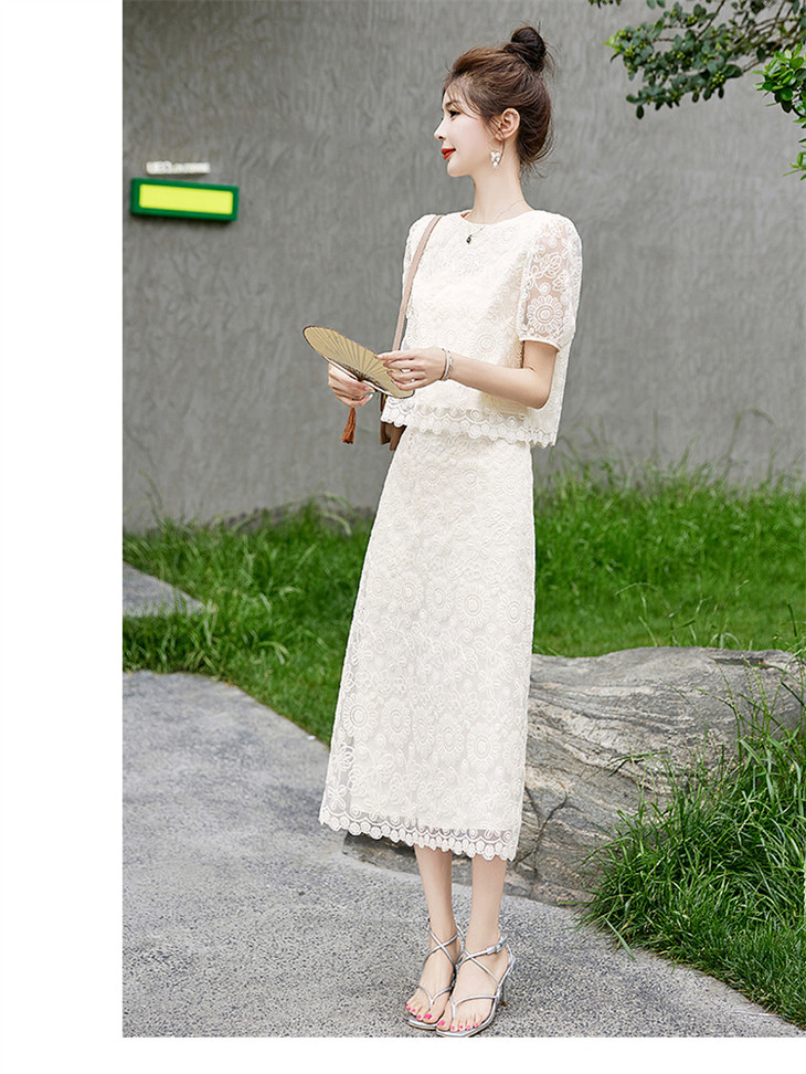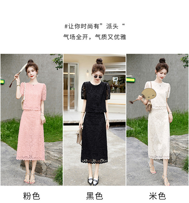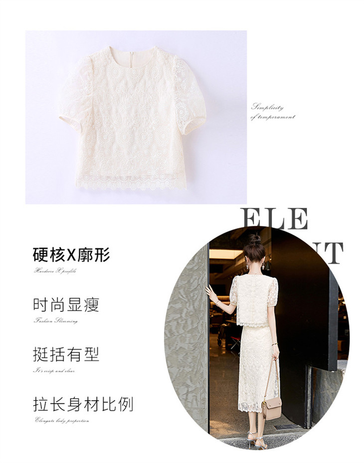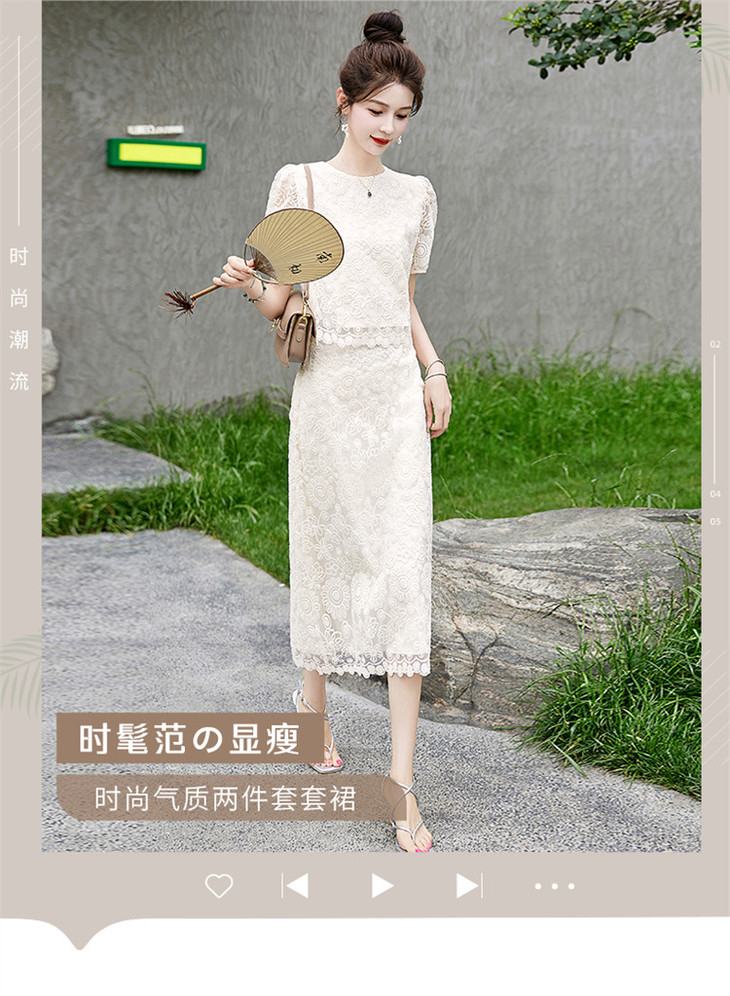 气质名媛风蕾丝套装,显瘦简洁优雅两件套裙GJC2360