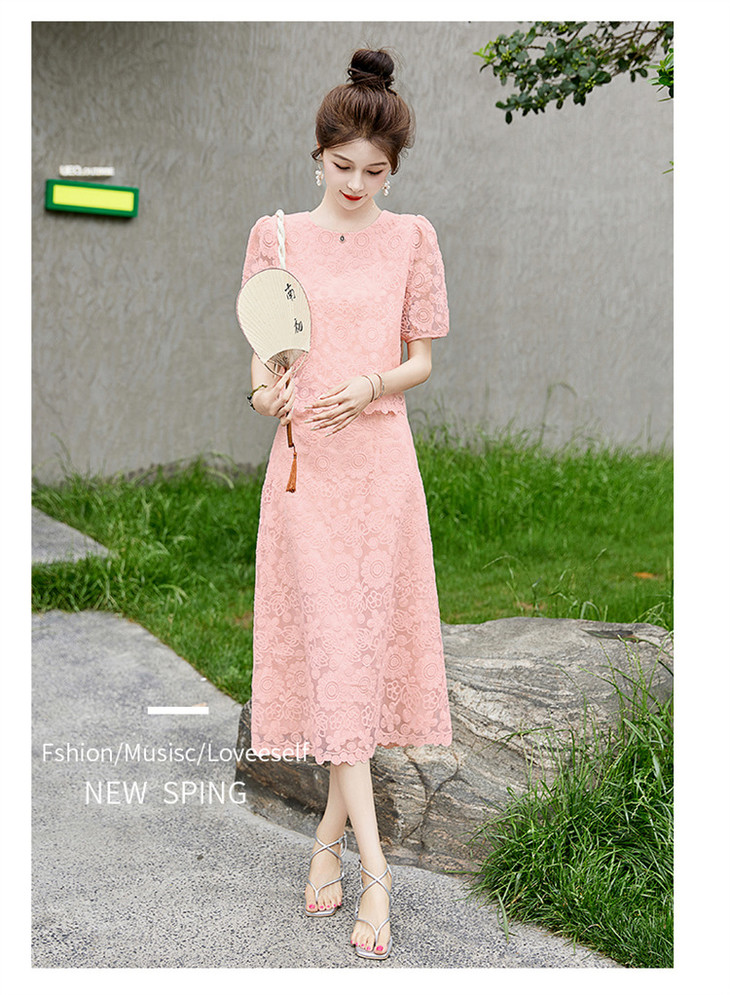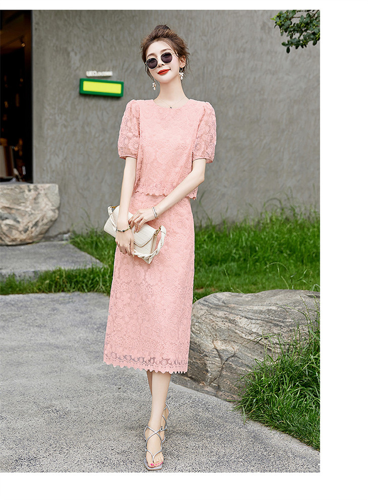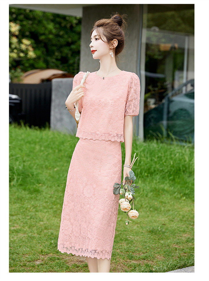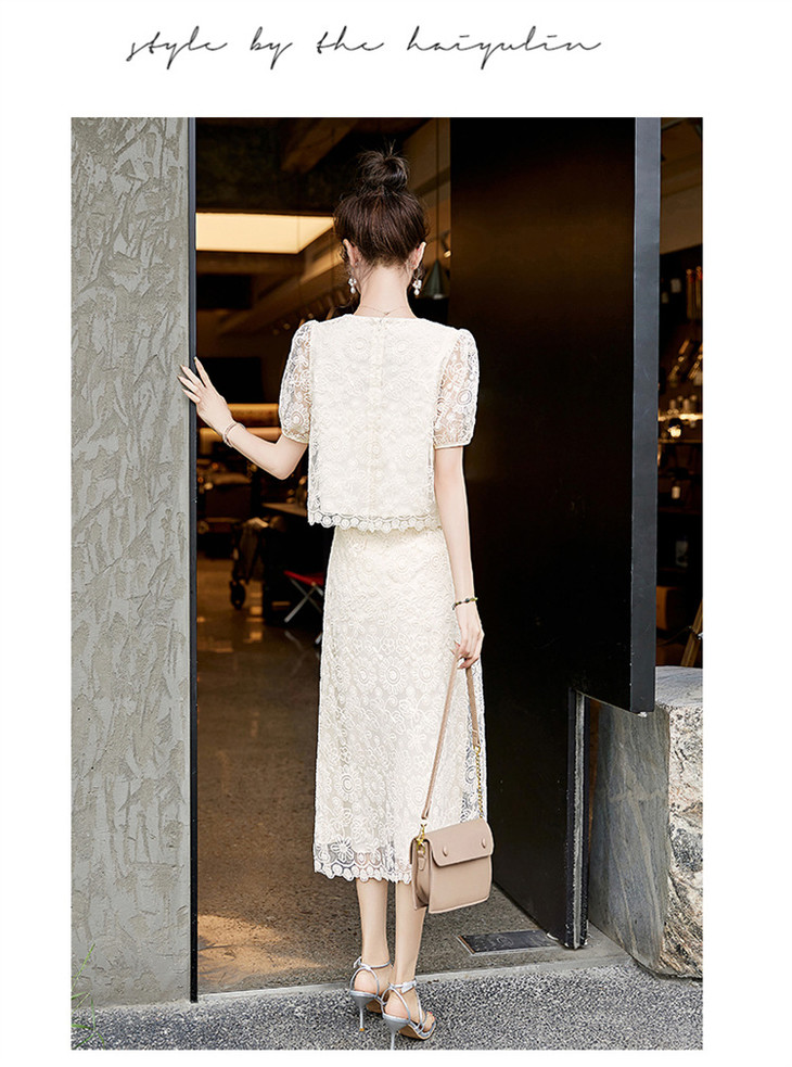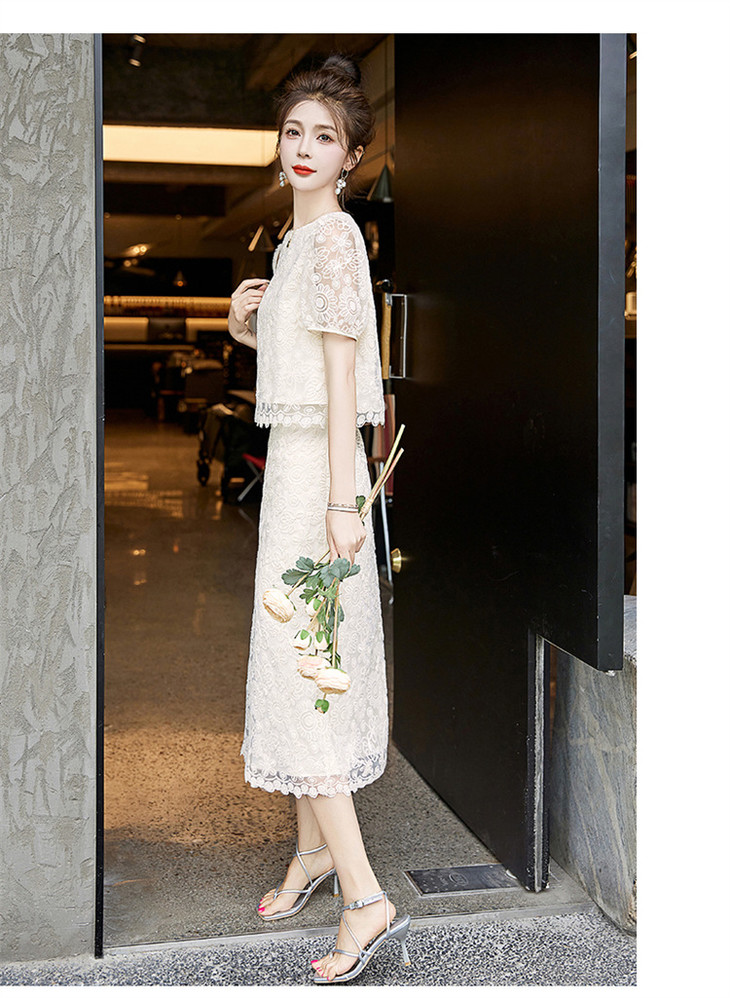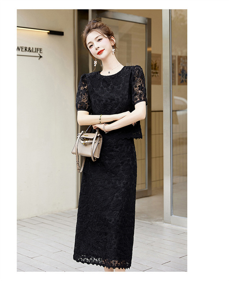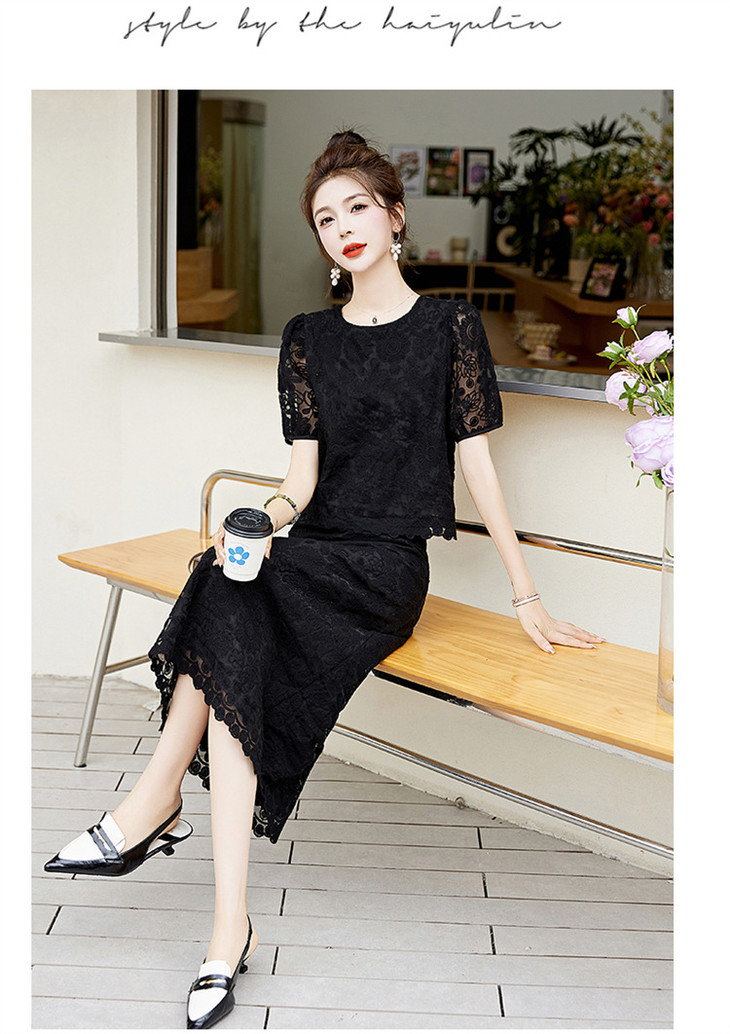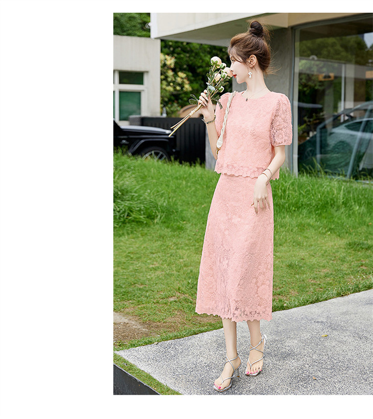 气质名媛风蕾丝套装,显瘦简洁优雅两件套裙GJC2360