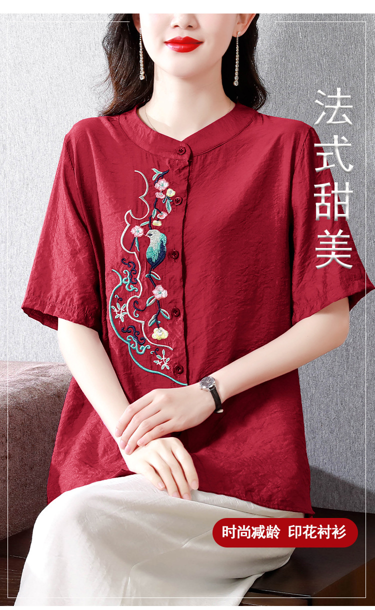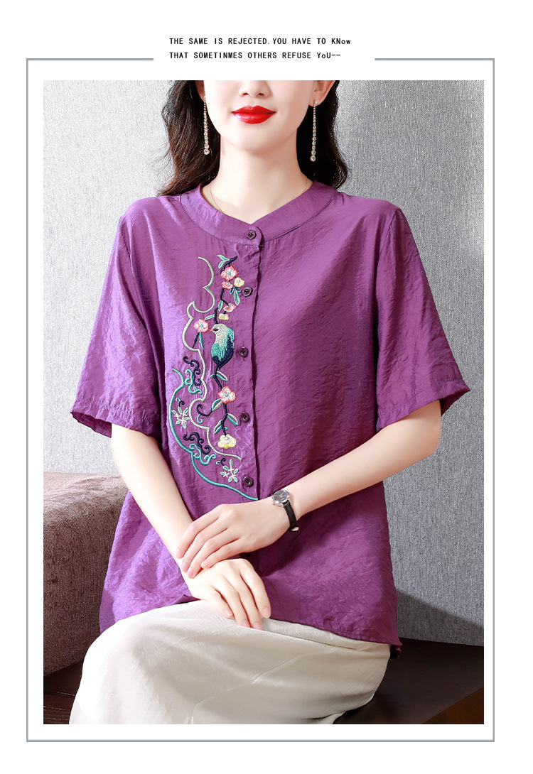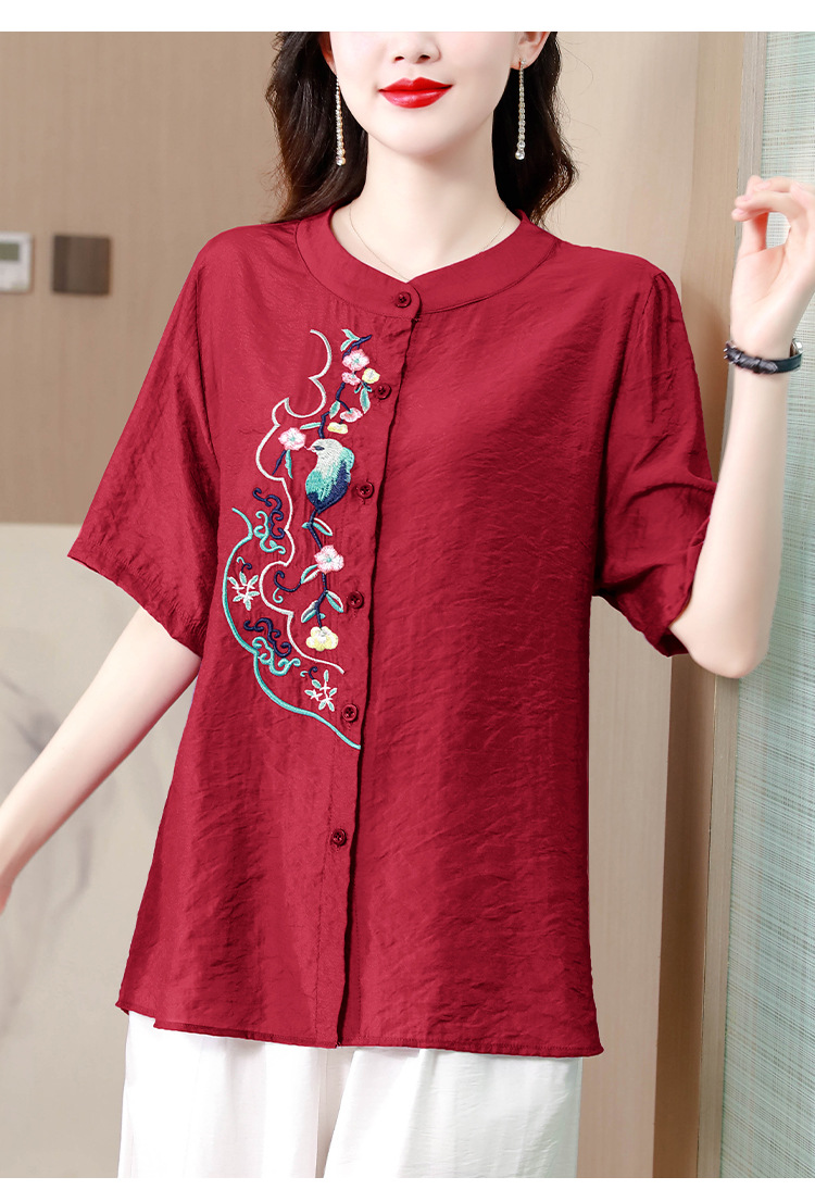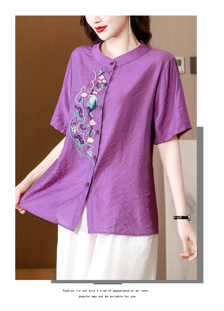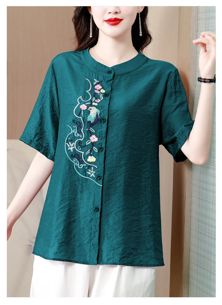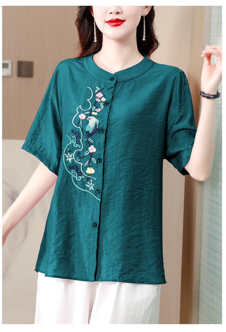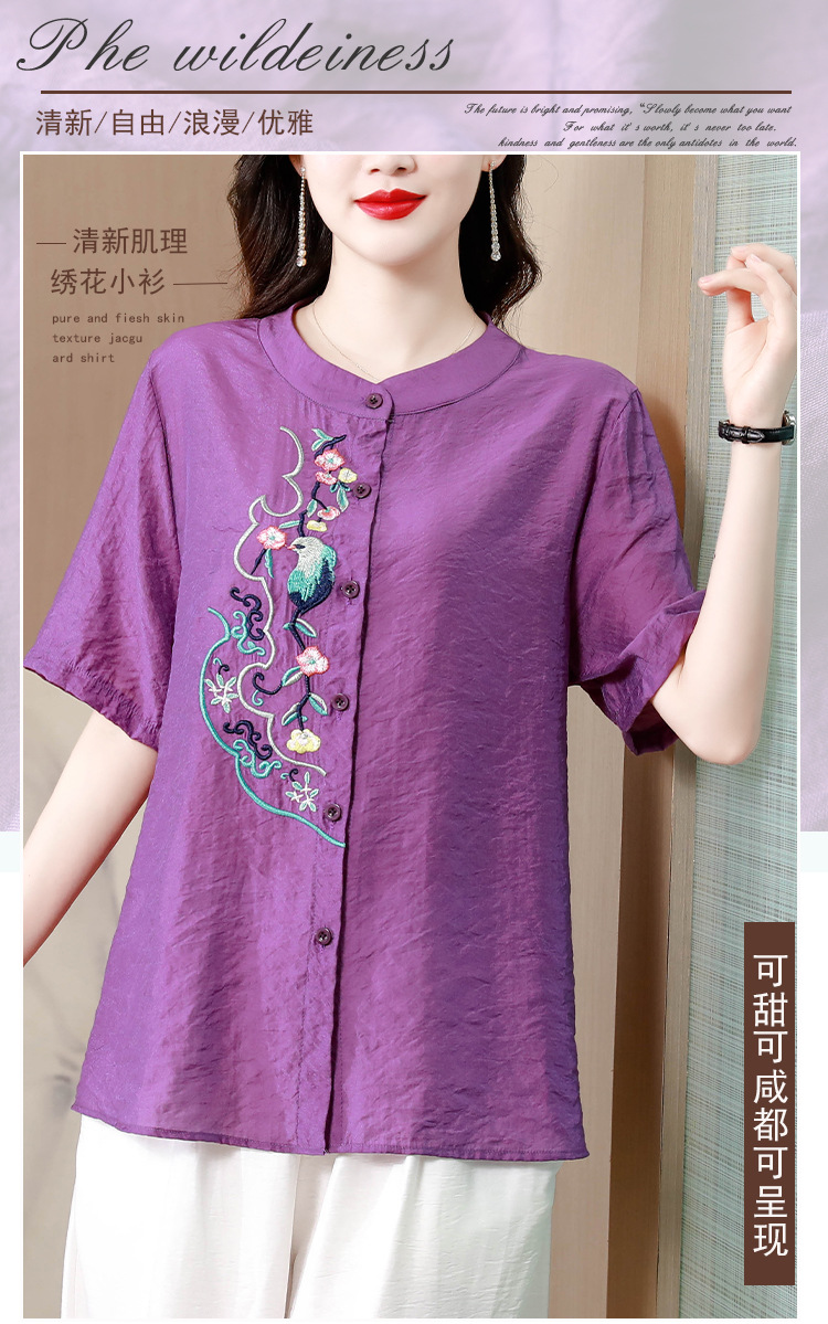 DD-新款五分袖棉麻刺绣宽松大码唐装衬衫衬衣