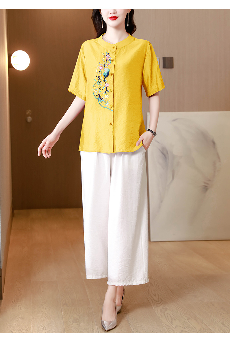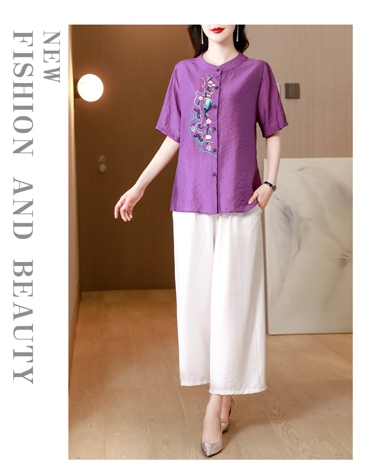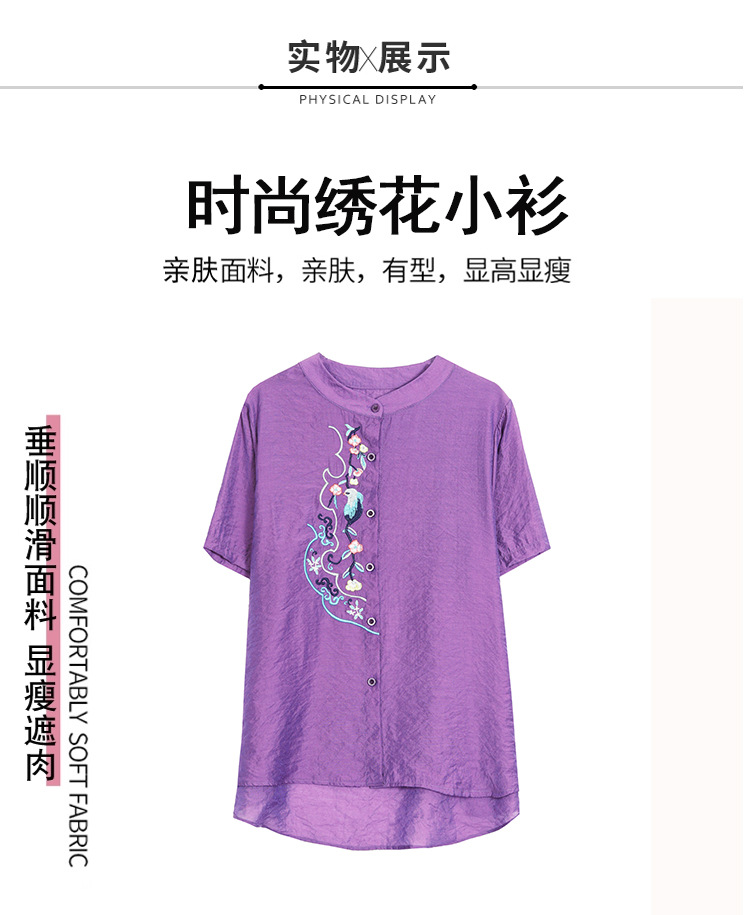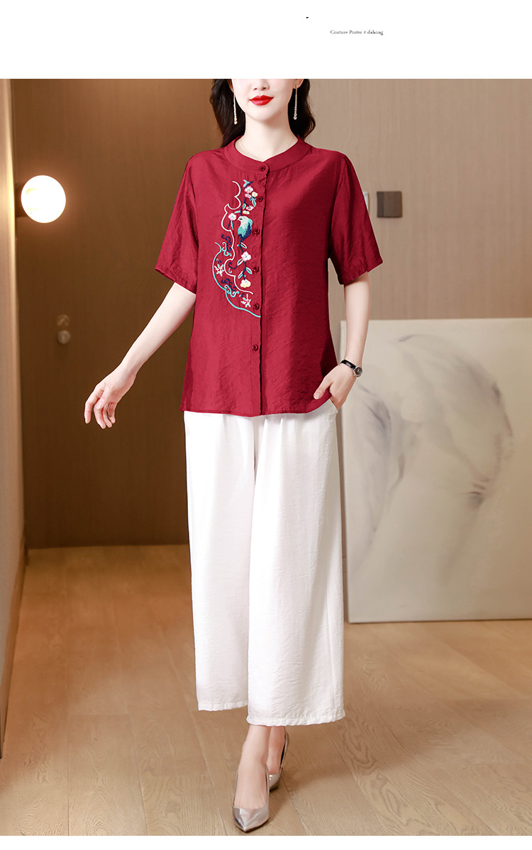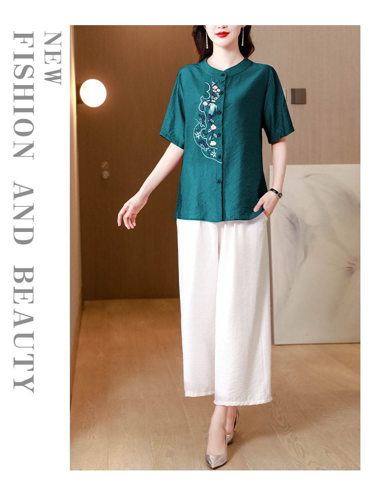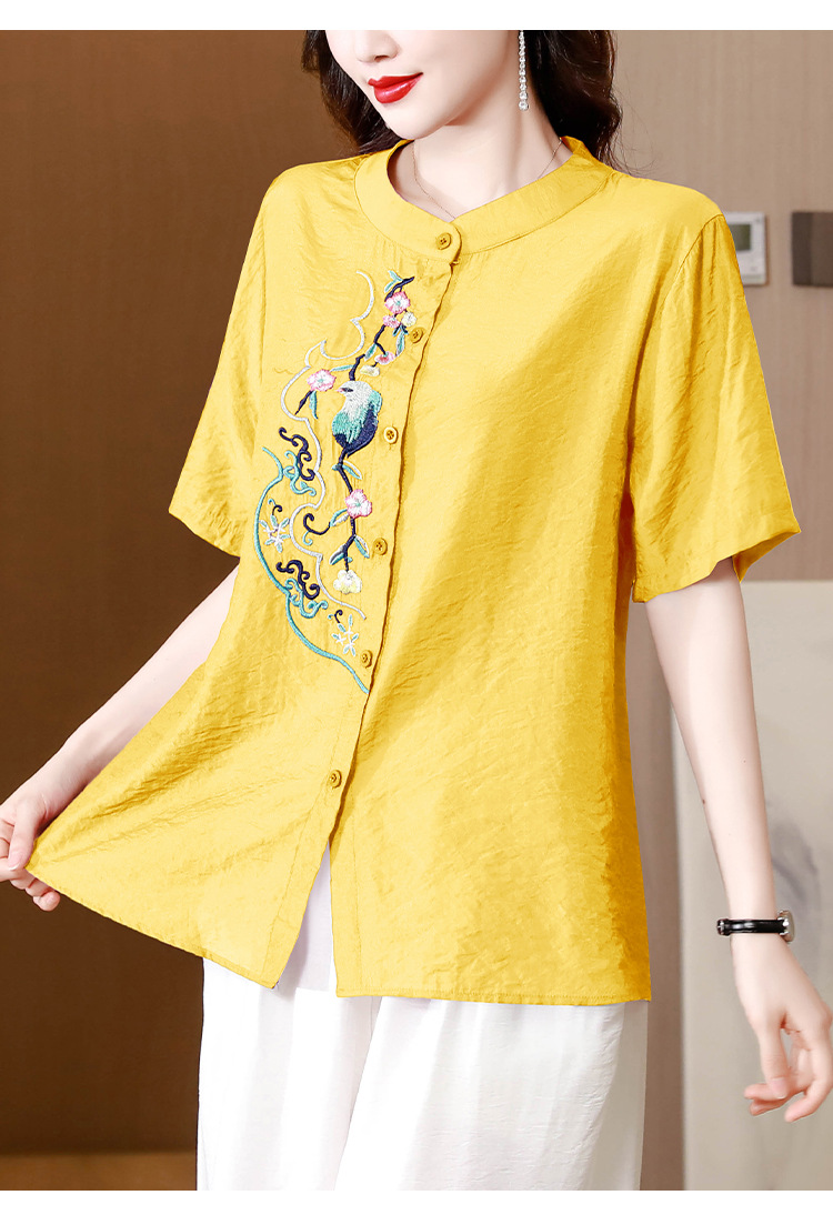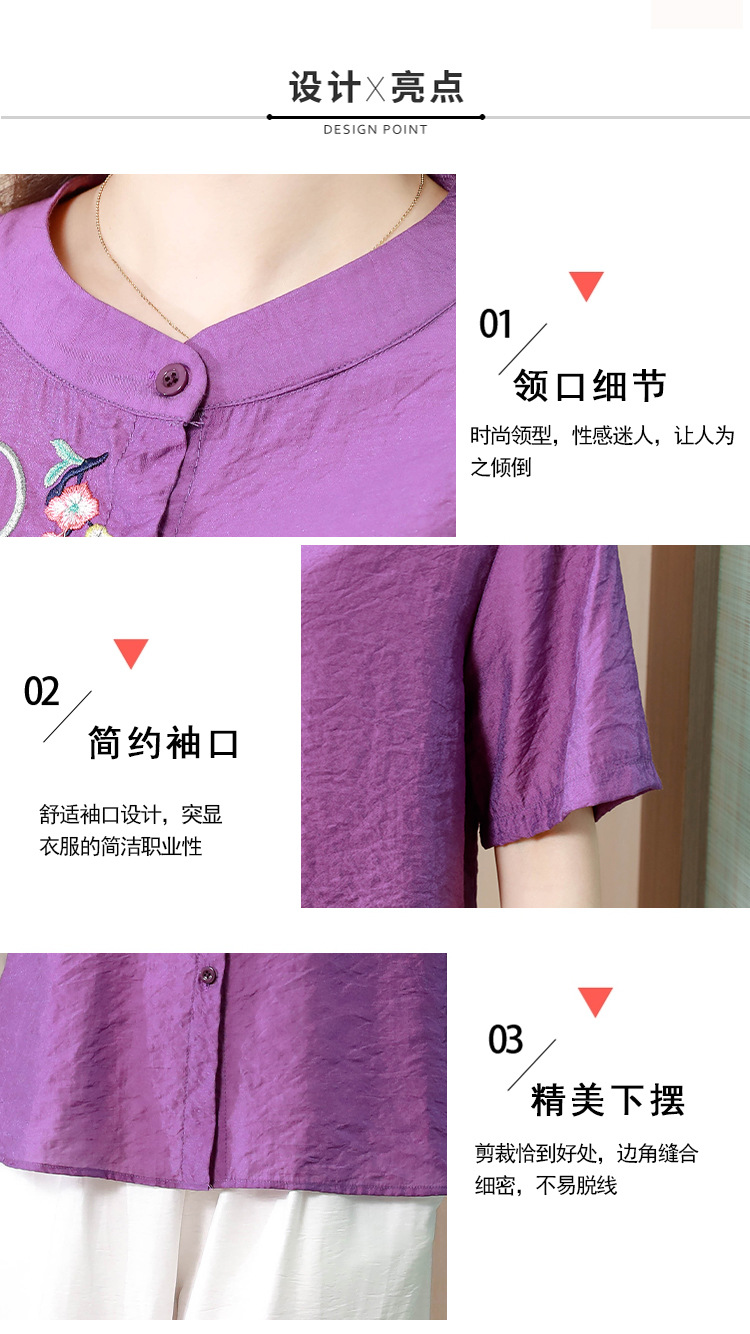 DD-新款五分袖棉麻刺绣宽松大码唐装衬衫衬衣
