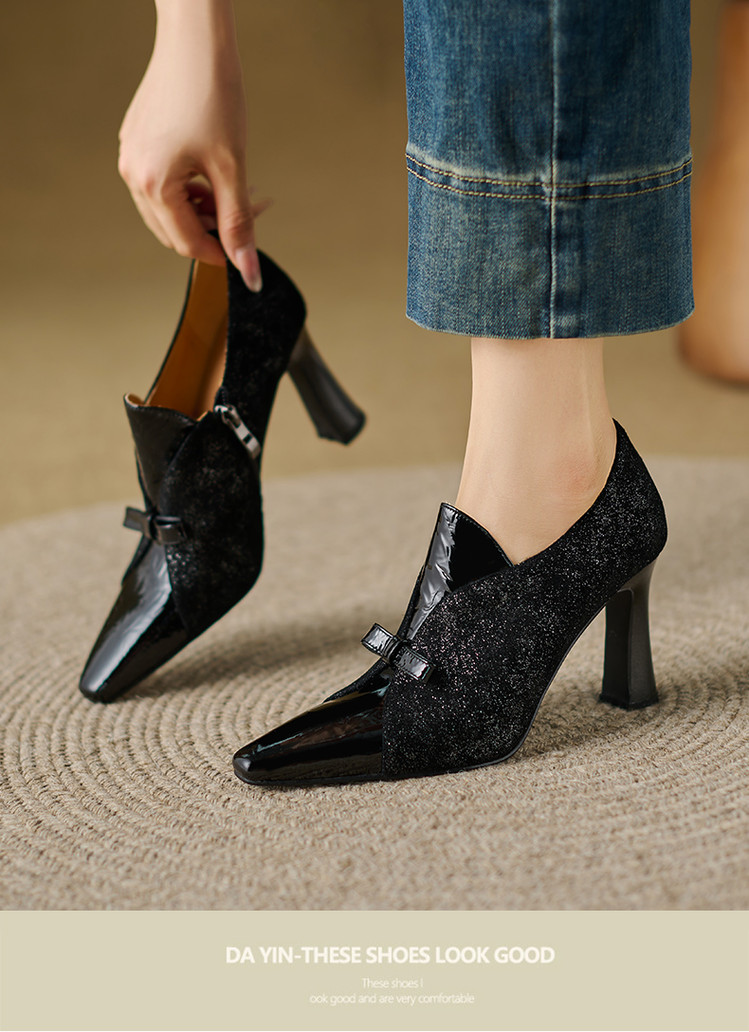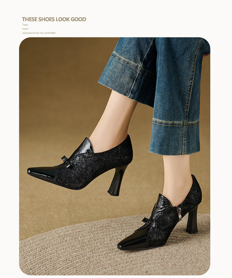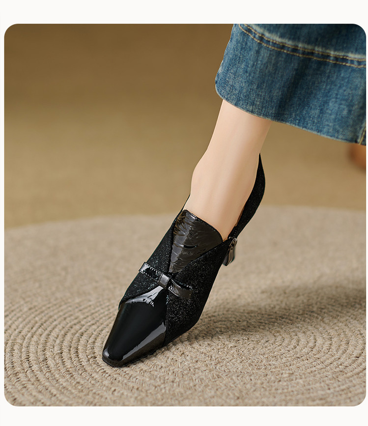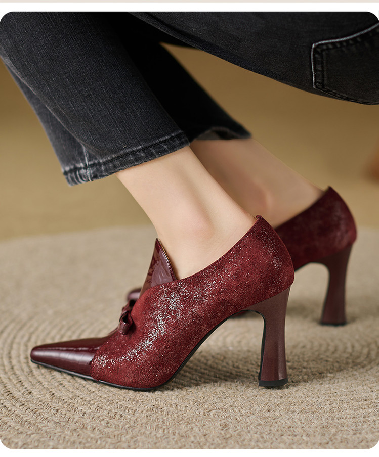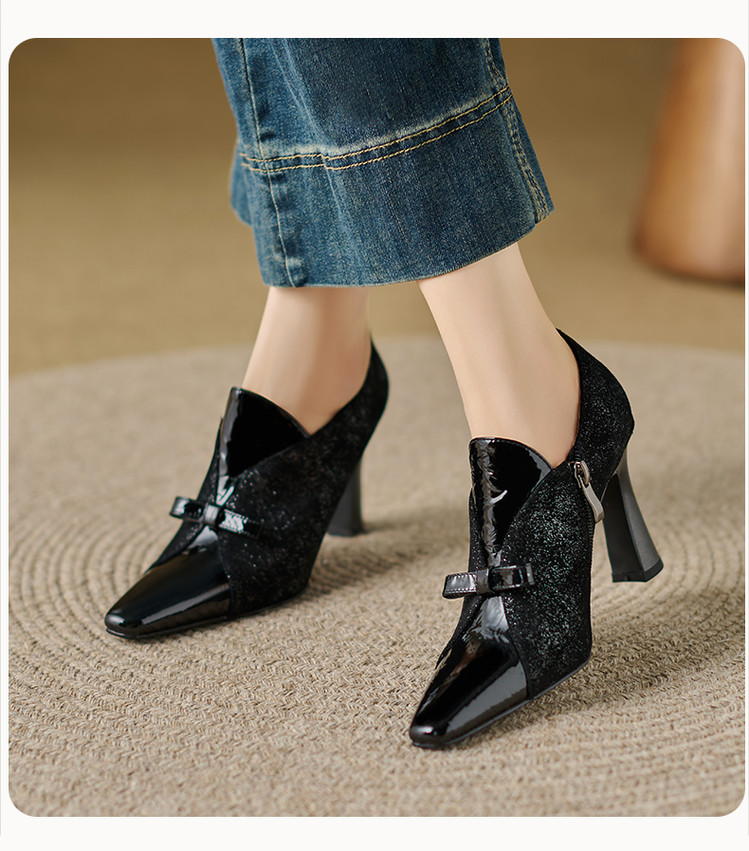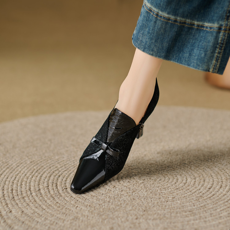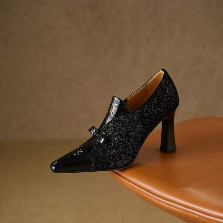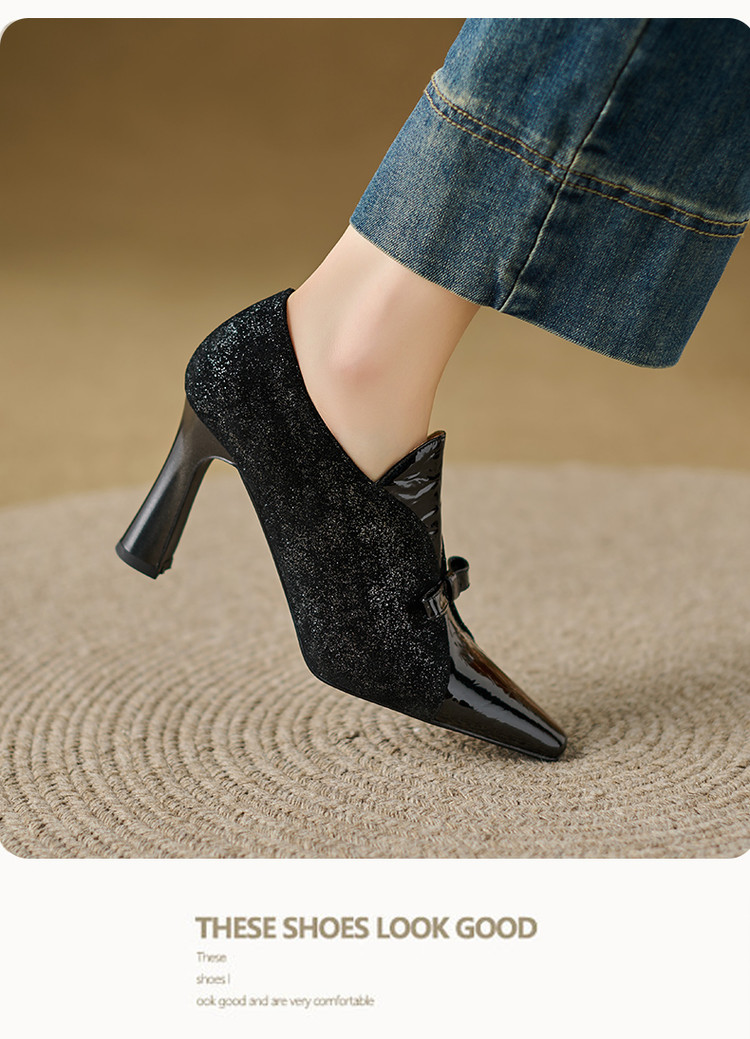 【鞋面材质】羊皮(羊反)+漆皮【鞋垫材质】猪皮【内里材质】羊皮【鞋底材质】牛筋底【跟 高】8.5cm【颜 色】黑色 酒红色【尺 码】34 35 36 37 38 39