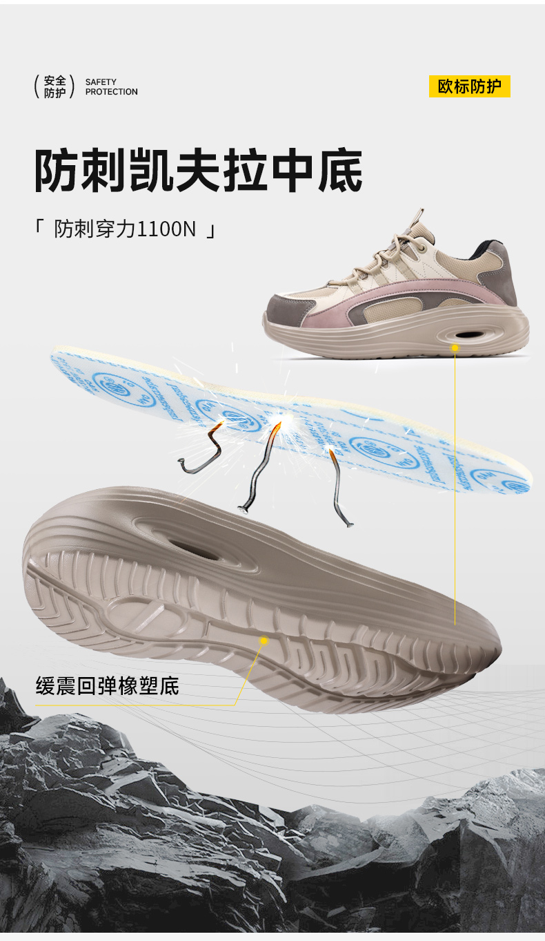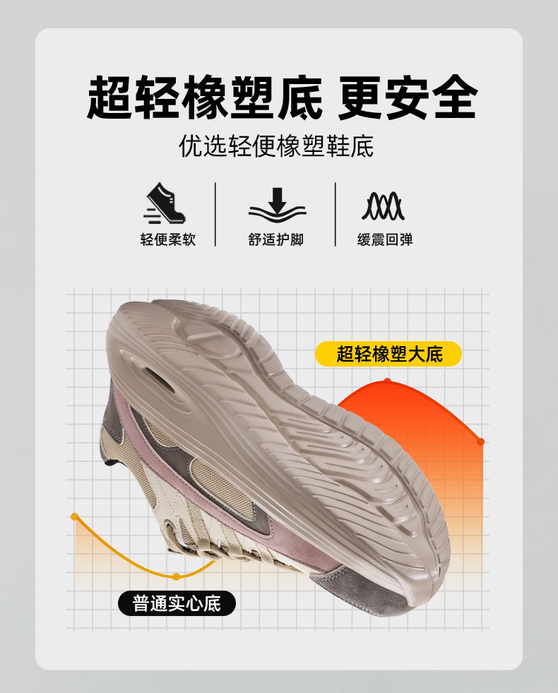 新品女士防护鞋防砸防刺安全鞋钢包头劳保鞋工作鞋橡塑底轻便款