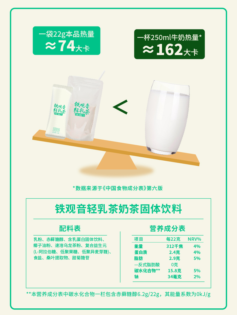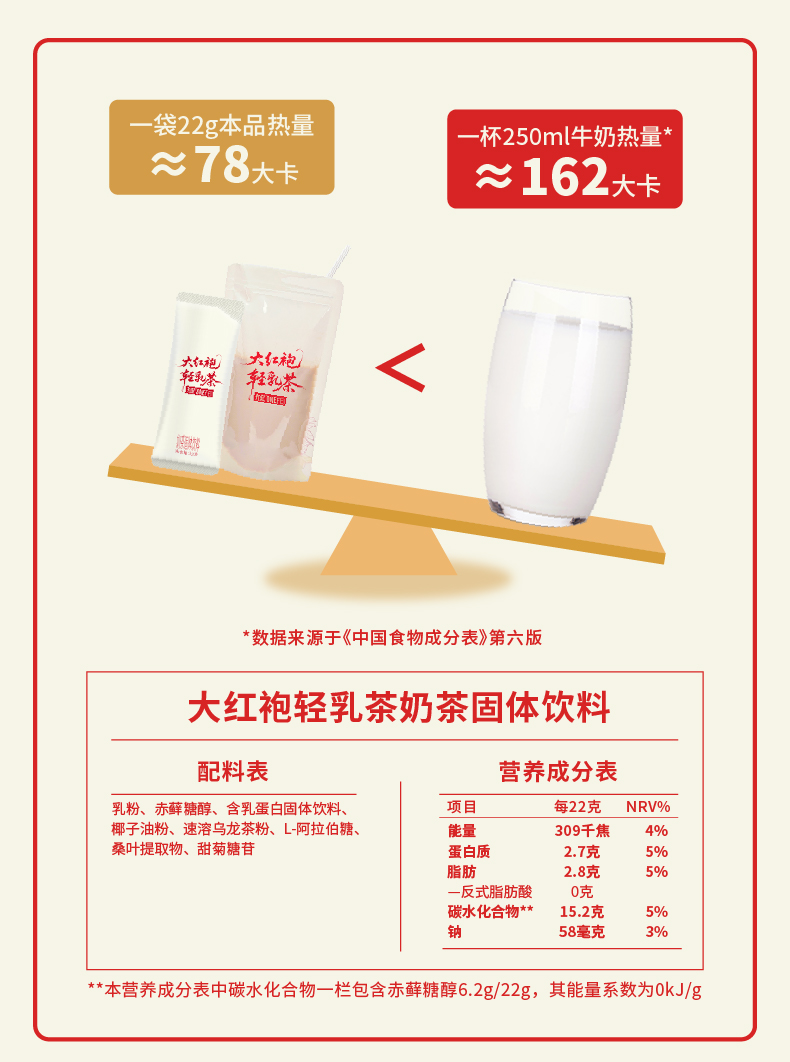 丸妃风味轻乳茶 大红袍/铁观音多口味 22g/袋 牛乳茶 蔗糖 0反式脂肪酸 新西兰进口乳源