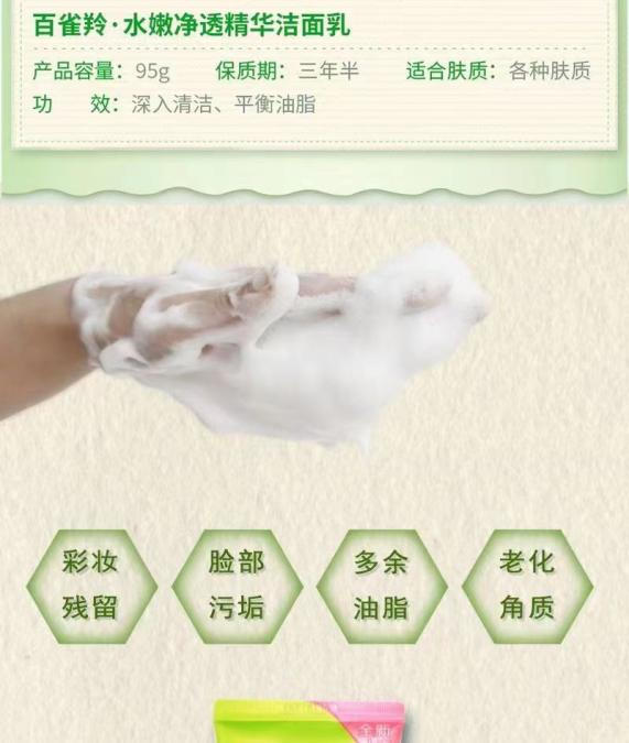 百雀羚水嫩净透精华洁面乳95g(买一赠一)