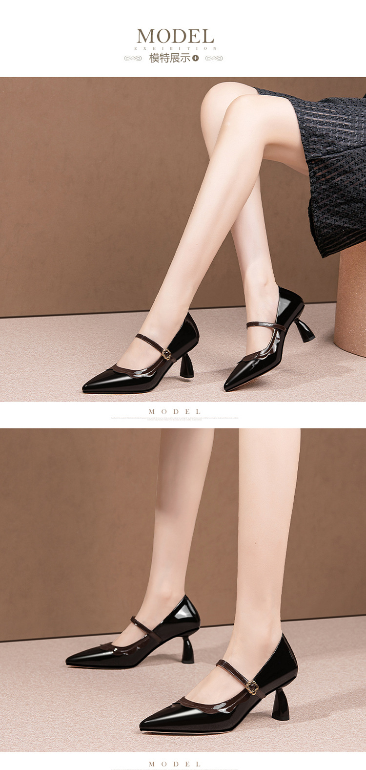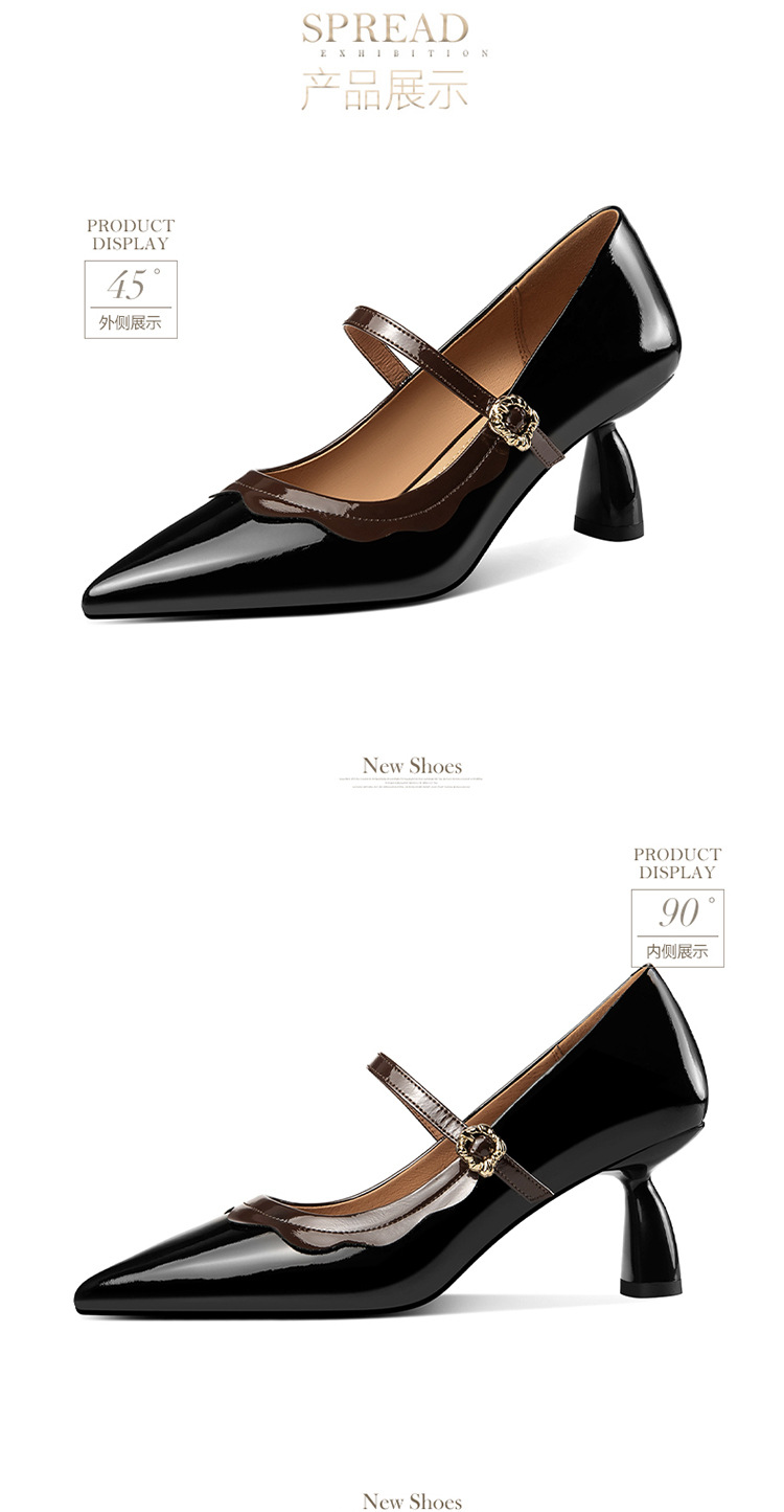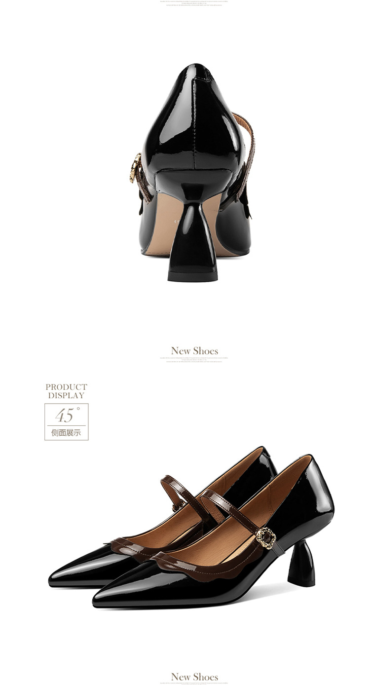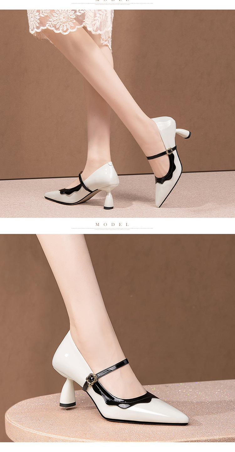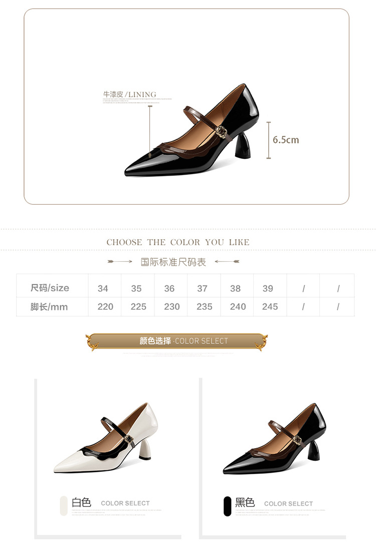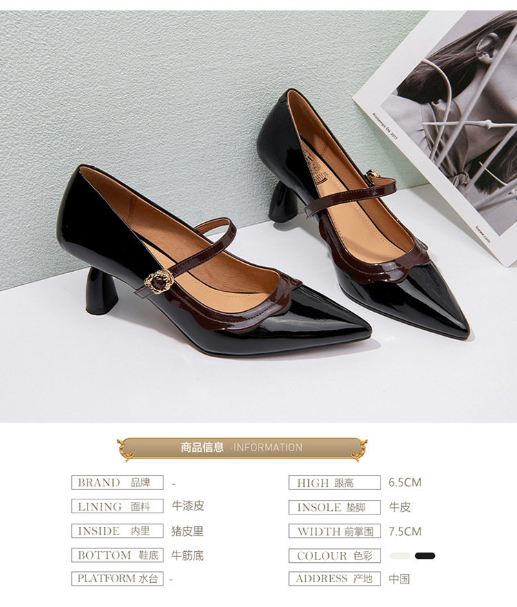 法式玛丽珍女鞋,高跟细跟配裙子皮鞋拼色单鞋HY-H3181