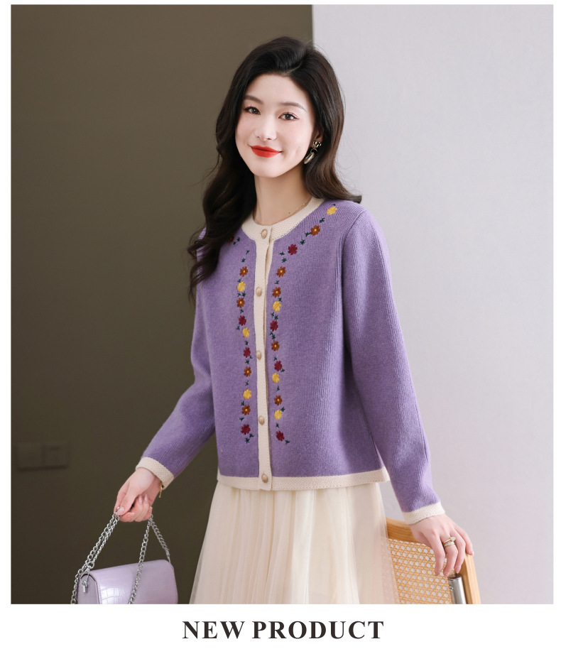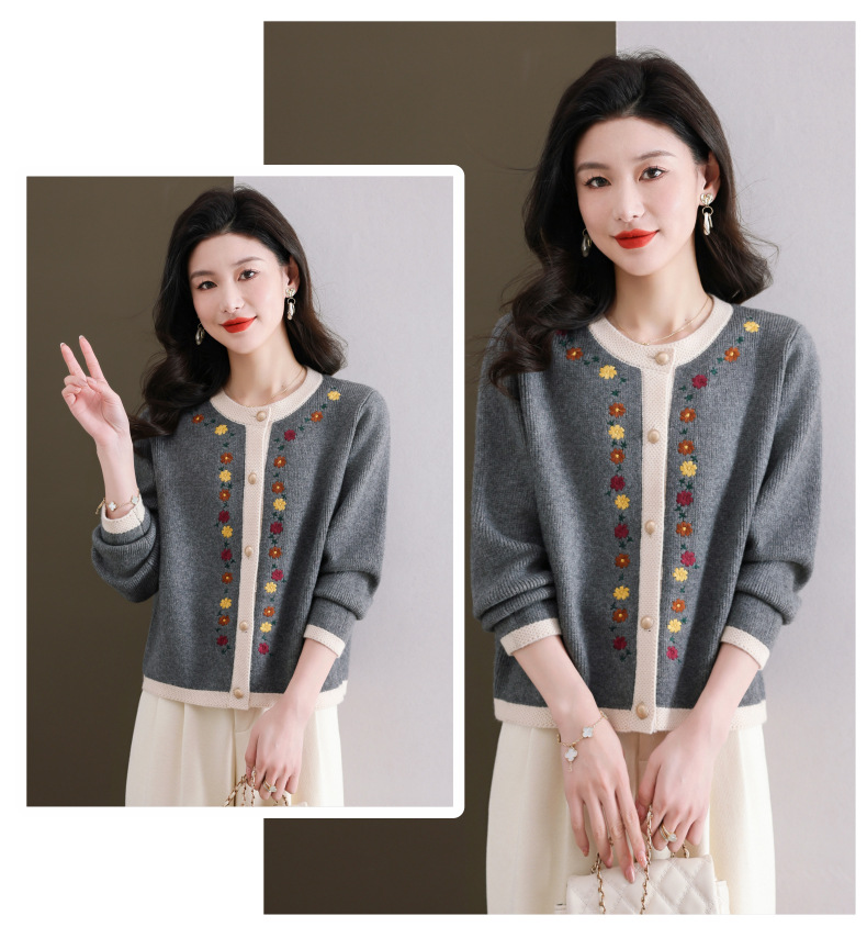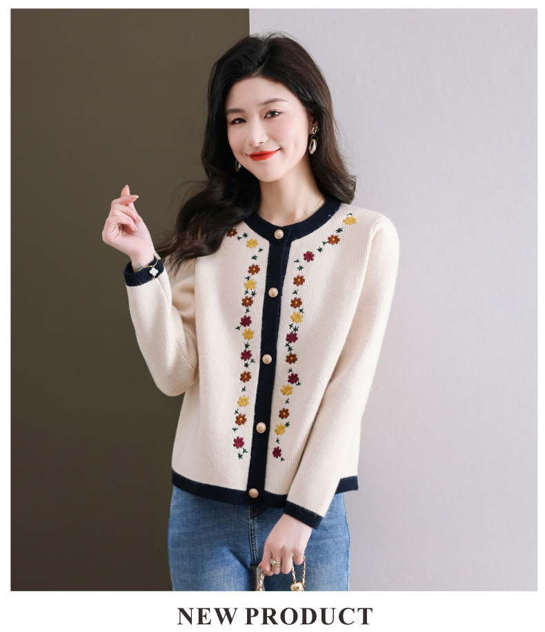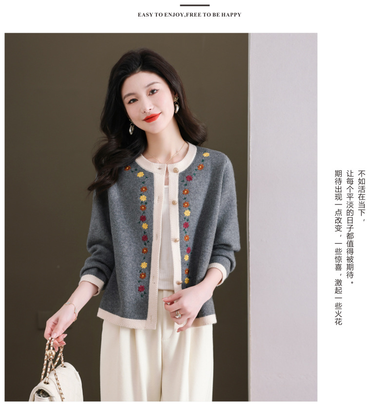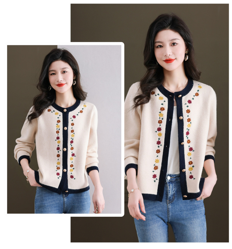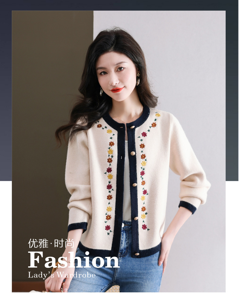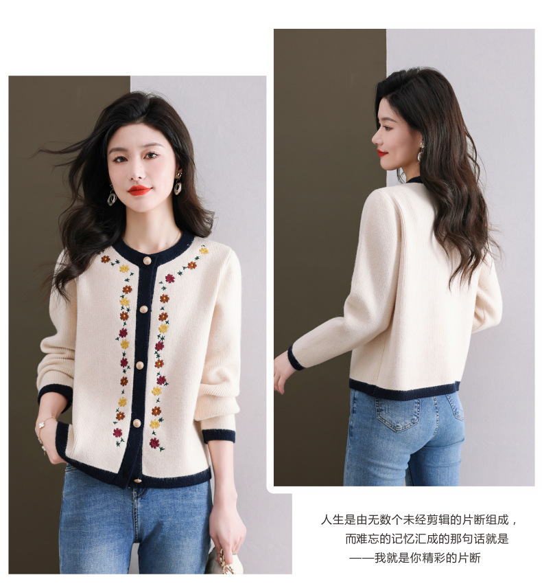 国风绣花毛衣外套,女春秋短款针织开衫春款女装新款洋气外搭CC-5-5866