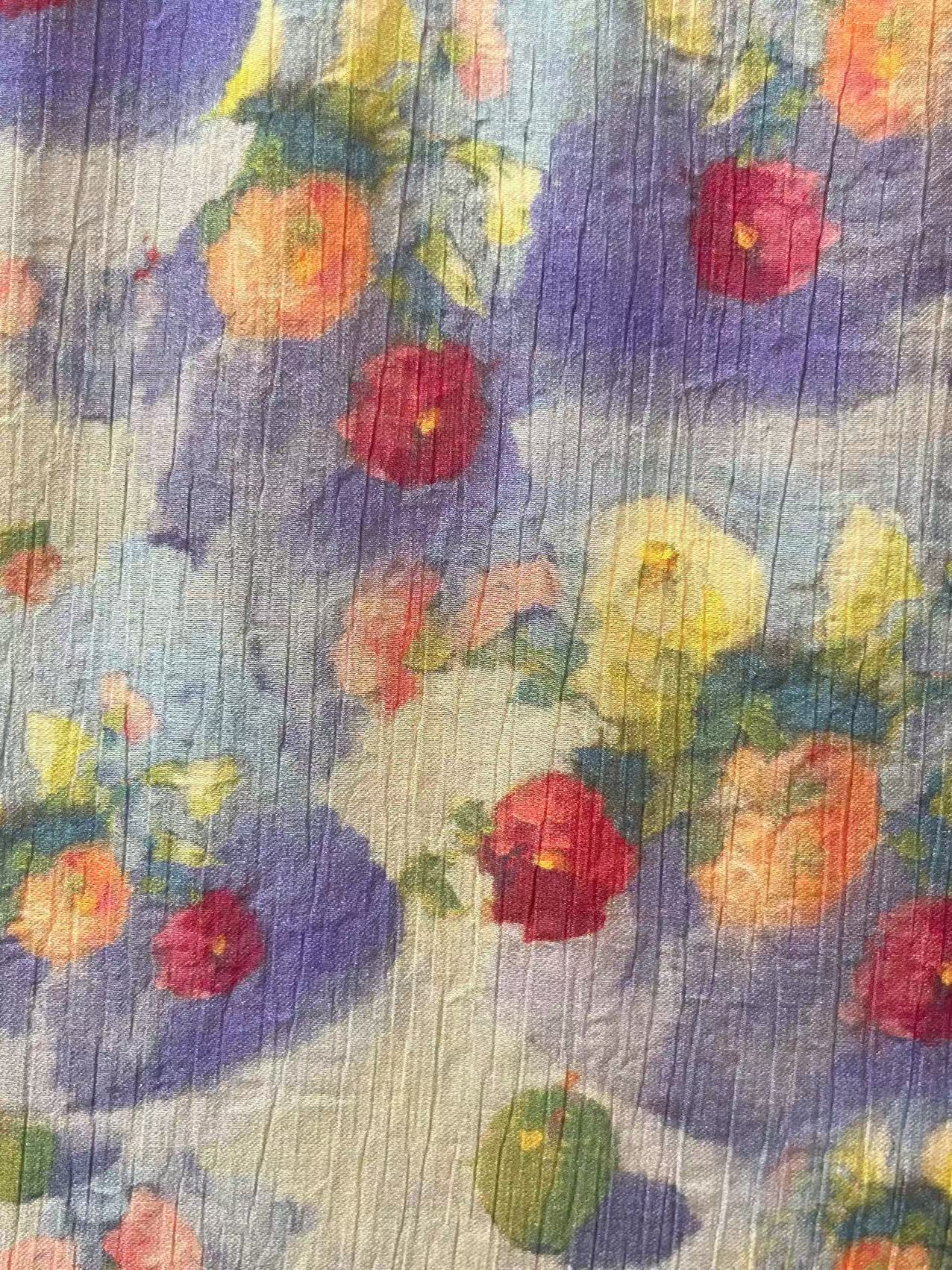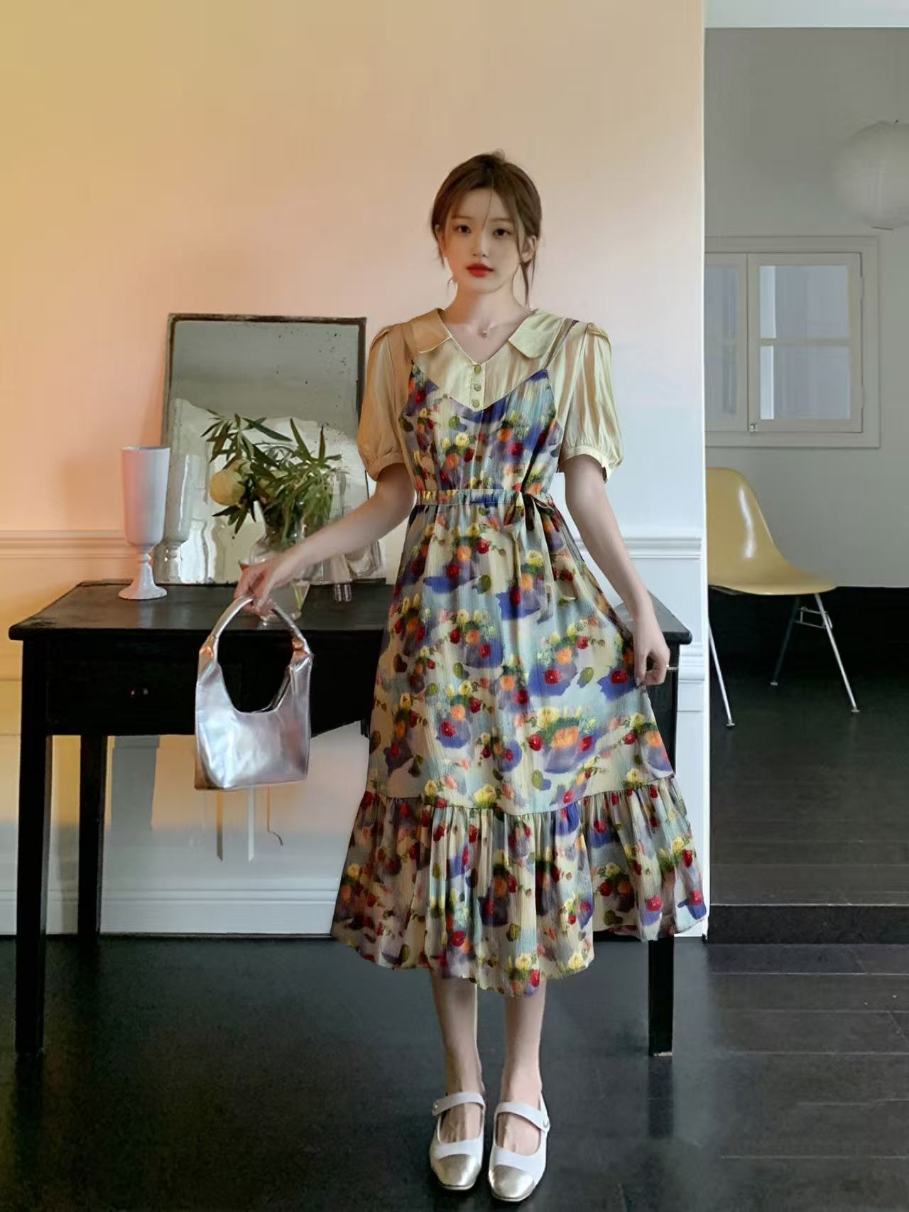 七夕福利-NO退~{ 连衣裙系列 }5029天丝面料油画风假两件压皱连衣裙-喜出