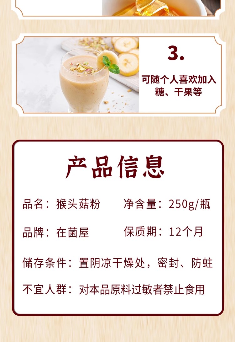 在菌屋 东北猴头菇粉250g 零添加纯猴菇粉 天然本味更养胃